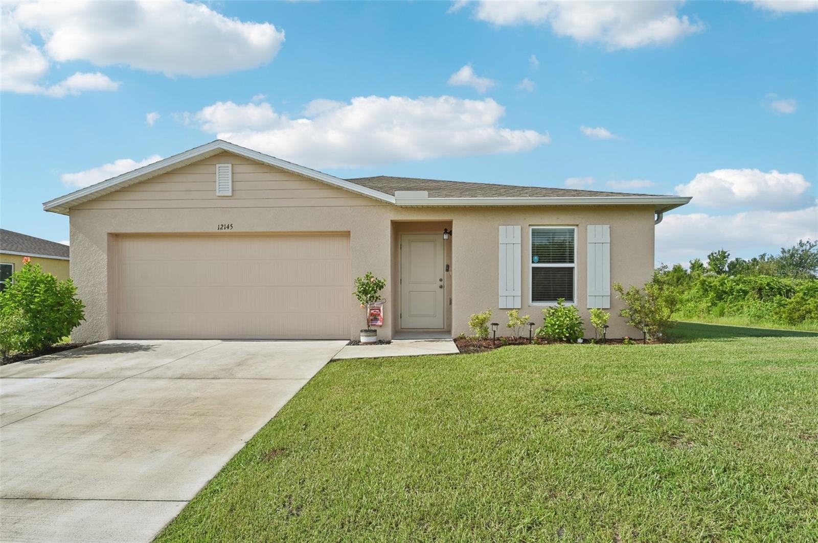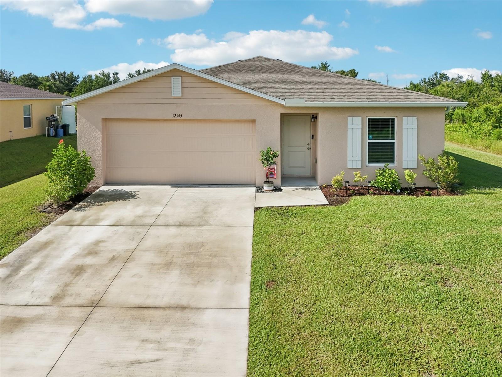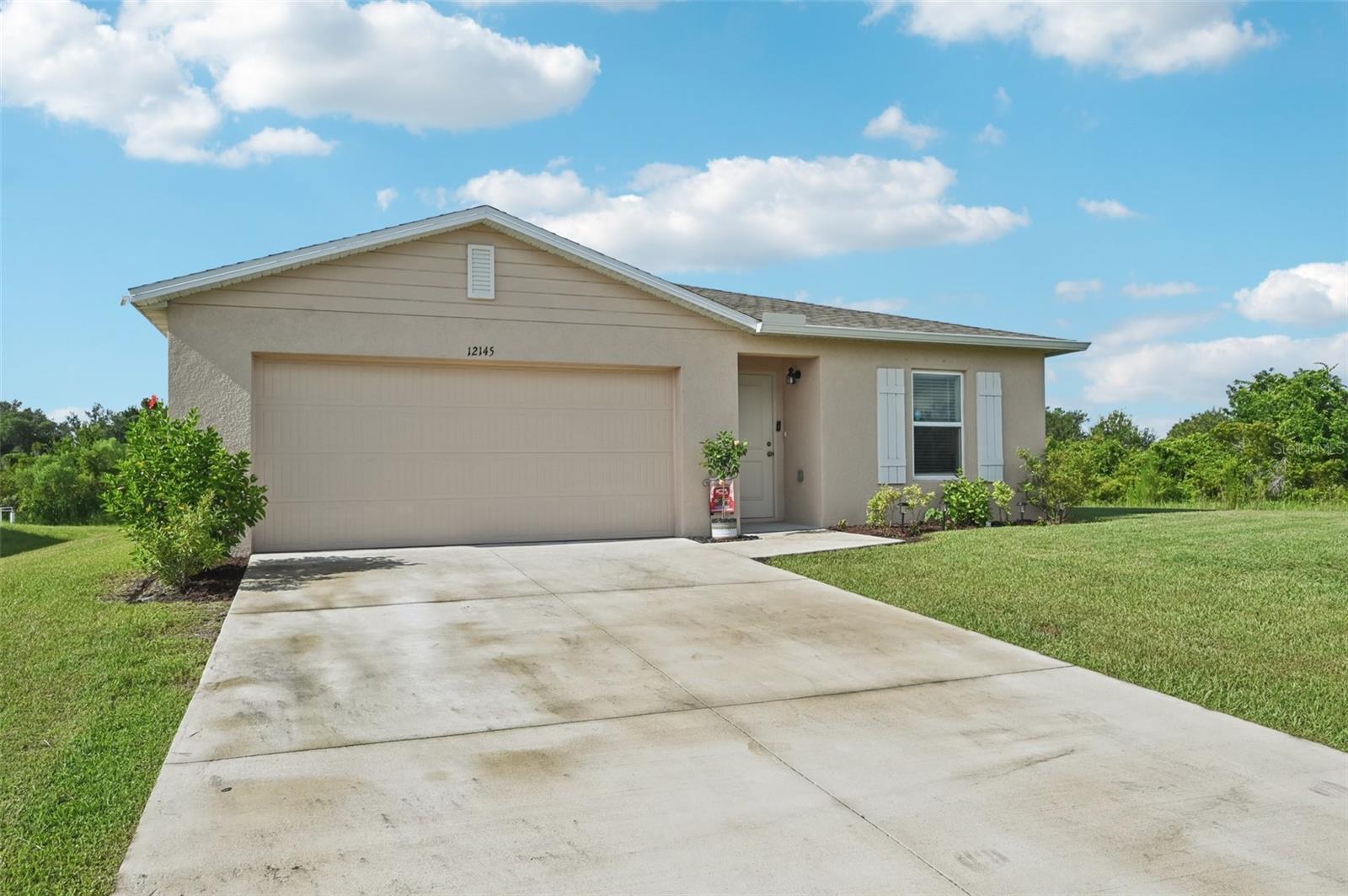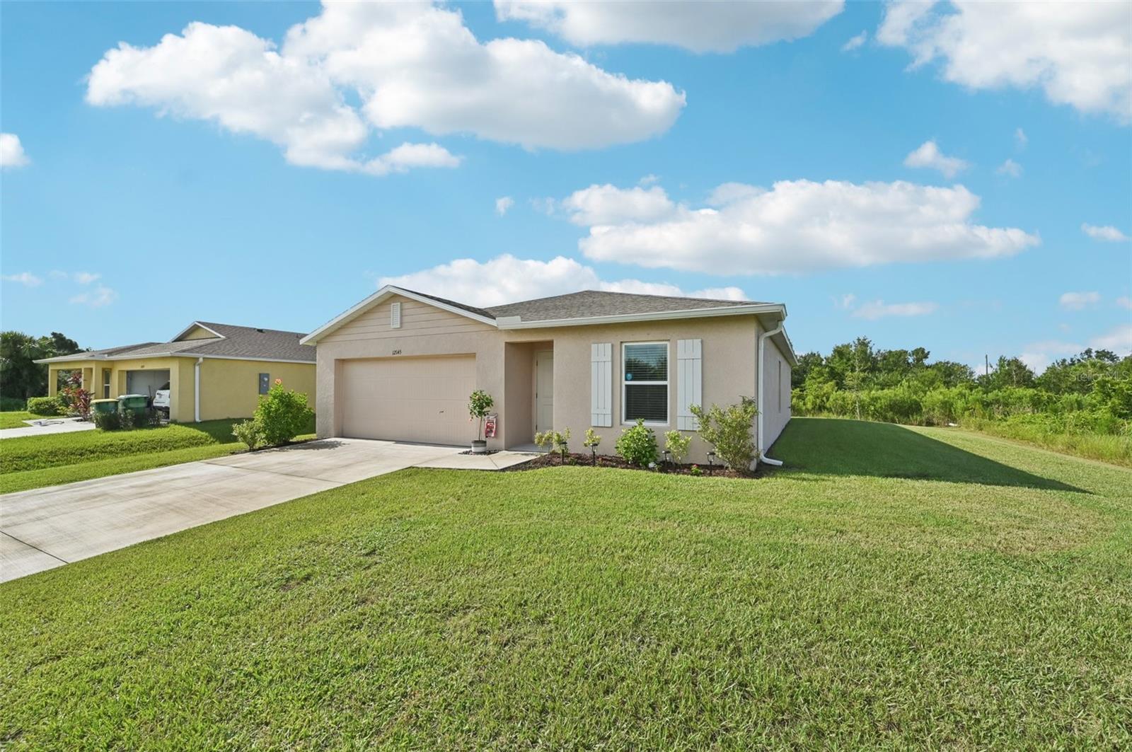 Better than new! This 2023 built 3 BR & Den, 2 BA, 2-car garage home offers privacy and a contemporary open layout. Step into this beautiful home and you will be greeted by lots of natural light and a layout that is perfect for relaxing and entertaining. Your kitchen features sleek stainless steel appliances, white cabinetry, granite countertops, a closet pantry and an inviting breakfast bar that separates the kitchen from the spacious Great Room. The Primary Bedroom Suite provides a private retreat, complete with a walk-in closet and a stylish en-suite bathroom with double vanity and granite countertop. Two guest bedrooms, a guest bath with shower over tub and a generously sized Den/Office complement the split layout, which is perfect when family or friends come to visit. Additional highlights include a laundry closet with side-by-side washer & dryer and an attached two-car garage. Step through the sliding glass doors to your backyard, ready for your touches, like your own oasis with a pool or extended lanai. Plenty of room to get creative! There is a water softening system to optimize your well water (no water/sewer bills here!). You will love the location, which is in close proximity to schools, parks, restaurants, shopping and the gorgeous Gulf beaches. No HOA! No CDD! Schedule your private showing today!