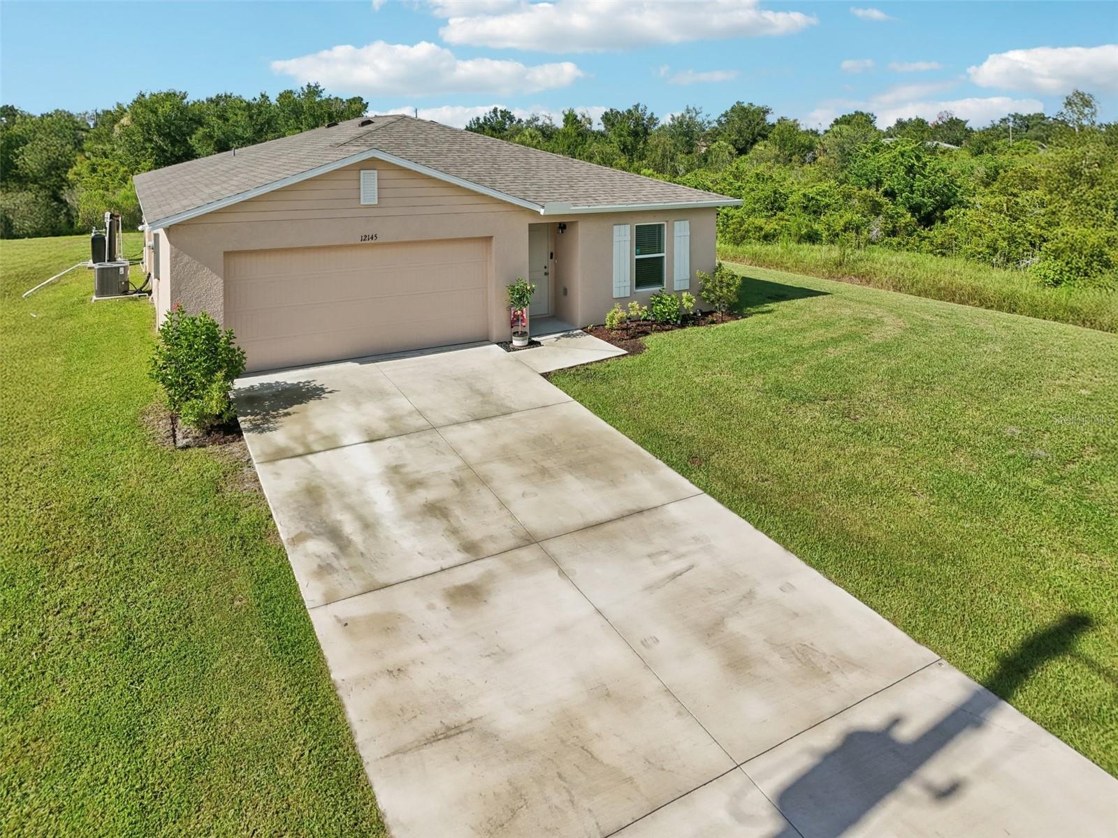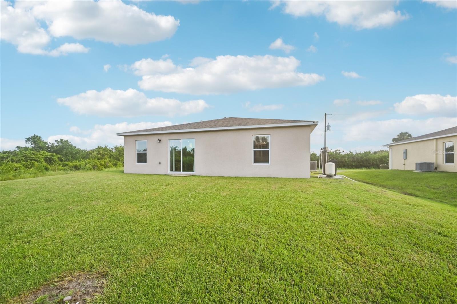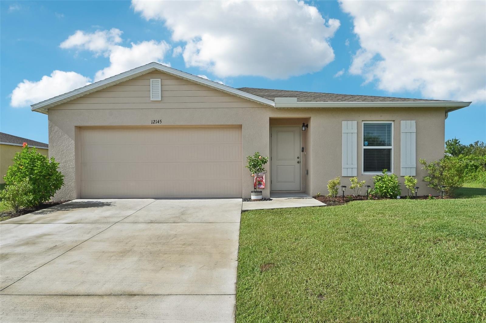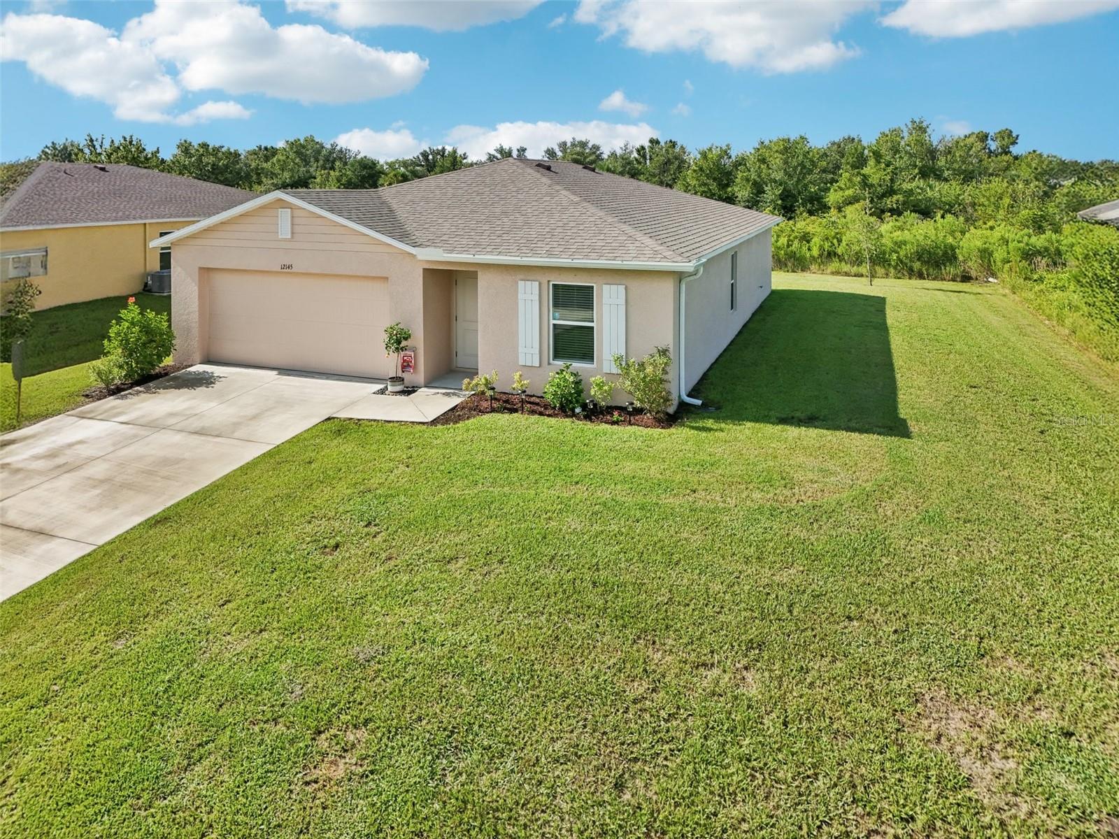 Better than new! This 2023 built 3 BR & Den, 2 BA, 2-car garage home offers privacy and a contemporary open layout. Step into this beautiful home and you will be greeted by lots of natural light and a layout that is perfect for relaxing and entertaining. Your kitchen features sleek stainless steel appliances, white cabinetry, granite countertops, a closet pantry and an inviting breakfast bar that separates the kitchen from the spacious Great Room. The Primary Bedroom Suite provides a private retreat, complete with a walk-in closet and a stylish en-suite bathroom with double vanity and granite countertop. Two guest bedrooms, a guest bath with shower over tub and a generously sized Den/Office complement the split layout, which is perfect when family or friends come to visit. Additional highlights include a laundry closet with side-by-side washer & dryer and an attached two-car garage. Step through the sliding glass doors to your backyard, ready for your touches, like your own oasis with a pool or extended lanai. Plenty of room to get creative! There is a water softening system to optimize your well water (no water/sewer bills here!). You will love the location, which is in close proximity to schools, parks, restaurants, shopping and the gorgeous Gulf beaches. No HOA! No CDD! Schedule your private showing today!
