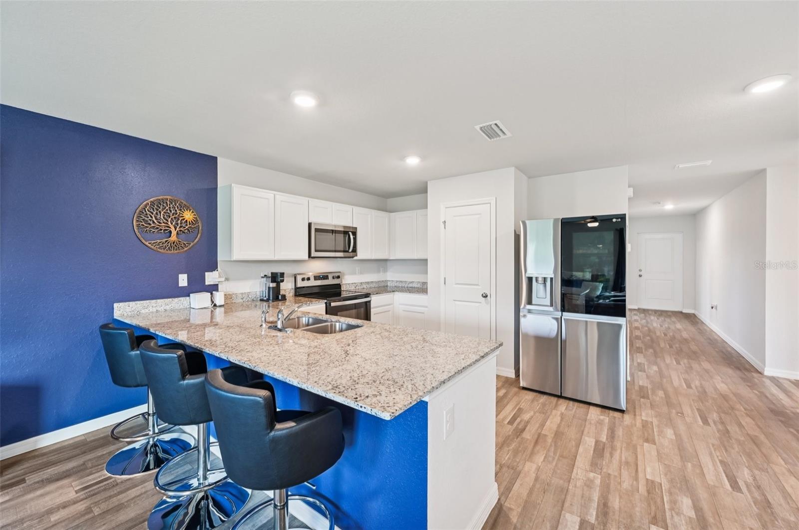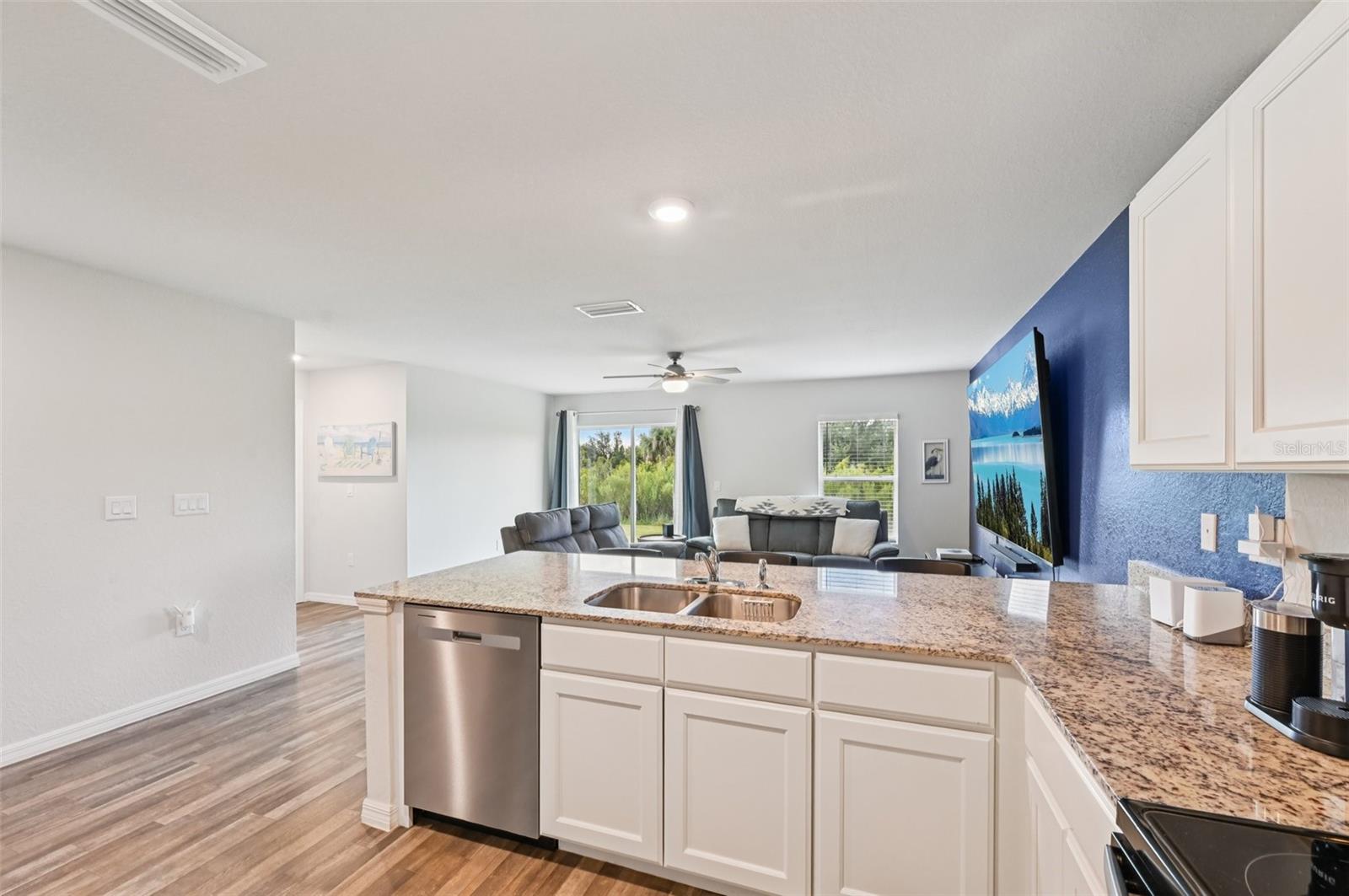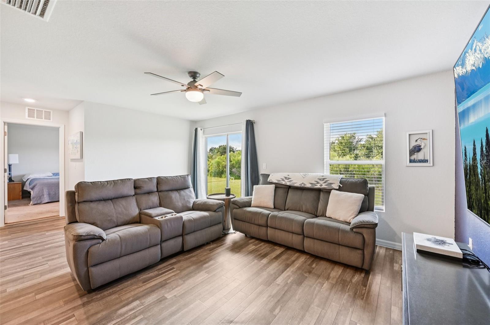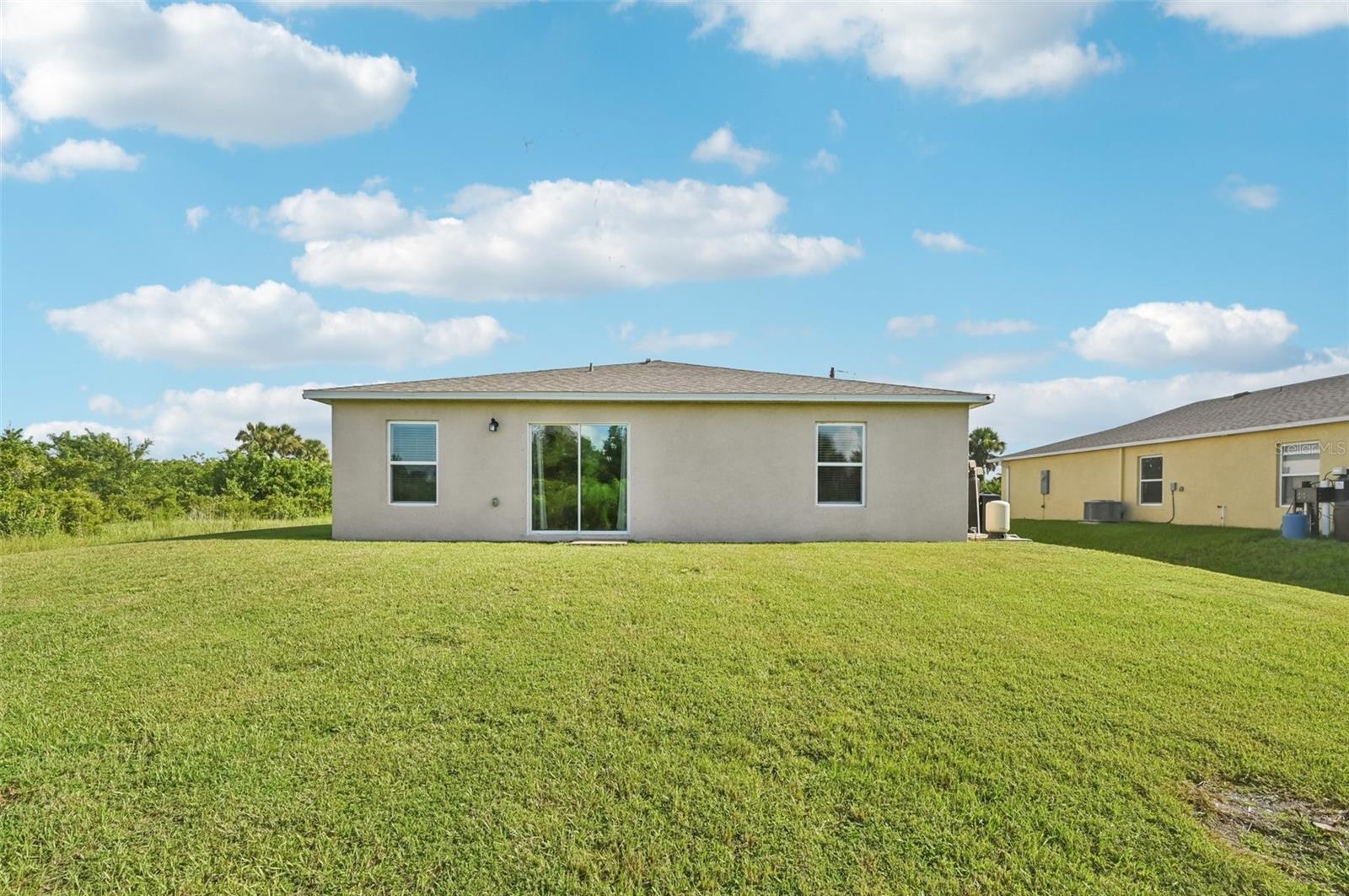 Better than new! This 2023 built 3 BR & Den, 2 BA, 2-car garage home offers privacy and a contemporary open layout. Step into this beautiful home and you will be greeted by lots of natural light and a layout that is perfect for relaxing and entertaining. Your kitchen features sleek stainless steel appliances, white cabinetry, granite countertops, a closet pantry and an inviting breakfast bar that separates the kitchen from the spacious Great Room. The Primary Bedroom Suite provides a private retreat, complete with a walk-in closet and a stylish en-suite bathroom with double vanity and granite countertop. Two guest bedrooms, a guest bath with shower over tub and a generously sized Den/Office complement the split layout, which is perfect when family or friends come to visit. Additional highlights include a laundry closet with side-by-side washer & dryer and an attached two-car garage. Step through the sliding glass doors to your backyard, ready for your touches, like your own oasis with a pool or extended lanai. Plenty of room to get creative! There is a water softening system to optimize your well water (no water/sewer bills here!). You will love the location, which is in close proximity to schools, parks, restaurants, shopping and the gorgeous Gulf beaches. No HOA! No CDD! Schedule your private showing today!