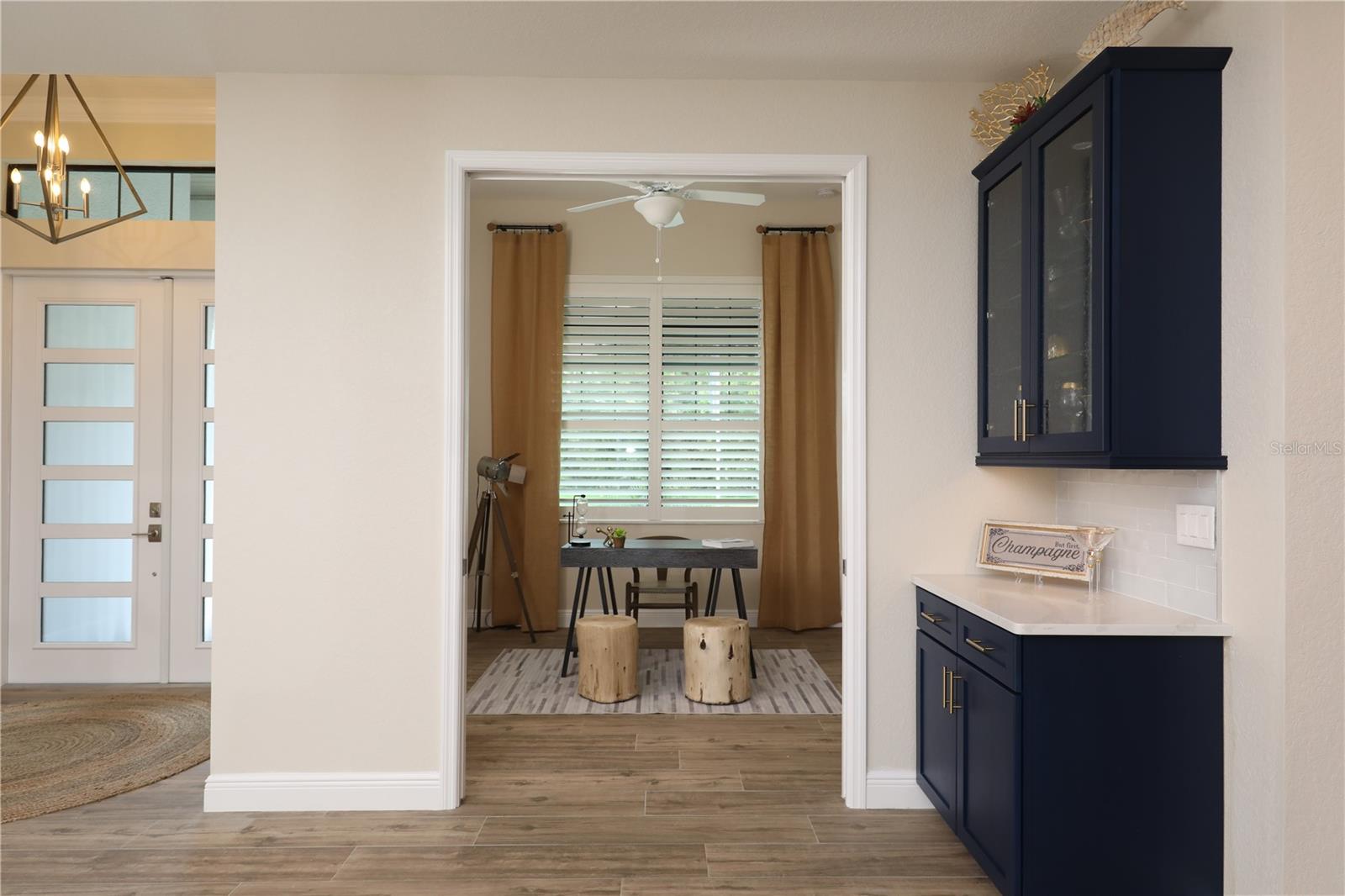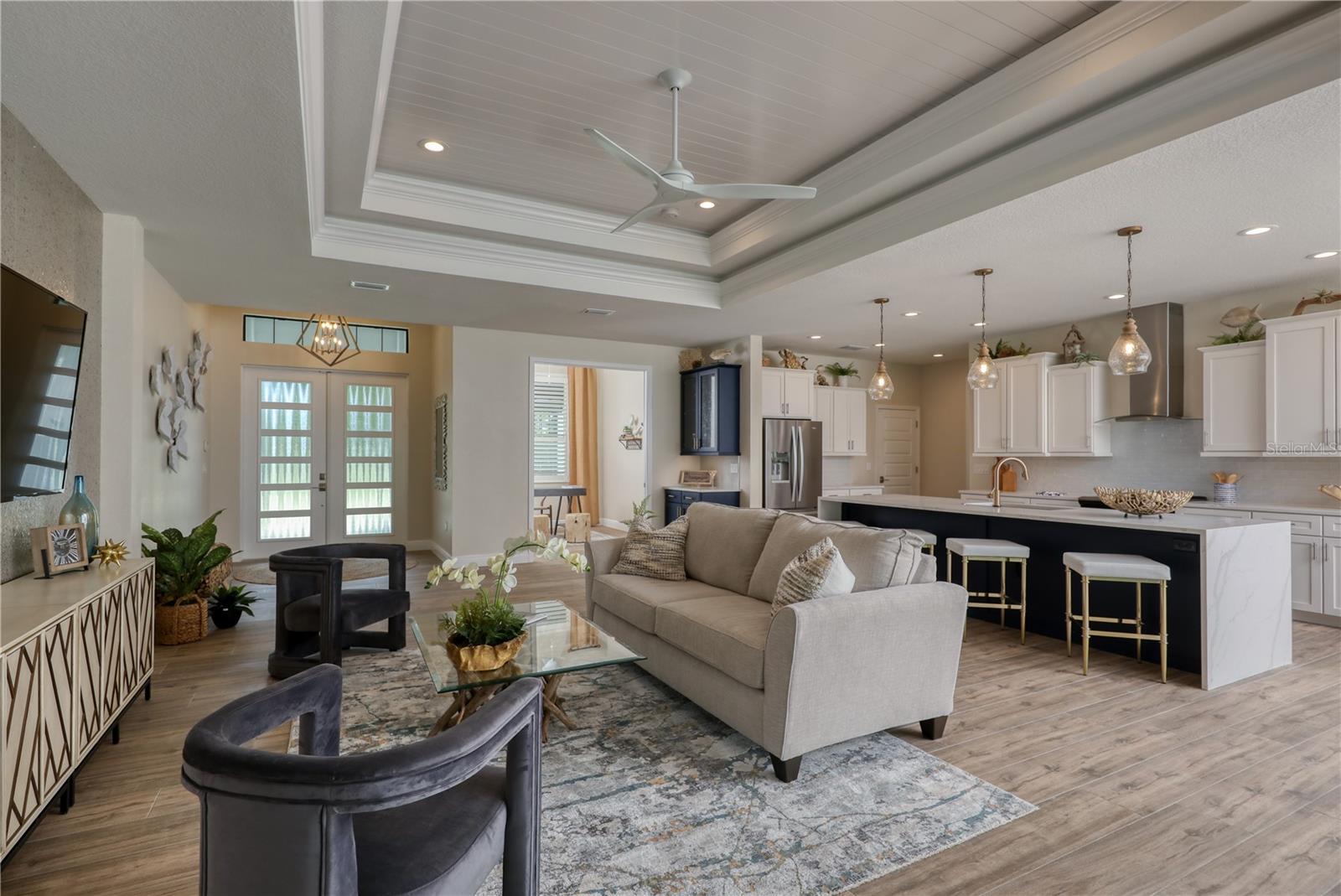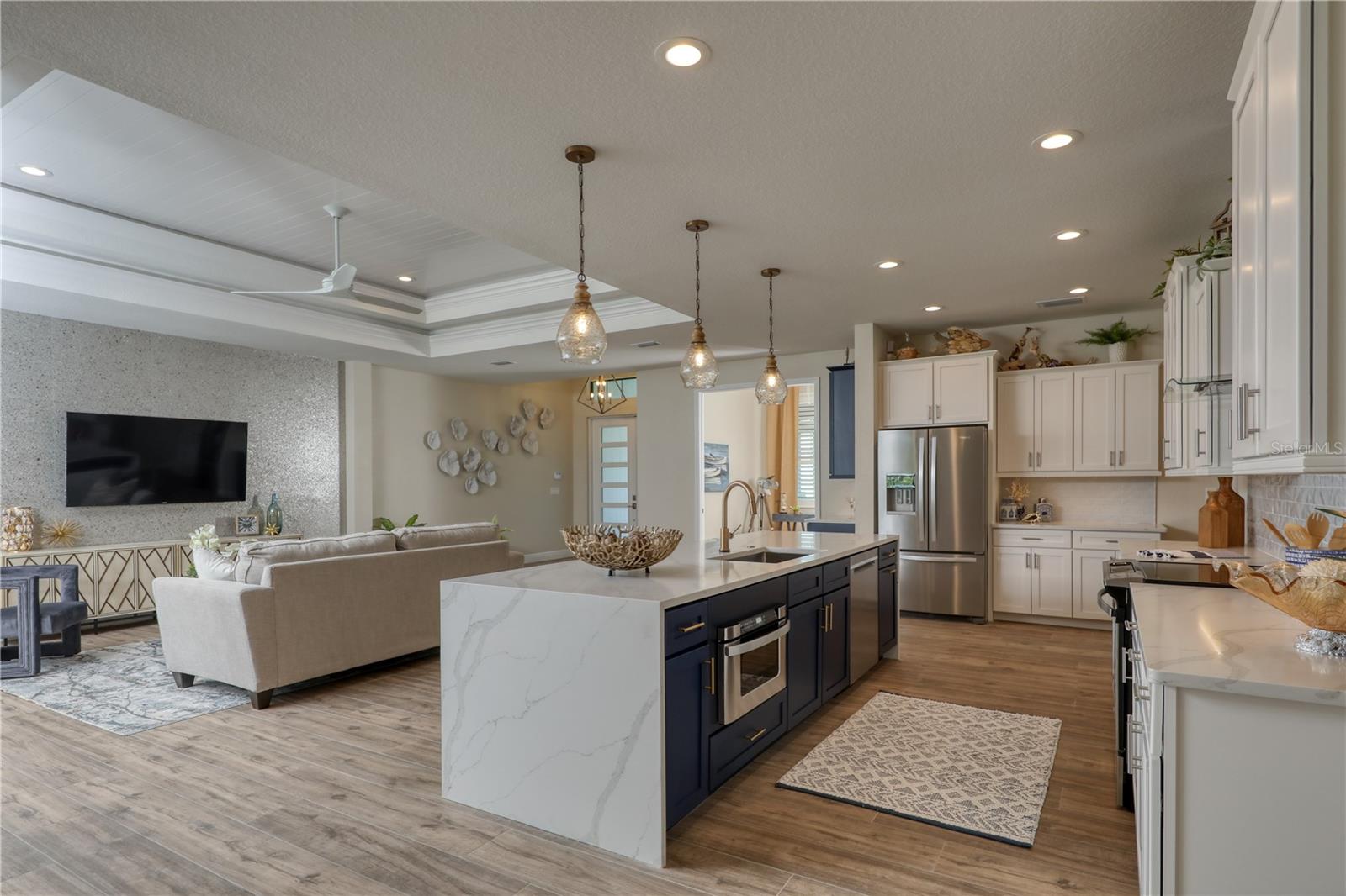 Welcome to 14194 San Domingo Blvd, a beautifully appointed 3-bedroom, 3-bath home with a spacious office, nestled in the desirable waterfront community of South Gulf Cove. This furnished builder’s model sits on a double lot with a leveled parking lot perfect for a future garage, offering ample space, luxury, and convenience. Step inside to soaring high ceilings with trays in both the living room and primary suite, adding a touch of elegance and openness throughout. The heart of the home is a gourmet kitchen featuring a large island, quartz countertops, upgraded stainless steel appliances, a sleek range hood, built-in microwave, built in garbage cans, under cabinet lighting, soft close cabinets, large deep sink, coffee bar, bar cabinet, and a pantry—perfect for entertaining or everyday living. The primary suite is a private retreat! Enjoy separate vanities, a private toilet, HUGE HIS AND HERS walk in closets, and fully tiled shower. The guest rooms are both large bedrooms with ceiling fans and ample closet space. The entire home is fully tiled with gorgeous wood plank tile! The expansive open floor plan flows effortlessly into the outdoor oasis, where you'll find a screened-in pool, outdoor kitchen, and plenty of room for lounging or hosting guests. The living room features a stunning zero corner slider leading outside. Additional features include: • 3 spacious bedrooms + large office • 3 full baths with upscale finishes • Hurricane Impact Windows • Tray ceilings in primary bedroom and living room • Concrete Block Construction • Tile Roof • Wood Plank Tile Throughout the home • Stunning Finishes • 3 car Garage converted to office space • Outdoor entertainment area with pool and kitchen • Professionally Furnished and move-in ready • Ample parking with a dedicated parking lot • Located in South Gulf Cove with access to boating, parks, and more Don’t miss this rare opportunity to own a showcase home that truly has it all—luxury, space, style, and location. Schedule your private showing today! *some furnishings used for staging purposes