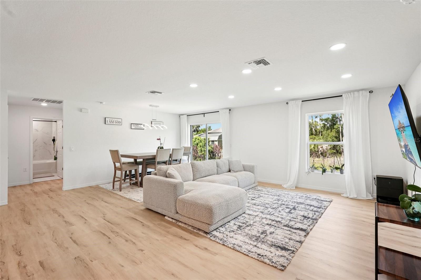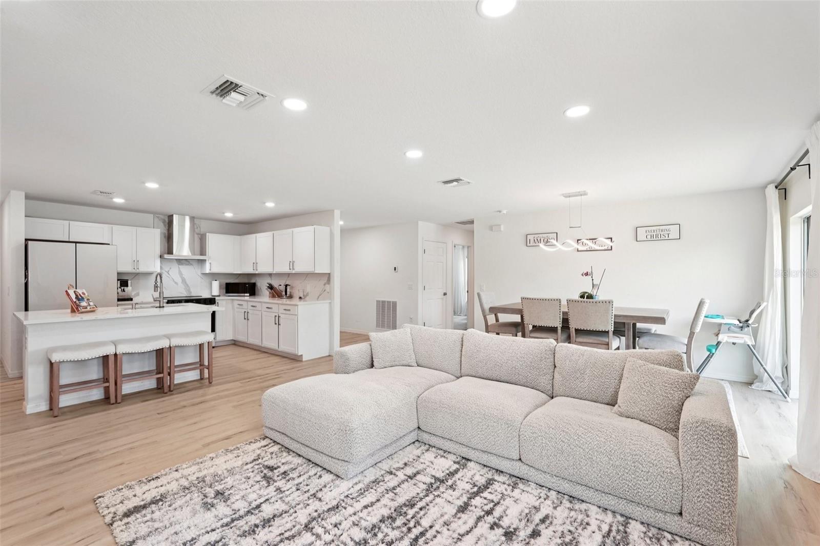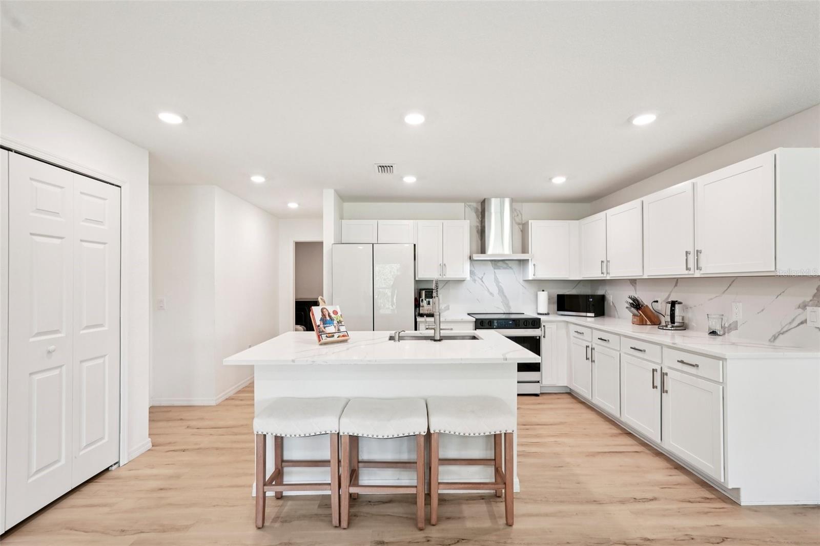 Step into one of the largest models built by the original builder. This spacious home has been thoughtfully upgraded with over $40,000 in enhancements since purchase. From the moment you enter, you’ll notice luxury vinyl plank flooring in the main living area, adding warmth and durability to the space. The kitchen is elevated with quartz countertops throughout the home, a stylish backsplash, and a premium range hood and vent. Appliances including a bespoke fridge, range, and dishwasher blend seamlessly for a high-end, cohesive look. A tankless water heater adds efficiency and convenience. The home offers custom closets, upgraded light fixtures, and attention to detail throughout, including upgraded cabinet and door hardware. The second bathroom features new tile work, while the spacious primary suite includes a second vanity and large built-in storage cabinet, providing both function and comfort. Even the garage has been improved with a new motor, completing a list of thoughtful upgrades that enhance everyday living. Don’t miss this opportunity to own a turnkey home with generous space, modern finishes, and quality improvements inside and out.