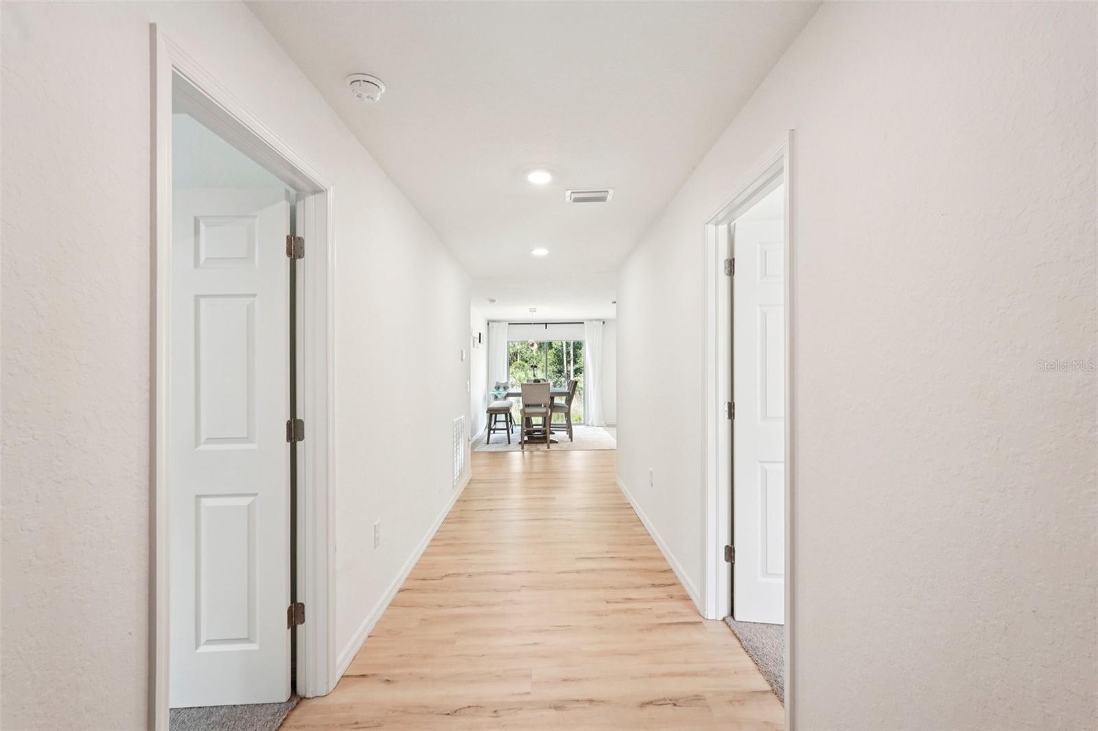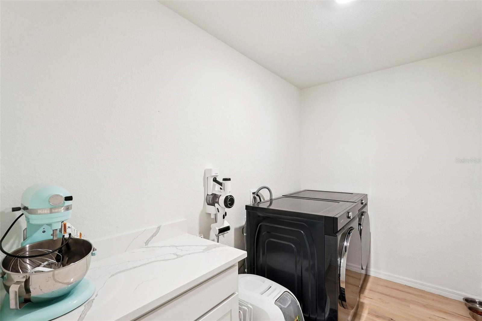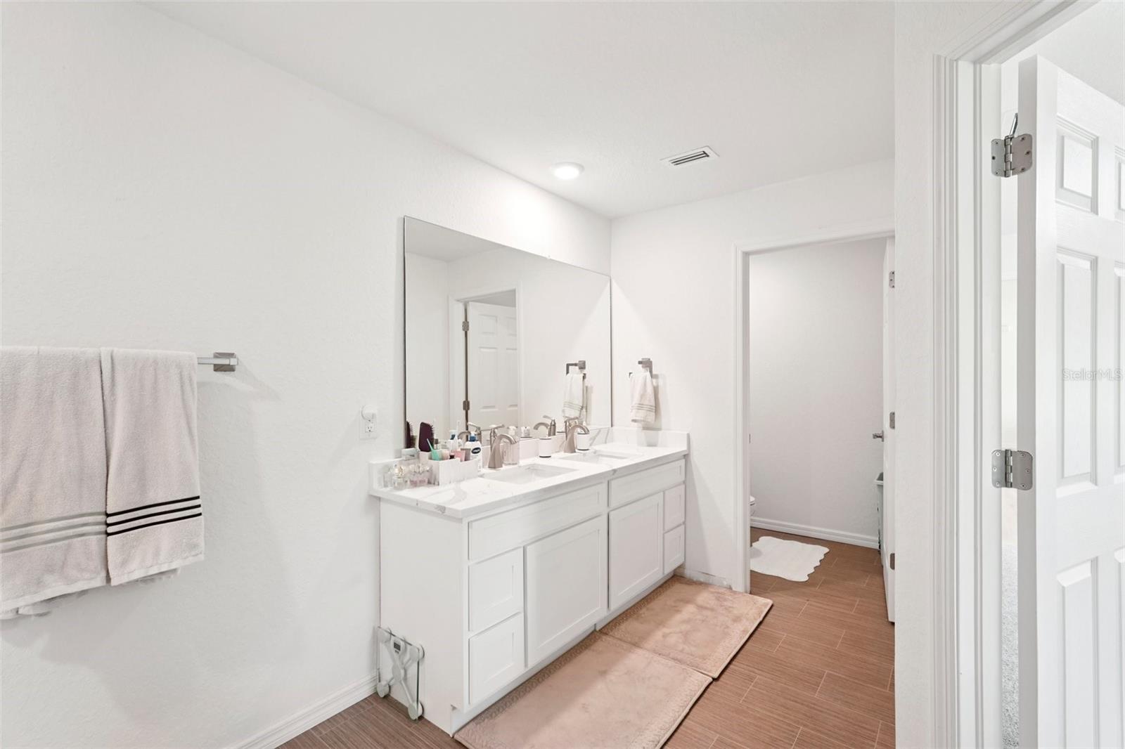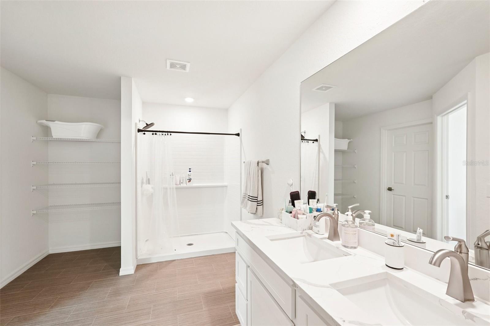 Step into one of the largest models built by the original builder. This spacious home has been thoughtfully upgraded with over $40,000 in enhancements since purchase. From the moment you enter, you’ll notice luxury vinyl plank flooring in the main living area, adding warmth and durability to the space. The kitchen is elevated with quartz countertops throughout the home, a stylish backsplash, and a premium range hood and vent. Appliances including a bespoke fridge, range, and dishwasher blend seamlessly for a high-end, cohesive look. A tankless water heater adds efficiency and convenience. The home offers custom closets, upgraded light fixtures, and attention to detail throughout, including upgraded cabinet and door hardware. The second bathroom features new tile work, while the spacious primary suite includes a second vanity and large built-in storage cabinet, providing both function and comfort. Even the garage has been improved with a new motor, completing a list of thoughtful upgrades that enhance everyday living. Don’t miss this opportunity to own a turnkey home with generous space, modern finishes, and quality improvements inside and out.