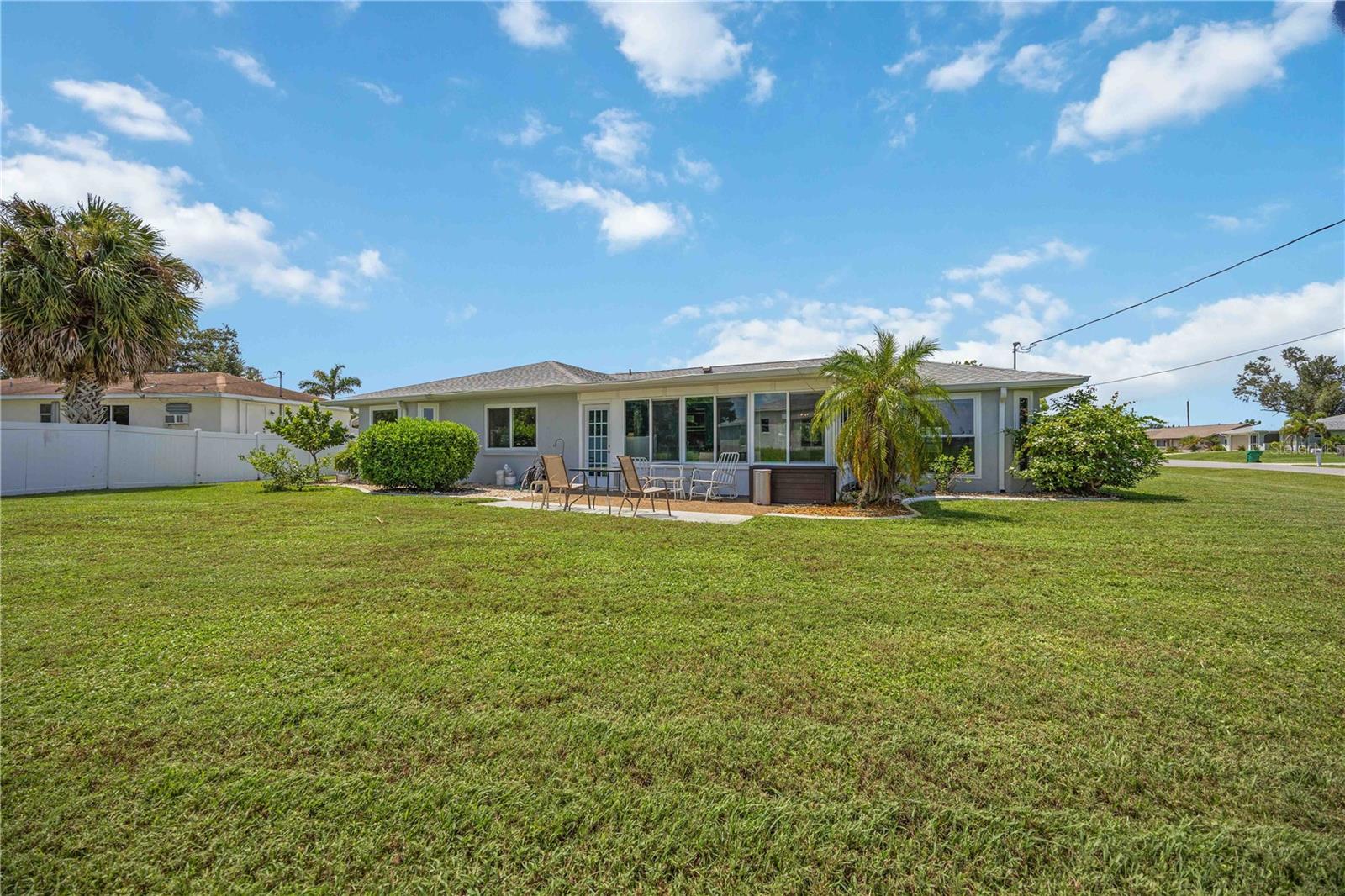 Beautiful upgraded 3-bedroom, 2-Bath home on a spacious 0.36-Acre corner lot in the heart of Port Charlotte. With 1,772 sq ft, this move-in ready home offers comfort, functionality, and peace of mind thanks to major updates throughout. Step inside to a split-bedroom layout with a modern galley kitchen featuring granite countertops, a tray ceiling, and recessed lighting. The interior laundry room and attached 2-car garage add everyday convenience, while fresh interior and exterior paint completed in 2024 and 2025 gives the home a crisp, clean feel. This home has been extensively updated, including new roof with third-nail wind mitigation in 2022, new gutters, soffit, and downspouts installed the same year, new 200 Amp Square D Power Panel and circuit breakers in 2022, and a new 3.5-ton A/C and furnace system also installed in 2022 with a service contract extended through 2028. In 2023 impact-resistant windows were installed in the Lanai, and in 2024, fifteen hurricane-rated windows were installed throughout the rest of the home. The enclosed Lanai, accessible from both the dining room and family rooms, features large sliding patio doors with impact glass, creating a perfect year-round bonus space. The Bay Window in the Living Room has a Remote Controlled rolldown shutter. The home is connected to city water and sewer and features a 35-head irrigation system powered by a private well, allowing you to maintain beautiful landscaping without driving up utility costs. This home is ideal for full-time residents, seasonal residents, or investors looking for a turn-key property. Located in a quiet, well-established neighborhood, you’re just minutes away from Gulf Coast beaches, boating, fishing, shopping, dining, and top-rated medical facilities. Whether you’re enjoying the Florida sunshine or relaxing inside your updated home, this property delivers the best of Southwest Florida. Furnishings are negotiable and a $3000 Allowance is included for carpet replacement.