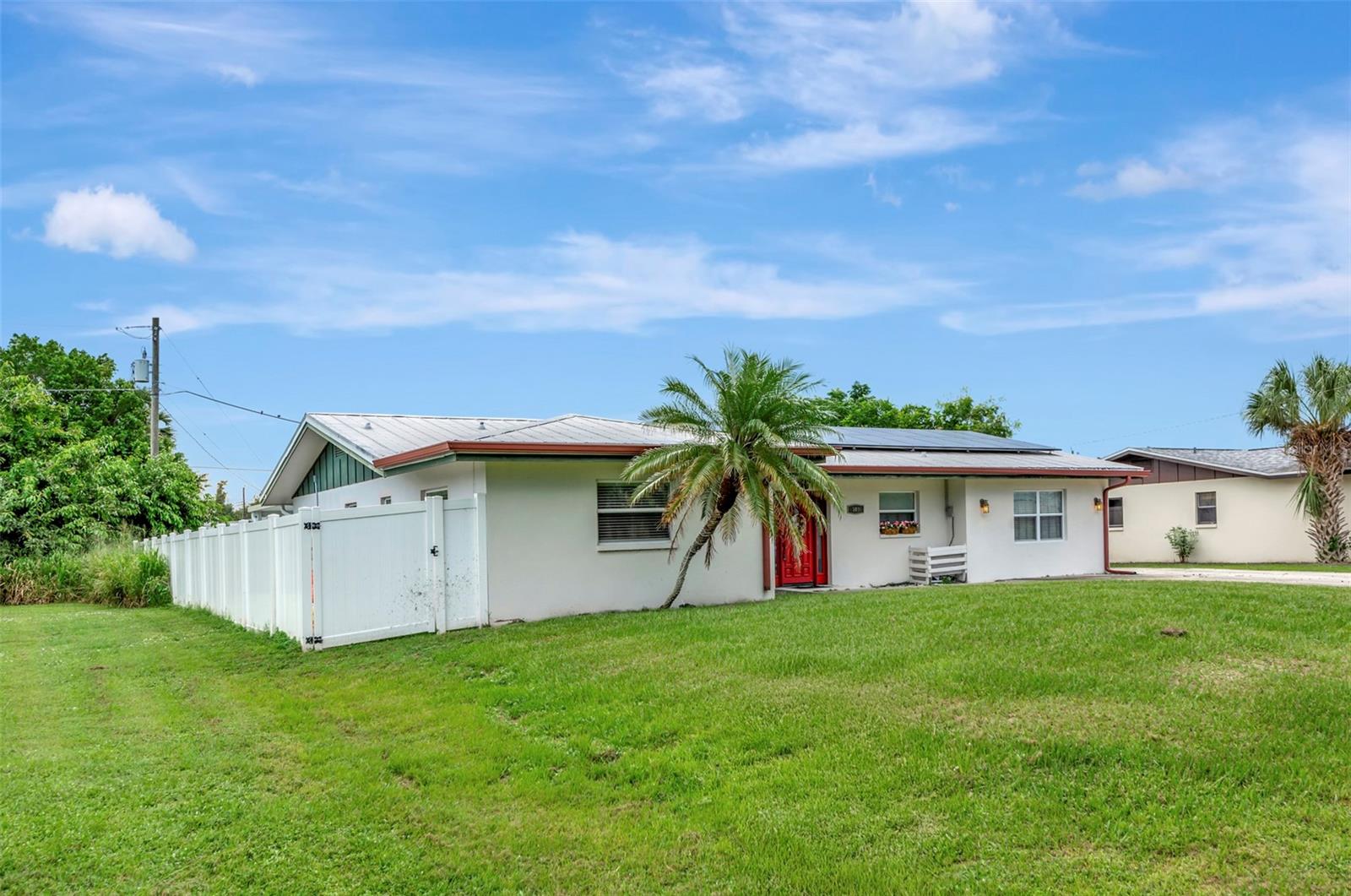 Welcome to this beautifully maintained 3 bedroom, 3 bathroom home in the heart of Port Charlotte! Designed for both comfort and efficiency, this home is equipped with a durable metal roof and solar panels—giving you peace of mind and lower utility costs. Step inside to find a spacious floor plan with a well appointed kitchen, featuring new appliances, perfect for everyday living and entertaining. The oversized primary en-suite is a true retreat, featuring dual vanities, a relaxing soaker tub, and a separate shower. Every room features ample closet space making storage a breeze. Step outside to experience the new covered lanai overlooking the highlight of this home, the sparkling saltwater heated pool featuring a jetted bench—an ideal spot to unwind and enjoy Florida living year-round. A new large shed adds even more storage and functionality to the property. Conveniently located near shopping, dining, schools, and just a short drive to Gulf beaches, this home offers the perfect blend of relaxation and accessibility. Don’t miss the chance to own this Port Charlotte gem with modern upgrades and resort-style outdoor living!