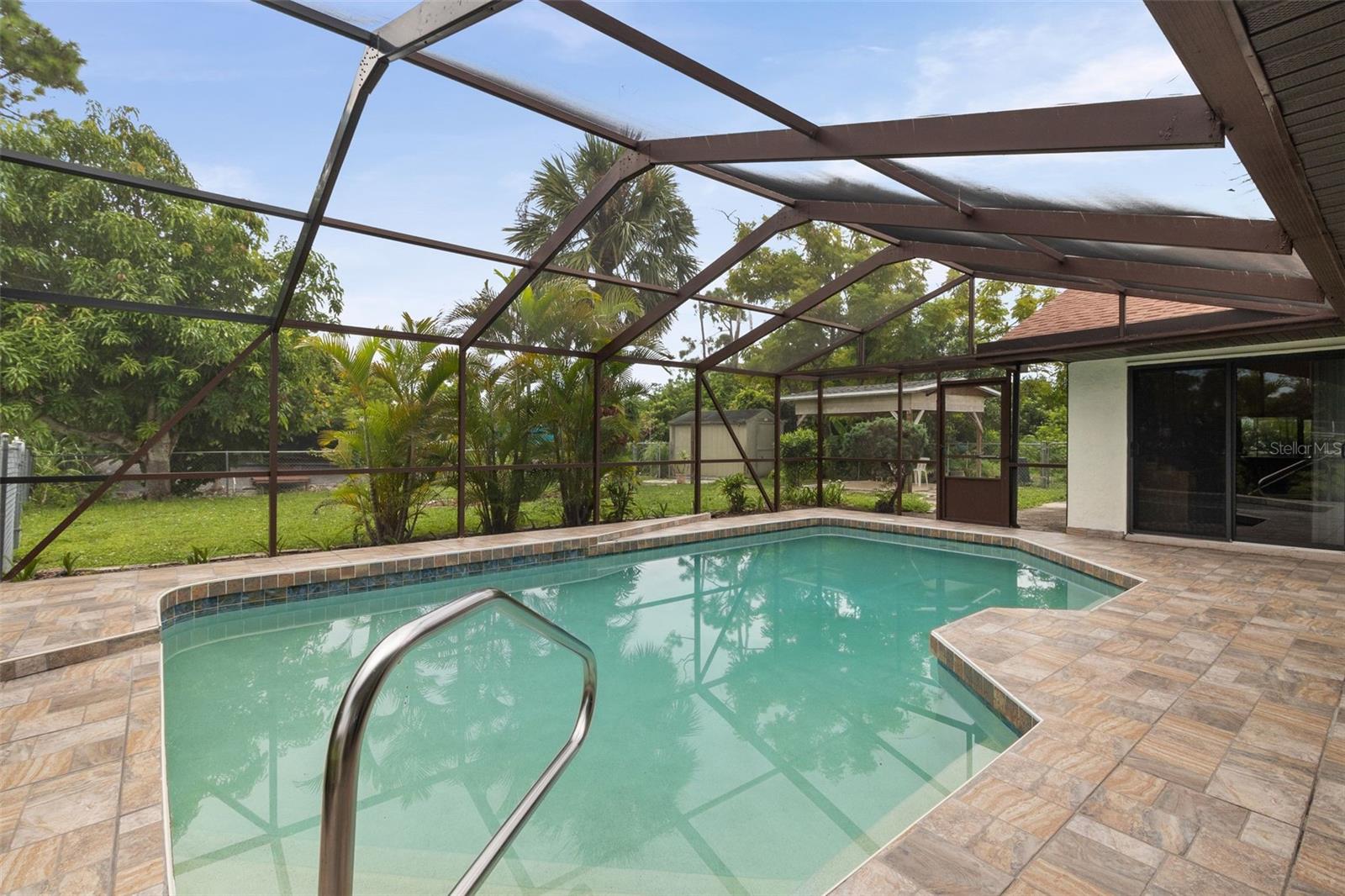 45K Price Reduction! Waterfront Pool home on quiet Pellam Blvd. There is room for everyone with 3 Bedrooms, 2 Bathroom, 2 Living spaces, and 2 dining spaces. Primary bedroom and 2nd bedroom have private slider doors to the pool. Kitchen is spacious and open to you main living room. Primary bedroom has 2 walk-in closets and an ensuite with separate soaker tub and shower. ROOF 2024 This canal front home IS NOT IN A FLOOD ZONE. The lot is 1/3 of an acre and offers several fruit trees and a fishing dock. Pool is oversized and was recently refinished. NO HOA Don't miss your opportunity to own this piece of waterfront Florida paradise.