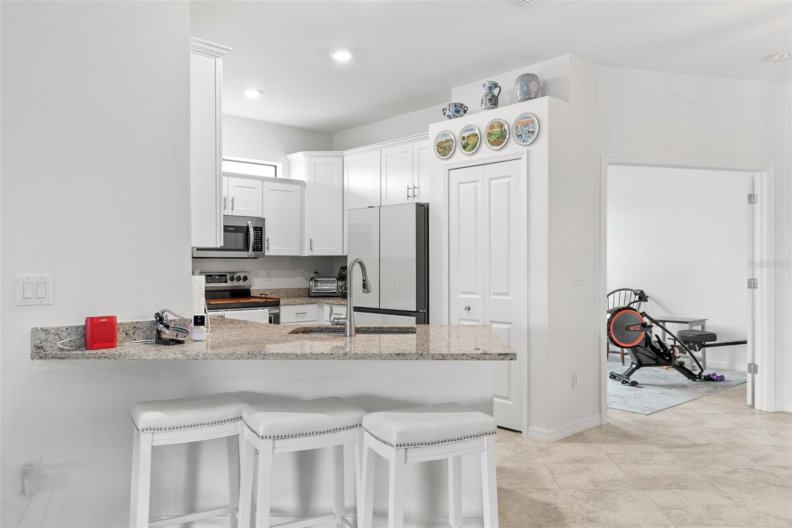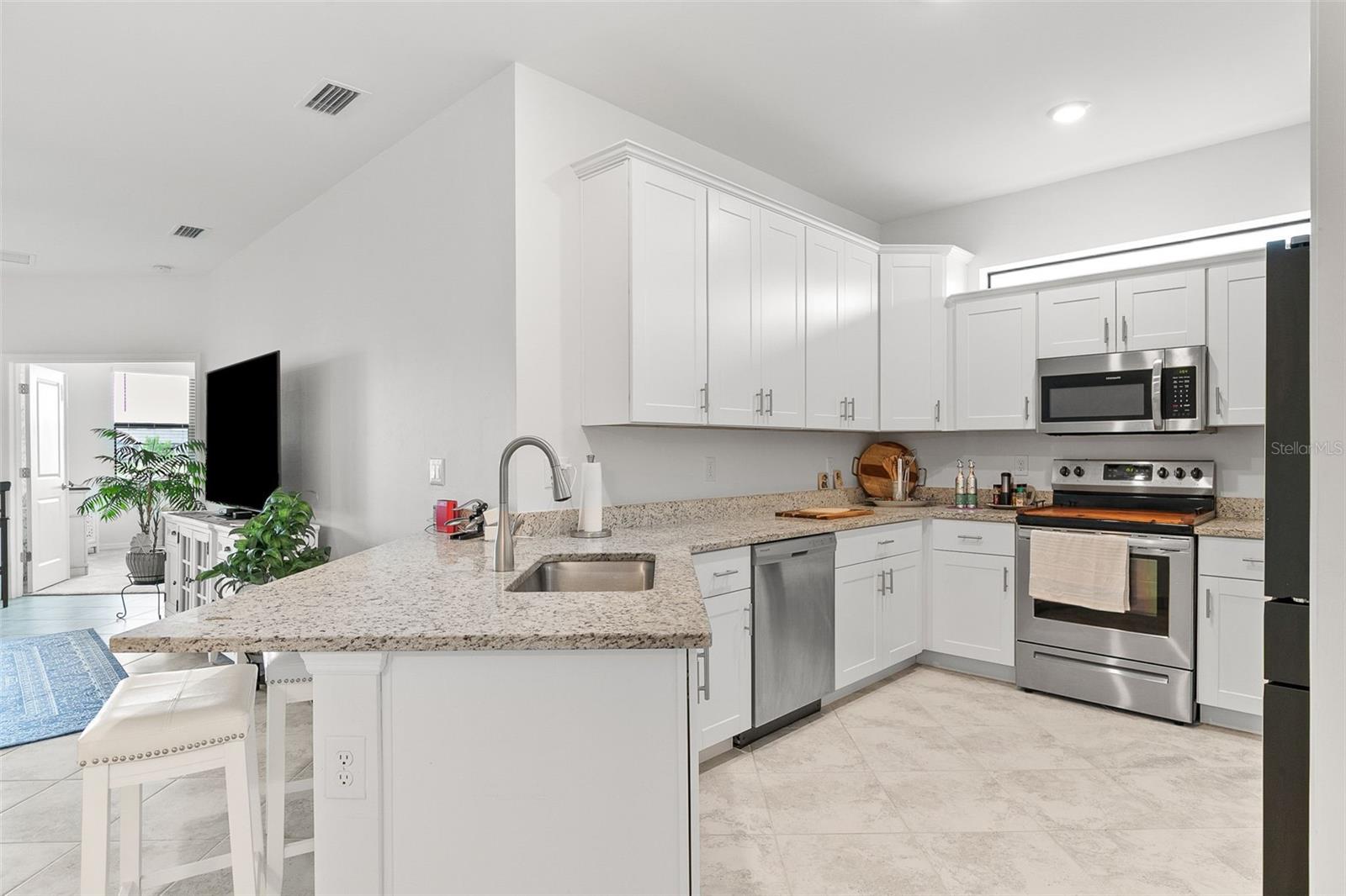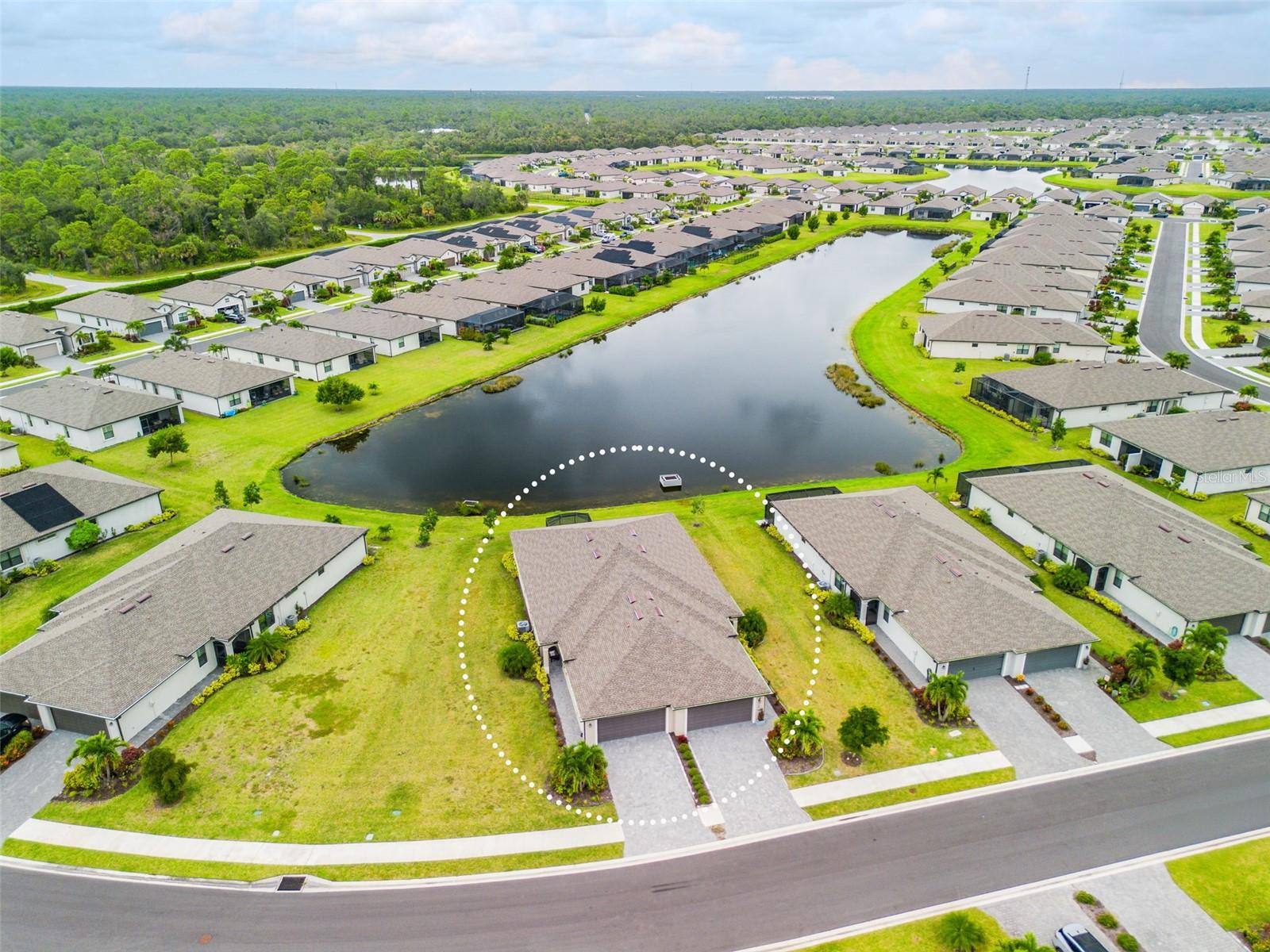 Enjoy wide water views and a low-maintenance lifestyle in this 2022-built villa located in the gated community of Biscayne Landing. Designed with convenience in mind, this home offers over 1,500 sq. ft. of functional living space with 2 bedrooms plus a versatile office/den. The open floor plan allows for seamless flow between the kitchen, dining, and living areas—ideal for everyday living and entertaining alike. The kitchen is designed for efficiency, featuring abundant cabinetry, granite countertops, stainless steel appliances, a pantry, and a breakfast bar for quick meals or casual gatherings. Practical finishes throughout include diagonal tile flooring in the main living areas, a neutral color palette, and modern fixtures that reduce the need for frequent updates. The primary suite features a walk-in closet, double vanities with granite counters, a soaking tub, and a tiled walk-in shower—combining comfort with easy upkeep. A separate laundry room with washer and dryer adds to the home’s functionality. Life in Biscayne Landing is built around simplicity and leisure. Grounds maintenance is included, freeing up your time to enjoy community amenities such as pickleball, a heated pool, fitness center, and clubhouse. Plus, the location offers quick access to beaches, boating, parks, shopping, and spring training baseball—everything Southwest Florida living is known for. If you’re seeking a home that blends style, efficiency, and low-maintenance living, this villa is an ideal choice.
