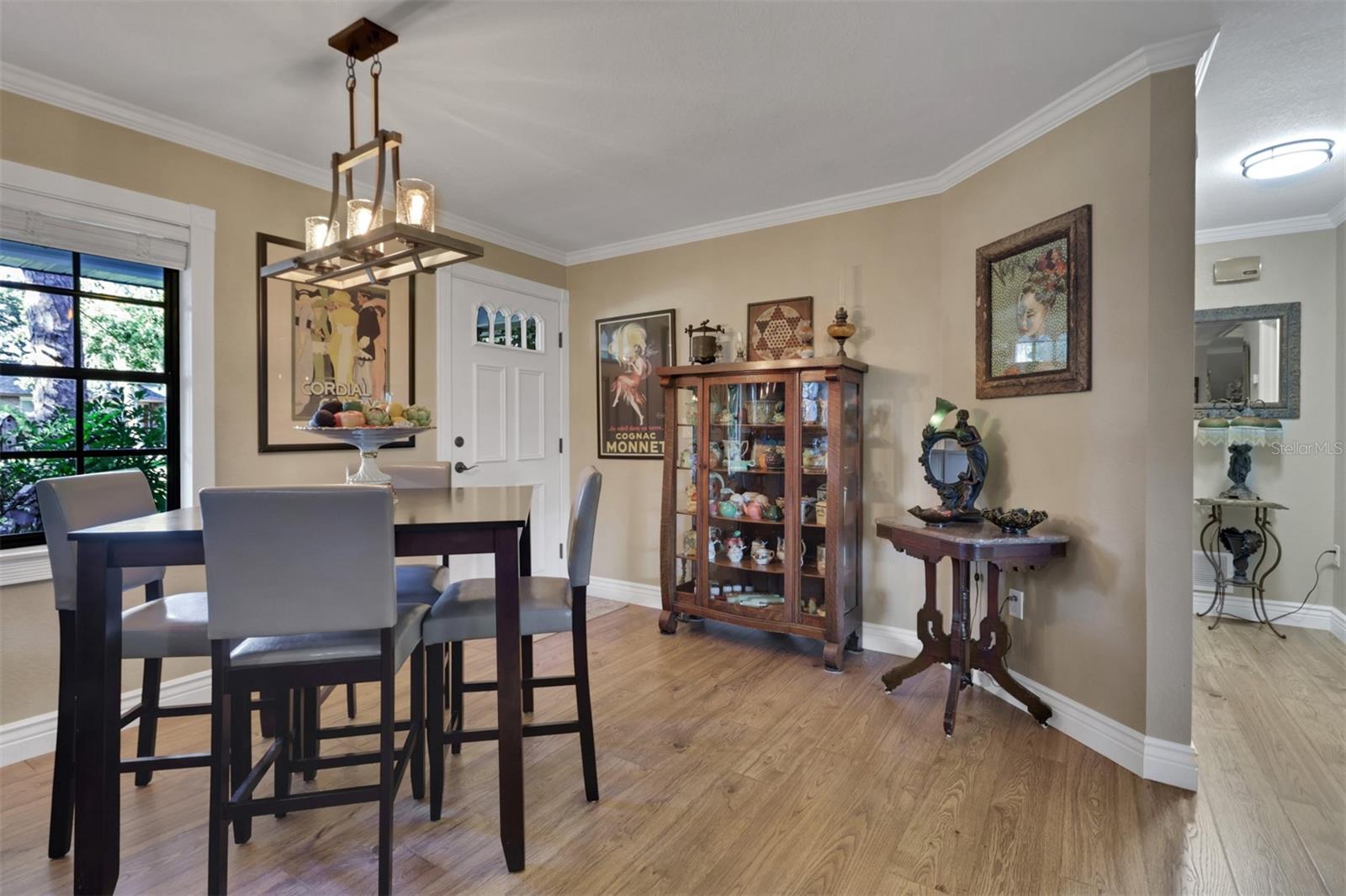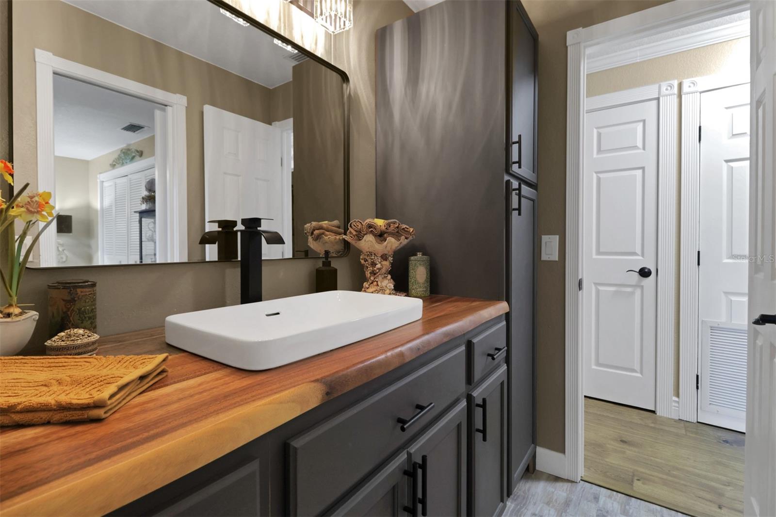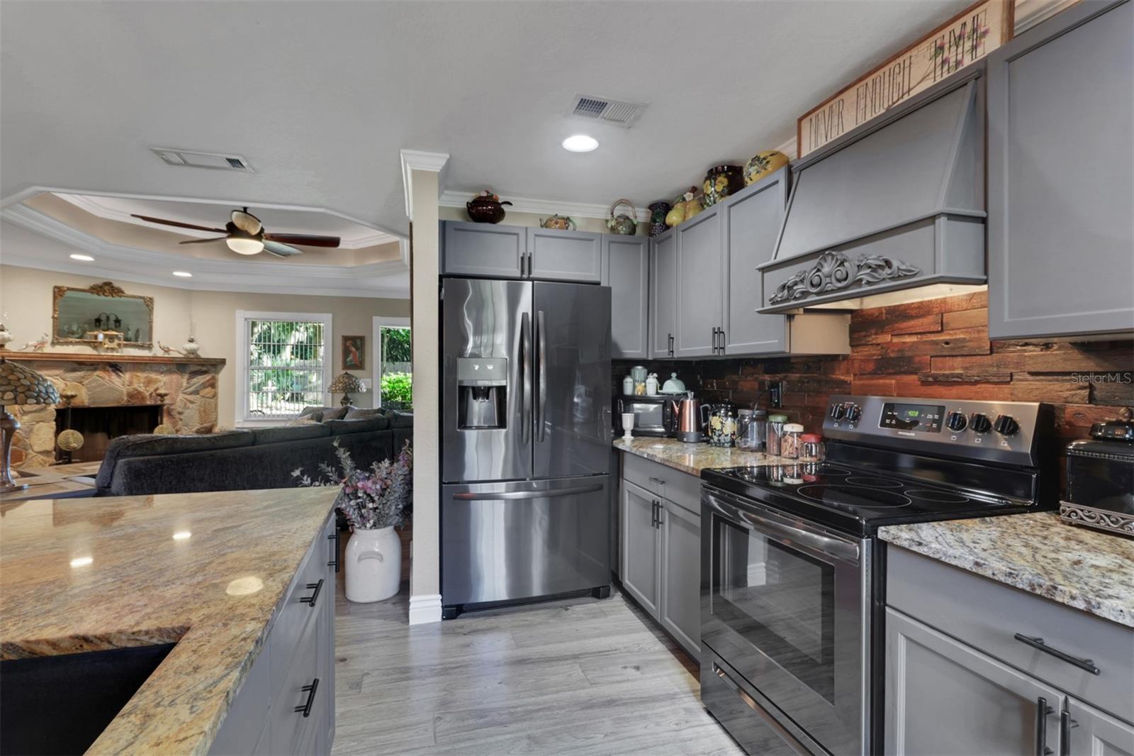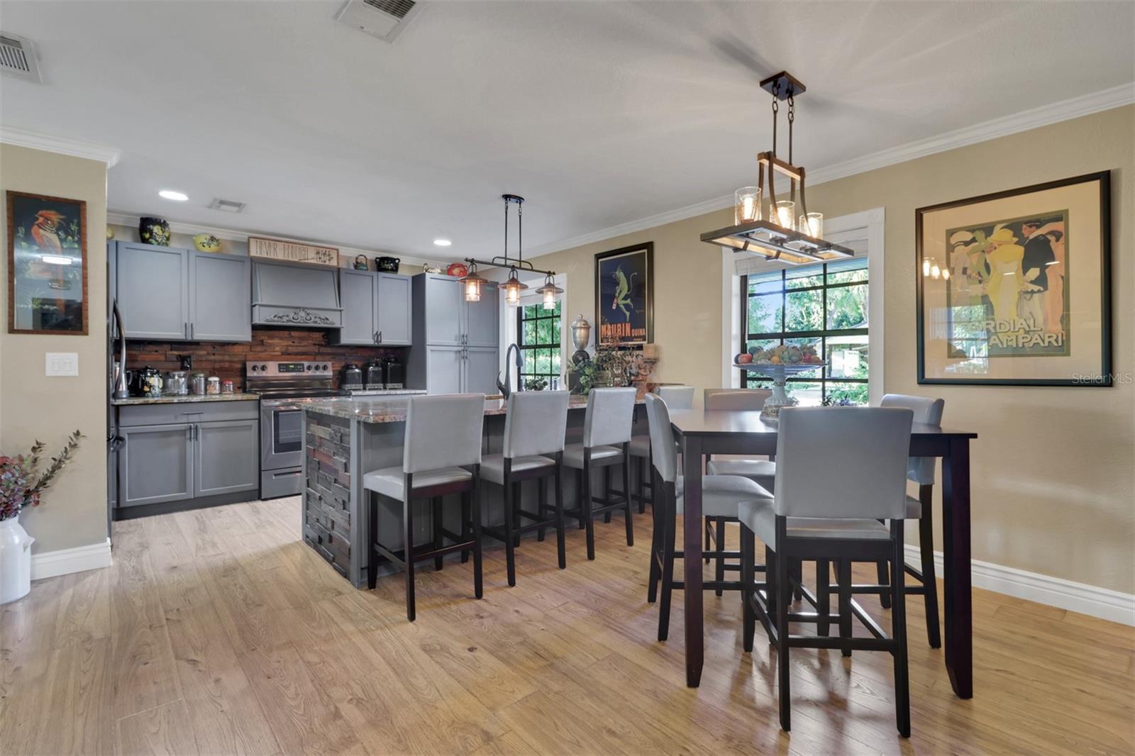 Beautifully updated Port Charlotte home sits on an oversized corner lot with two driveways, including a second entrance that guides you straight to the impressive 14’x40’ garage can be used as a workshop, man cave, or custom bar area.Roof replaced July 2022 and newer AC system. Home has been updated within the last 4 years and features laminate flooring, crown molding, tall baseboards, flutings/rosettes, and new interior doors. Kitchen offers granite countertops, updated cabinets, granite sink with disposal, and multiple refrigerators including one in the garage and a mini fridge in the bar. Stainless appliances plus washer and dryer included. Bathrooms are completely updated with new tubs/showers, sinks, cabinets, and fixtures. Lighted trey ceiling, new light fixtures, and ceiling fans throughout. Many beautiful trees and landscaping throughout the property. Backyard features a partially sunken 15’ pool with new liner, pump, and motor (2023), updated landscaping, fencing, and mature trees for added shade and privacy. Property is not in a flood zone. Conveniently located close to shopping, dining, and entertainment yet tucked away in a quiet neighborhood with great neighbors.