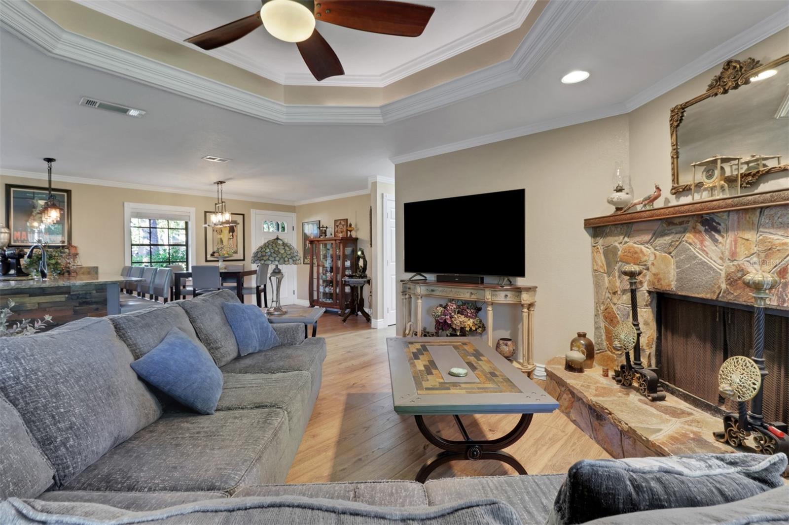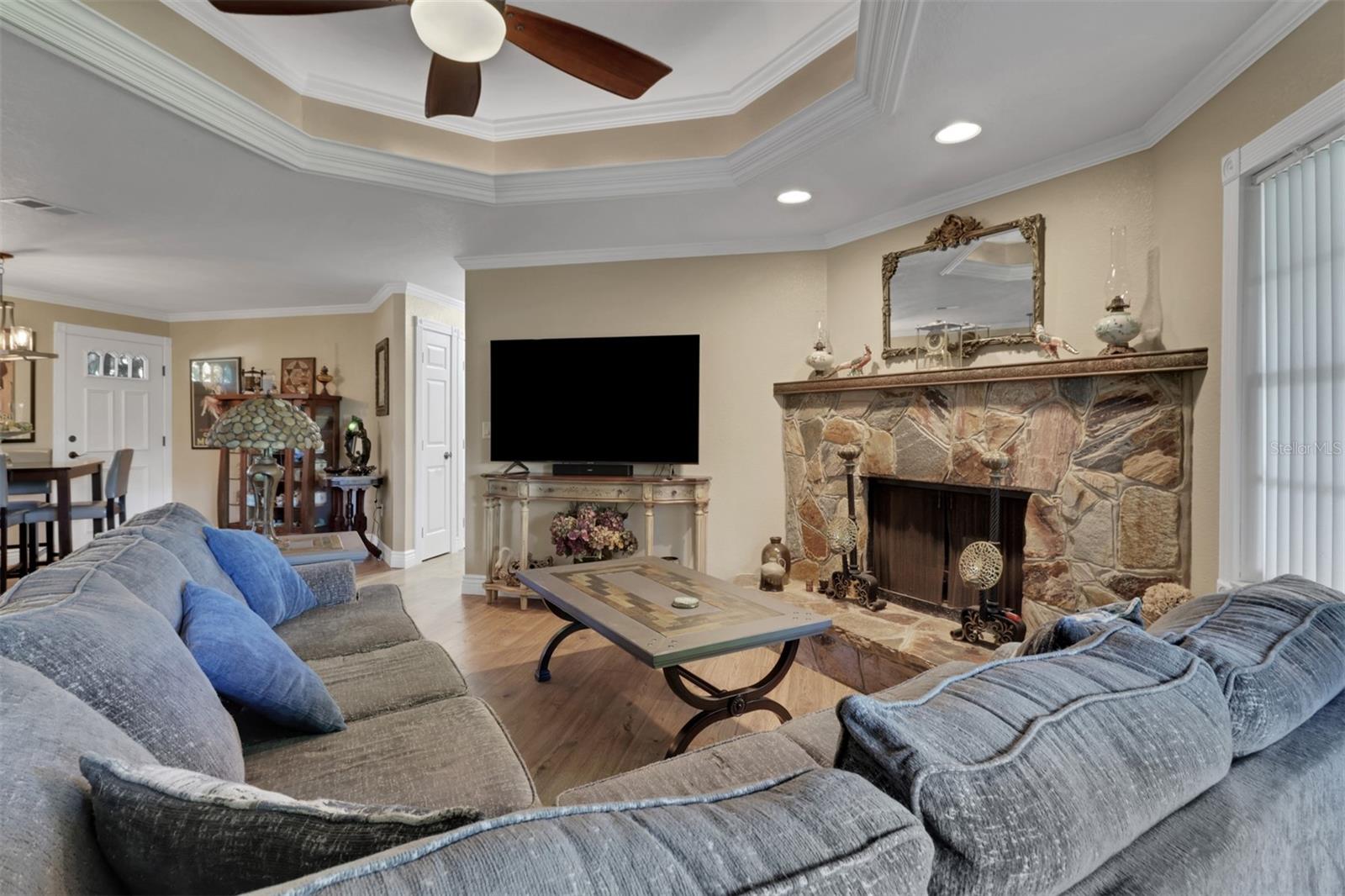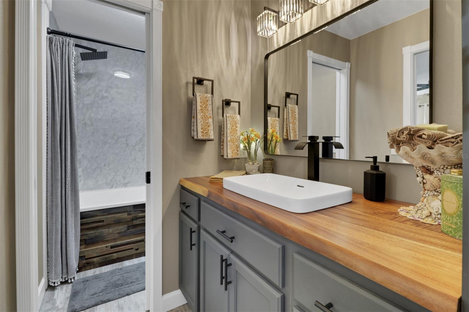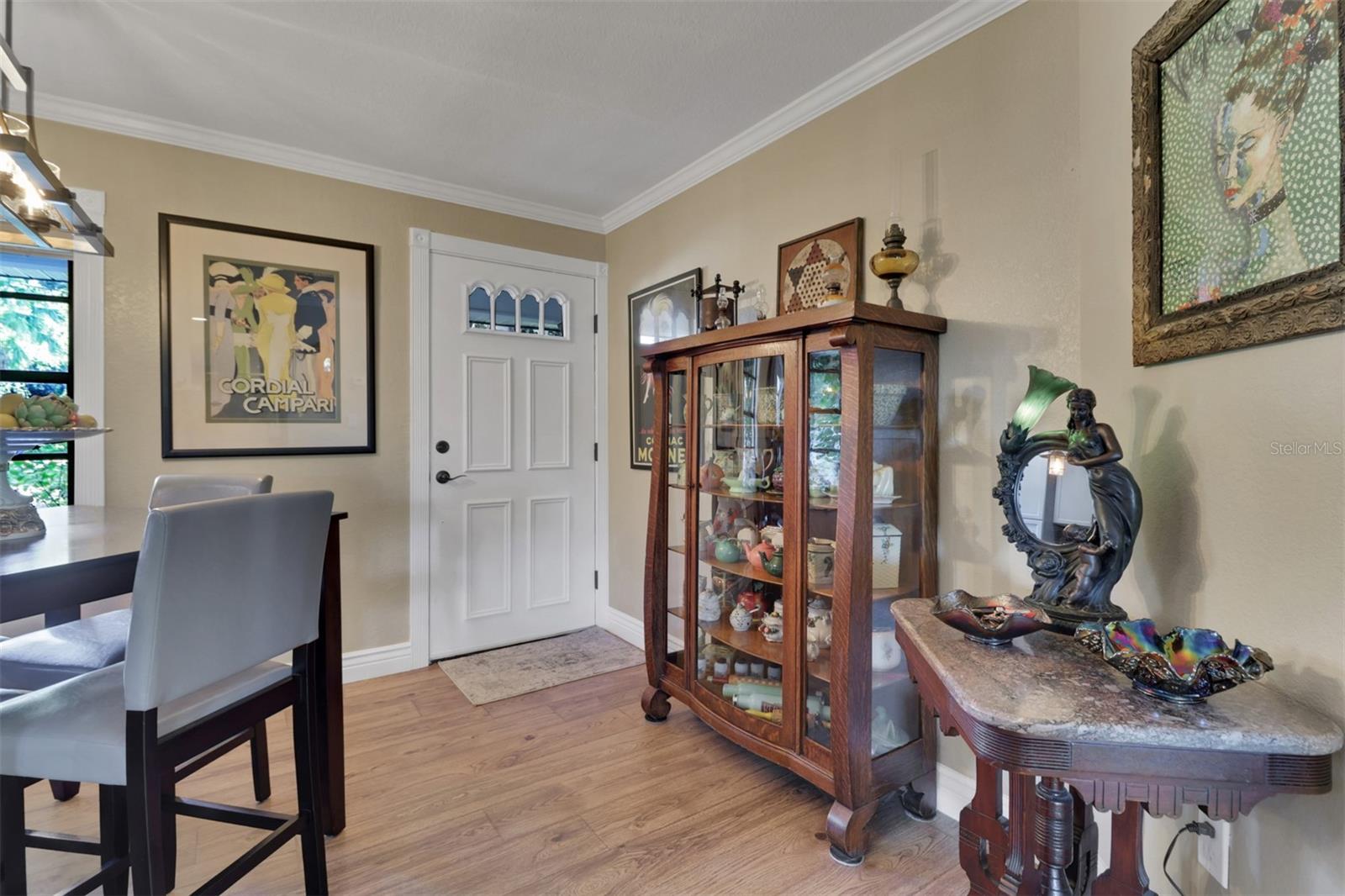 Beautifully updated Port Charlotte home sits on an oversized corner lot with two driveways, including a second entrance that guides you straight to the impressive 14’x40’ garage can be used as a workshop, man cave, or custom bar area.Roof replaced July 2022 and newer AC system. Home has been updated within the last 4 years and features laminate flooring, crown molding, tall baseboards, flutings/rosettes, and new interior doors. Kitchen offers granite countertops, updated cabinets, granite sink with disposal, and multiple refrigerators including one in the garage and a mini fridge in the bar. Stainless appliances plus washer and dryer included. Bathrooms are completely updated with new tubs/showers, sinks, cabinets, and fixtures. Lighted trey ceiling, new light fixtures, and ceiling fans throughout. Many beautiful trees and landscaping throughout the property. Backyard features a partially sunken 15’ pool with new liner, pump, and motor (2023), updated landscaping, fencing, and mature trees for added shade and privacy. Property is not in a flood zone. Conveniently located close to shopping, dining, and entertainment yet tucked away in a quiet neighborhood with great neighbors.