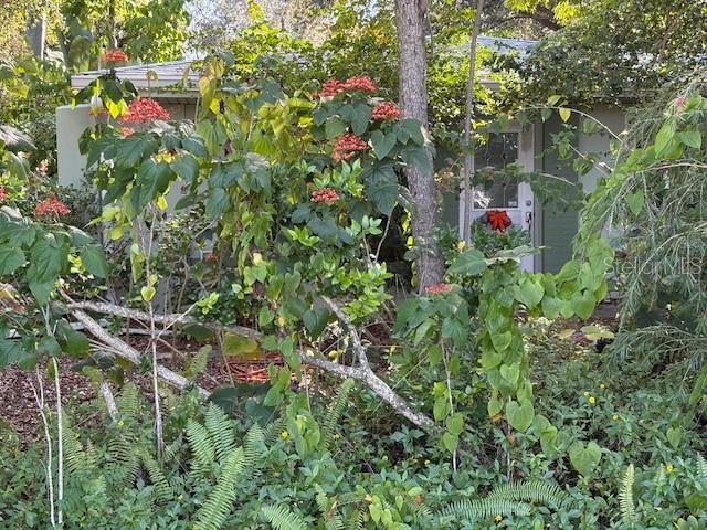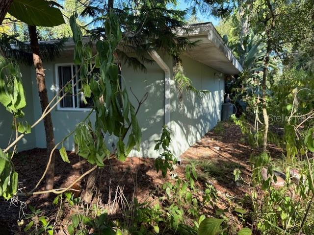 This home is hidden from the road, so very very private setting. IF you want privacy this is the one. No need for mowing here. Much overgrown outside, but inside solid house with new roof in 2023. Great investor home for rental. Structure is fine just needs some updating inside. All terrazzo flooring in this 3-bedroom home with one full bath with shower and half bath with washer as well. Come see soon very different appearance for sure!