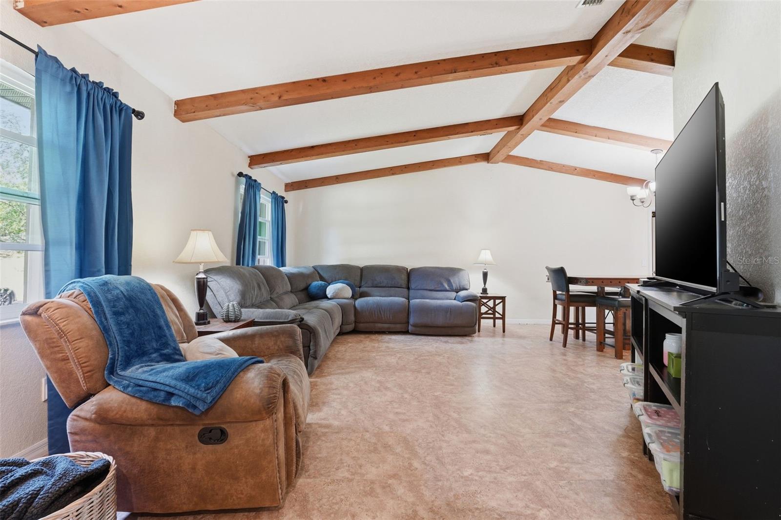 Welcome to this 4-bedroom, 2.5-bath home tucked away on a quiet street, offering an ideal blend of space, comfort, and Florida lifestyle living. The open floor plan features a light-filled kitchen overlooking the family room and backyard—perfect for everyday living and entertaining. All rooms are generously sized, including an oversized primary suite with his-and-hers walk-in closets. Vaulted living room ceilings accented with wood ceiling timbers add warmth and character. A split floor plan, half bath off the garage, inside laundry, ample storage, and tile and luxury vinyl plank flooring enhance functionality. Enjoy outdoor living with a large lanai and oversized 20x16 patio, ideal for barbecues and gatherings, plus a great sized backyard with a shed, the front of home has beautiful mature moringa tree, avocado tree, wild orange and small lime tree, Mature Mango and banana tree. The kitchen offers freshly painted cabinets, passthrough counters, tile flooring, flat-top stove, and RO water system. Modern accordion shutters on all windows and doors, an oversized driveway for up to four vehicles, and a central yet peaceful location complete the package—minutes to shopping, 10 minutes to Charlotte Harbor, 30 minutes to beaches, and close to golf. Schedule your showing today and start living the Florida dream.