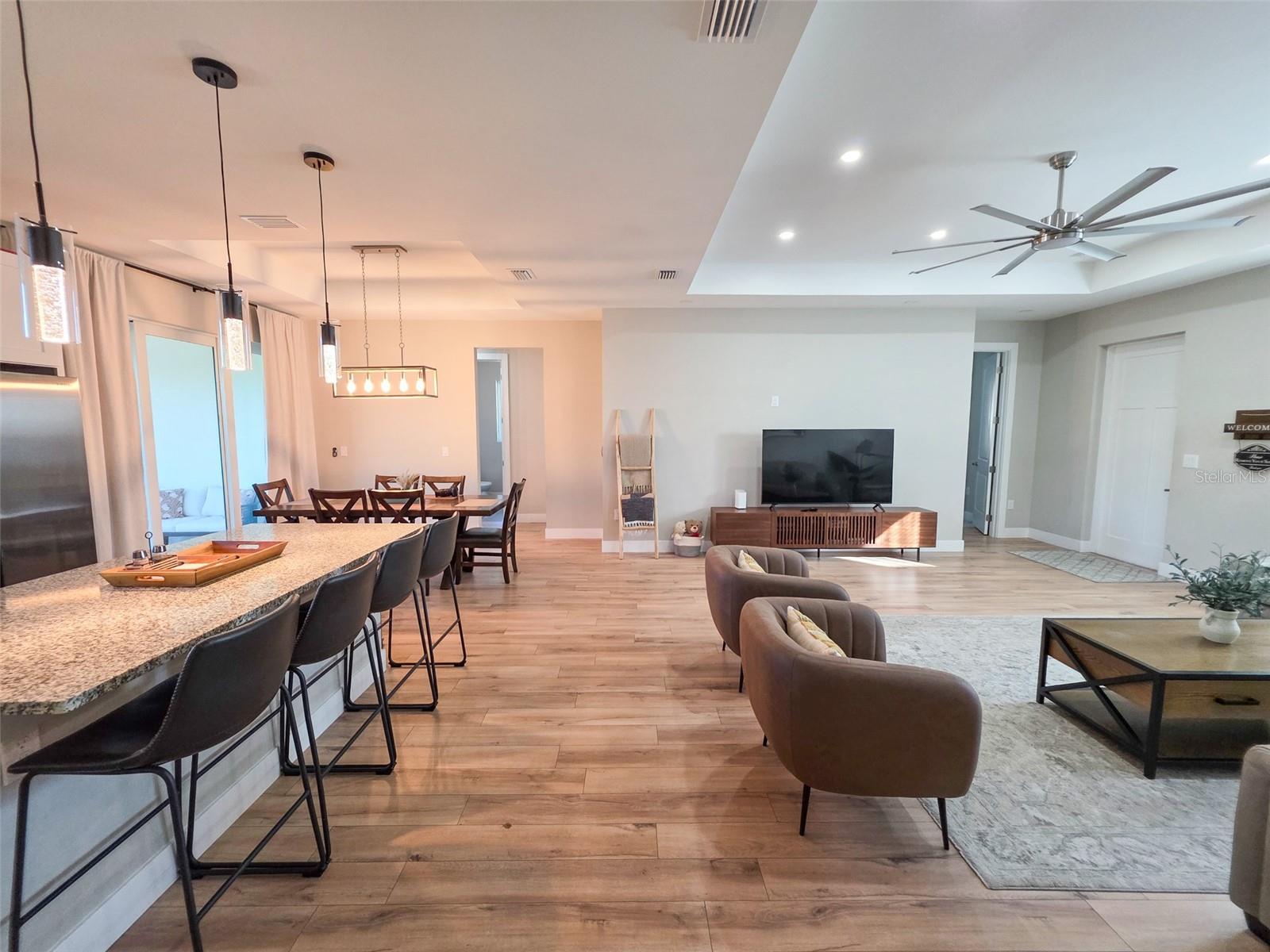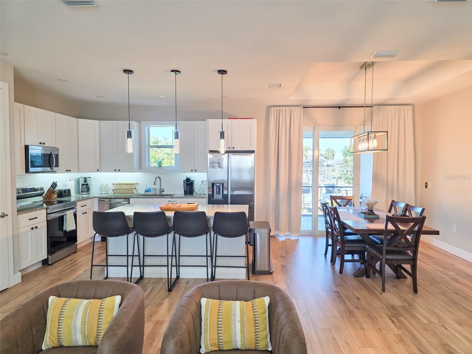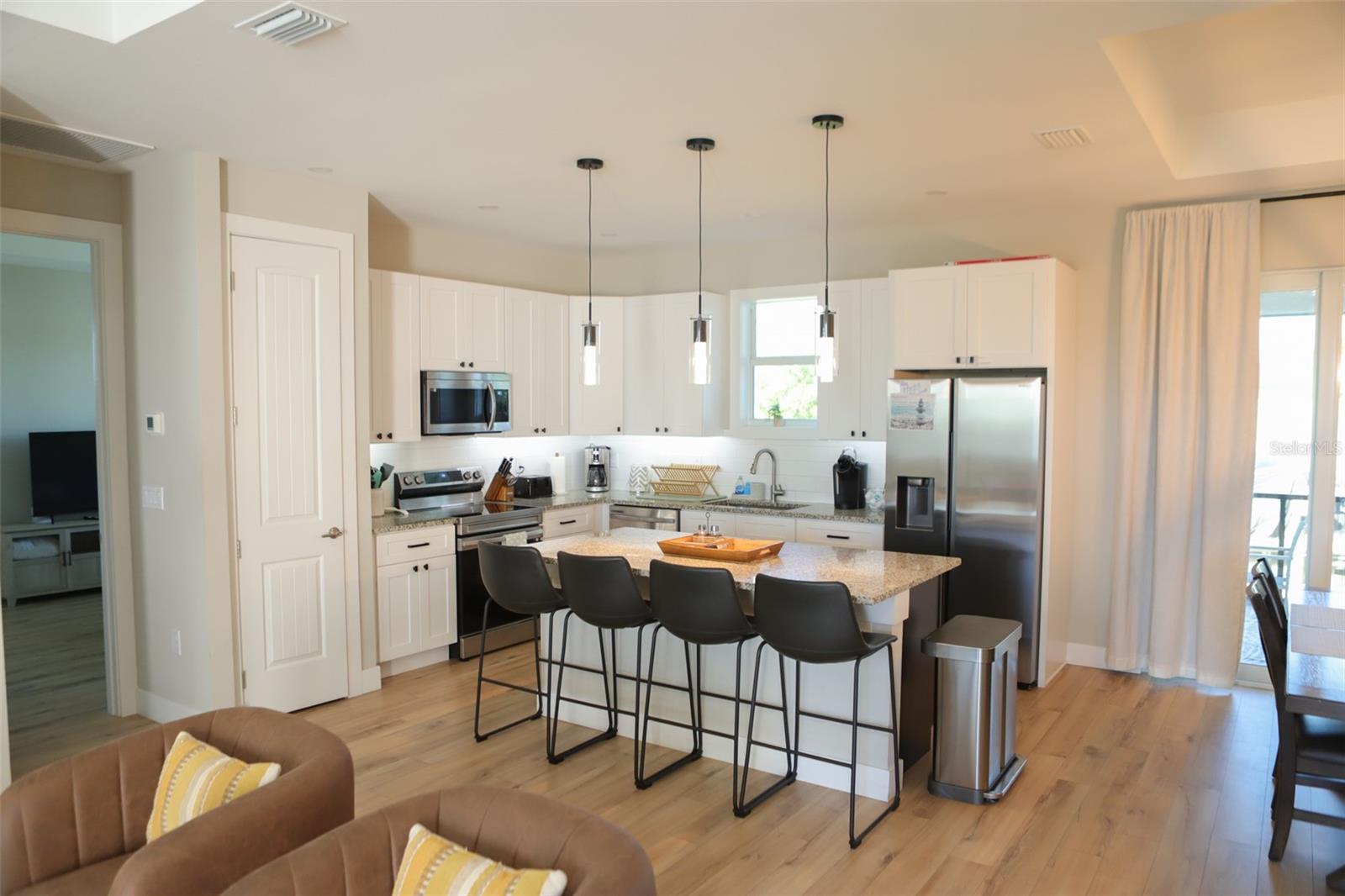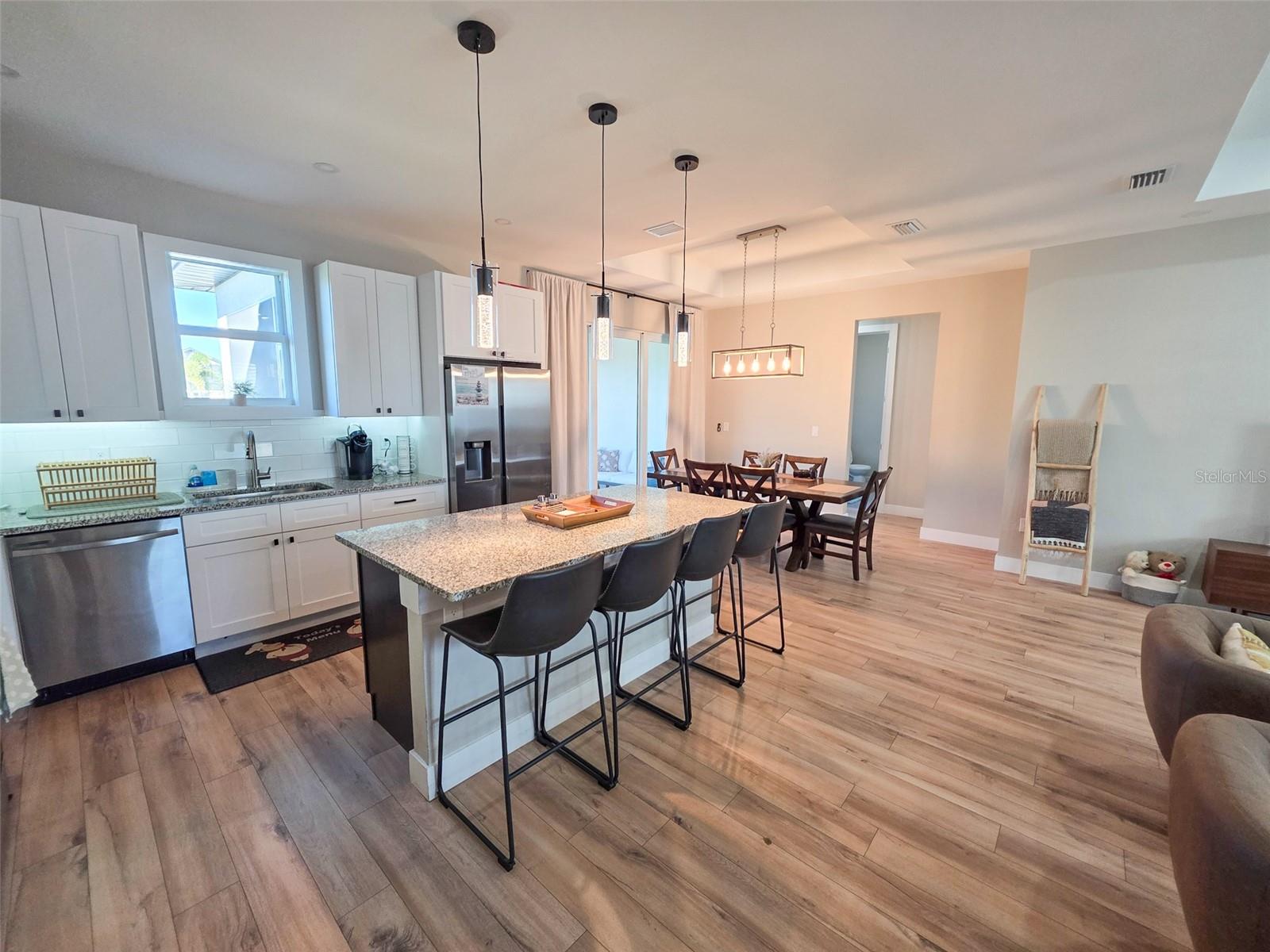 Florida waterfront living at its finest in this 2023 custom-built home located on a saltwater sailboat canal with no bridge restrictions and no HOA. Boaters will love the 80 feet of private waterfront, complete with a concrete dock and 12,000-lb boat lift, offering quick access to open water and the Gulf. Inside, the home features premium finishes throughout, including water-resistant laminate flooring, granite countertops, and 42” upper kitchen cabinets for generous storage. The open-concept layout is enhanced by 8-foot interior doors, impact-resistant hurricane windows, sliders, and doors, and beautifully tiled bathrooms and showers. The spacious primary suite includes a luxurious walk-in shower and a standalone soaking tub. Built for both comfort and peace of mind, the home sits high and dry on an elevated stem wall. Enjoy Florida outdoor living from the screened lanai overlooking the water, with ample room to add a pool if desired. A paver driveway adds to the home’s curb appeal. This is a rare opportunity to own a nearly new, custom waterfront home with modern construction, upscale features, true boating access, and no HOA restrictions.