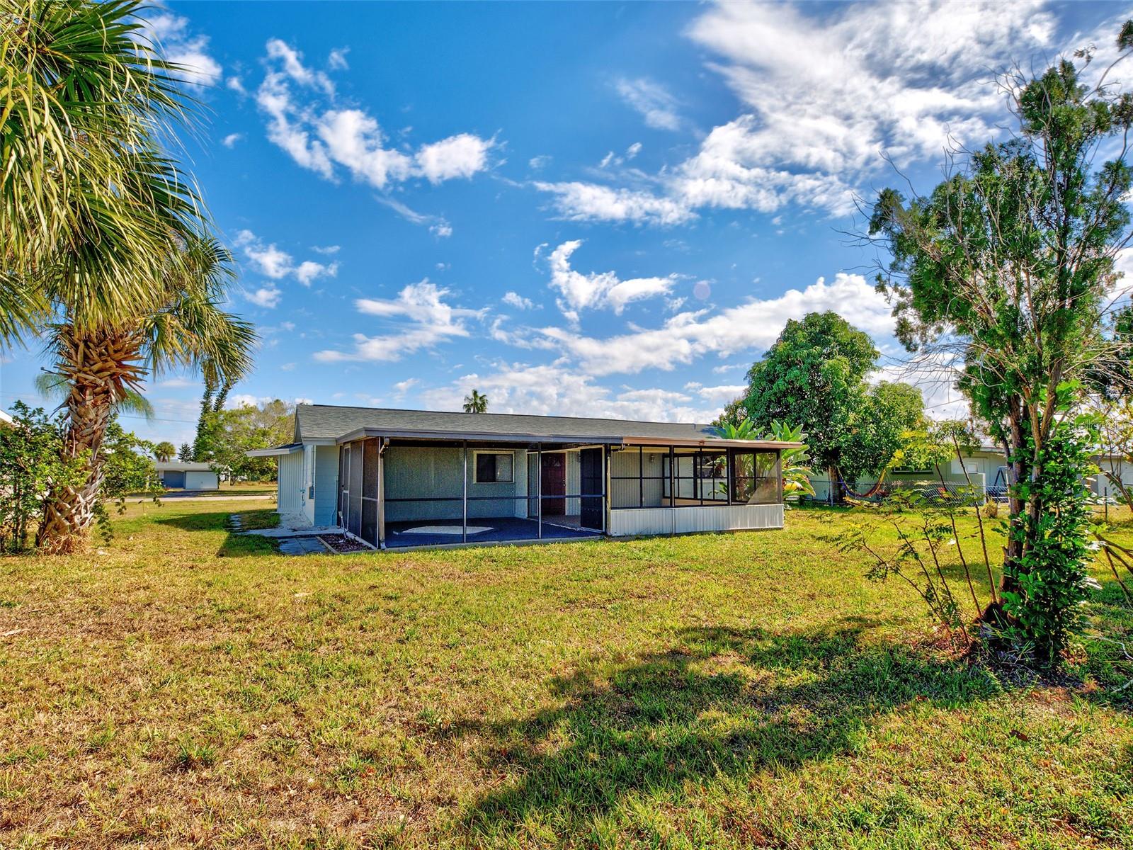 Very large 2-bedroom 2 bath home in the center of Port Charlotte, Tile throughout, newly updated eat-in kitchen with stainless steel appliances Primary bedroom with updated en-suite with dual sinks and walk-in closet, also a very spacious renovated guest bath. Property has been freshly painted inside and out. Large Florida room and lanai leads to private back yard, roof 2024, new ac and updated electrical panel, All windows have hurricane protection, public water and sewer, just minutes to beach complex, shopping, parks and Sunseekers resort.
