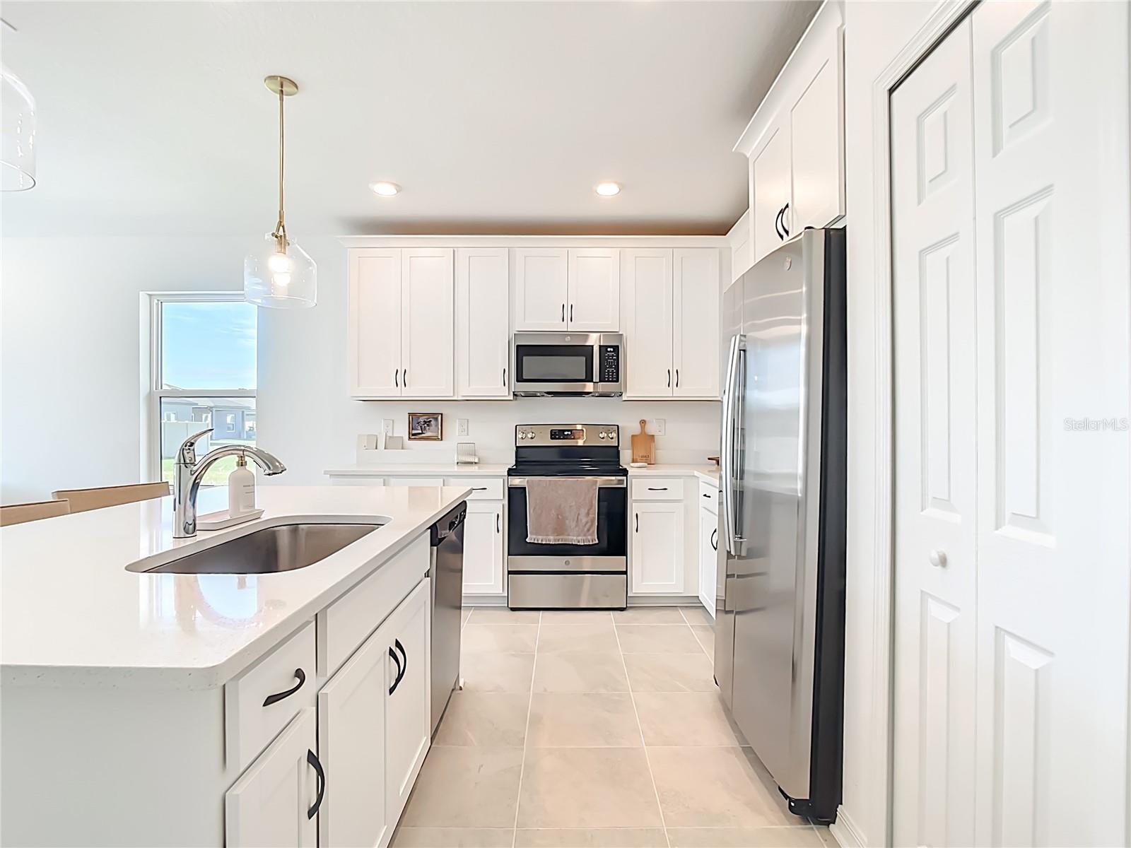 Welcome to 16863 Fiesta Drive—a beautifully designed, 2024 home in Hammocks at West Port offering 4 bedrooms, 2.5 baths, and 2,289 sq ft of living space with a smart layout made for everyday comfort and easy entertaining. Step inside to an impressive foyer with a convenient powder room, then flow into an open-concept main living area anchored by a chef-inspired kitchen featuring quartz countertops, abundant cabinetry, and a large center island with double sink and bar seating—perfect for hosting or casual meals. A dedicated flex room adds versatility for a home office, den, or playroom, while the first-floor owner’s suite provides a peaceful retreat with dual vanities, a spacious walk-in closet, and direct access to the covered lanai for relaxed outdoor living. Upstairs, three generously sized bedrooms and a full bath with dual vanities and a tub provide space for family and guests, complemented by an airy hallway that overlooks the foyer below for added light and openness. Additional highlights include a 2-car garage, block construction, hurricane shutters, and irrigation. Enjoy neighborhood amenities including sidewalks, a playground, and a park, all in desirable Charlotte County and conveniently located near major routes, shopping, and restaurants. An easy drive to the best beaches in sunny Florida!