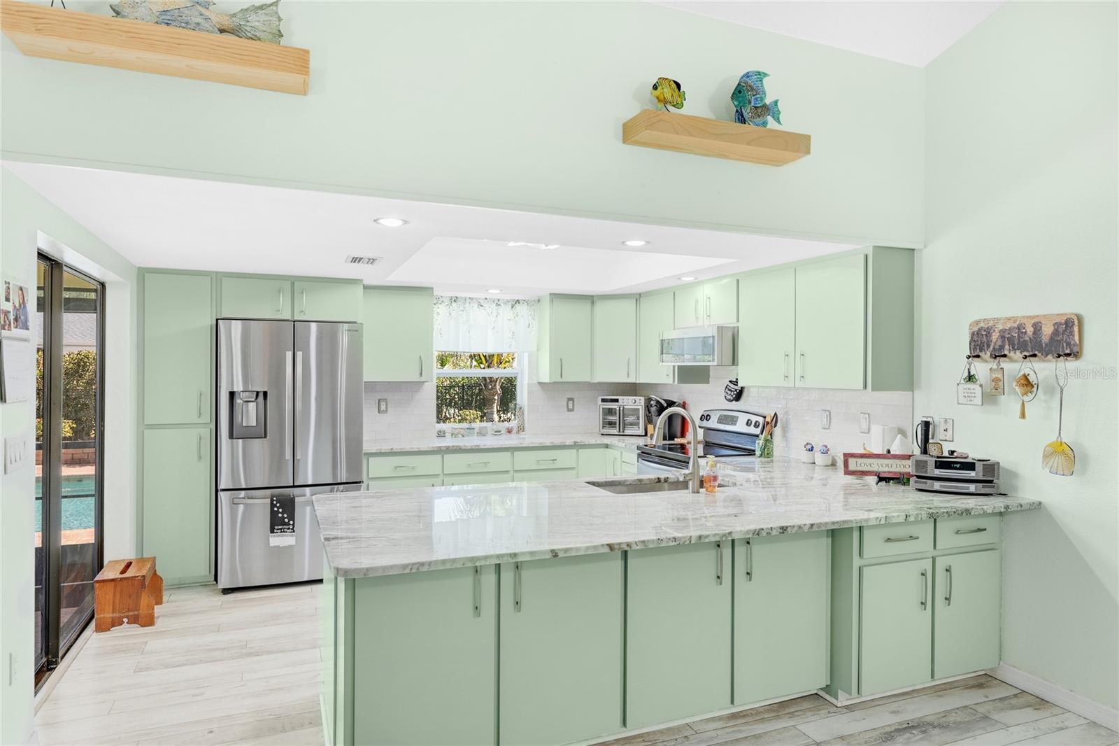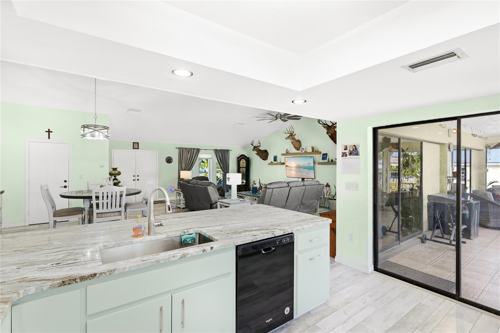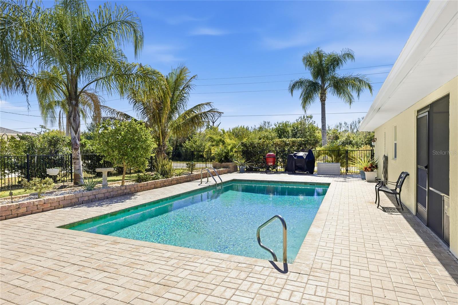 Located in the established community of Gulf Cove, this pool home is positioned on an oversized corner lot near the canal, offering a sense of openness, privacy, and flexibility with no mandatory HOA. Its unique setting provides wide spacing between neighboring homes and a peaceful backdrop without the responsibilities of a waterfront lot. Inside, vaulted ceilings and an open-concept layout create a bright, airy atmosphere. Wide-plank flooring extends throughout the main living areas, complementing the coastal color palette and natural light that fills the space. The living and dining areas flow seamlessly, making the home comfortable for daily living and well suited for entertaining. The kitchen sits at the heart of the home and features generous cabinetry, stone countertops, stainless steel appliances, and a breakfast bar that opens to the main living area. Sliding glass doors lead to the covered lanai, creating an easy transition to outdoor living. The primary suite offers a comfortable retreat with ample space and an ensuite bath with a walk-in shower. Guest bedrooms are arranged in a split floor plan, providing privacy and flexibility for visitors, family, or a home office. A convenient pool bath enhances functionality for outdoor entertaining. Outdoors, the backyard is designed for relaxed Florida living. The resurfaced pool is surrounded by a brick paver deck, mature palms, and tropical landscaping, while wrought-iron fencing adds privacy and definition. The expansive side yard is a standout feature, offering room for boat or RV storage, future expansion, or creative outdoor use. A matching shed provides additional storage or workshop potential. Residents of Gulf Cove have the option to join the voluntary homeowners association, which offers access to a community boat ramp, waterfront park, playground, and pavilion located nearby. This allows residents to enjoy boating and community amenities without a mandatory association or fees tied to the property. With a newer metal roof, impact windows, thoughtful updates, and a rare oversized corner-lot setting, this home offers a versatile option for full-time living, a seasonal retreat, or long-term ownership in a well-established Port Charlotte community. **THIS PROPERTY QUALIFIES FOR A 1% LENDER INCENTIVE IF USING PREFERRED LENDER. INQUIRE FOR MORE DETAILS.**