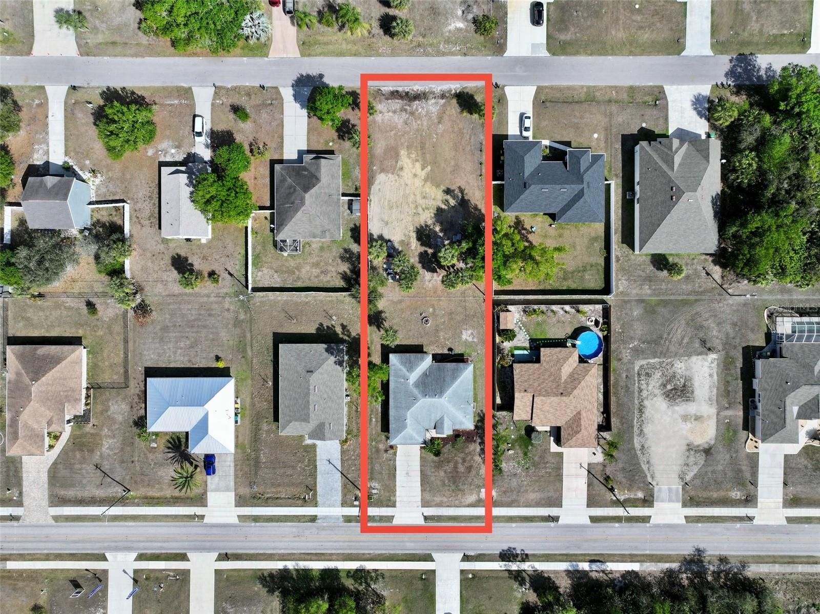 Welcome to this 3-bedroom, 2-bath, 2-car garage home featuring a desirable split floor plan and a rare additional lot — offering space, flexibility, and opportunity all in one. A screened entry welcomes you into a light-filled interior where high cathedral ceilings enhance the living and dining areas, creating an open and airy feel. Sliding glass doors lead to a spacious screened lanai from both your living room and bedroom, overlooking the expansive backyard and extra lot — perfect for adding a pool, designing a garden retreat, or hosting unforgettable family gatherings with room to spare. The additional lot also provides incredible future potential to sell separately or develop for investment. Conveniently located near shopping, dining, and entertainment, and just 30 minutes from beautiful beaches and golf courses. Not located in a flood zone and with no HOA or deed restrictions, this property offers both peace of mind and freedom. Seller is also open to "rent-to-own" otherwise known as lease purchase option opportunities. If you’ve been searching for an affordable way to enjoy the Florida lifestyle while building long-term value, this is your chance.