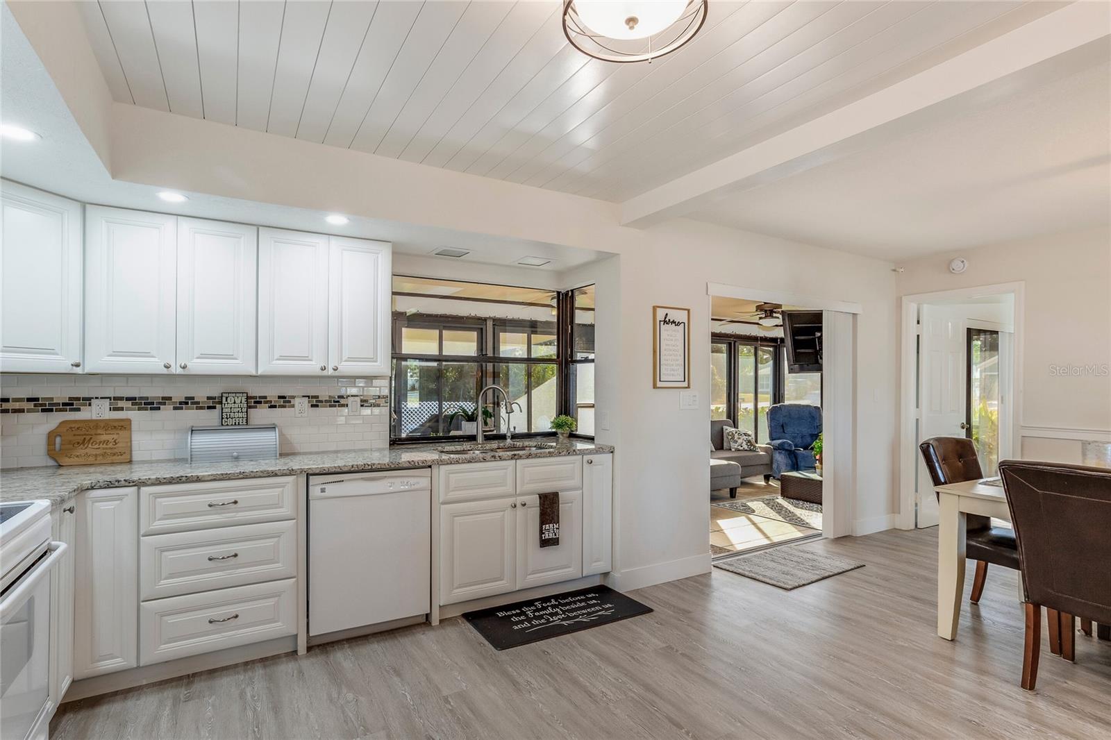 Welcome to your dream home! This beautiful 2-bedroom, 2-bathroom home is a true gem. Step inside to discover a tastefully remodeled kitchen and bathrooms, granite counter top, and breakfast bar for informal eating. The master bedroom has a walk-in closet with extra shelving. The interior and exterior of this home has been freshly painted in neutral colors with new luxury vinyl flooring throughout. Enjoy peace of mind with a 2022 metal roof, providing durability and contemporary style. Updated 80 gal water heater, A/C installed 2020, Impact windows installed in 2020 (excluding sliders), flood the interior with natural light, creating a warm and inviting atmosphere. Sliders take you to large Florida room complete with vinyl windows & screens. This home is located on an oversized corner lot with a 10 x 12 shed with loft for extra storage, patio pavers and boasts a fire pit with room for a future pool making this home ideal for entertaining. The 2 car garage floor has been recently finished with Epoxy. Don’t miss this opportunity to make this your home sweet home!