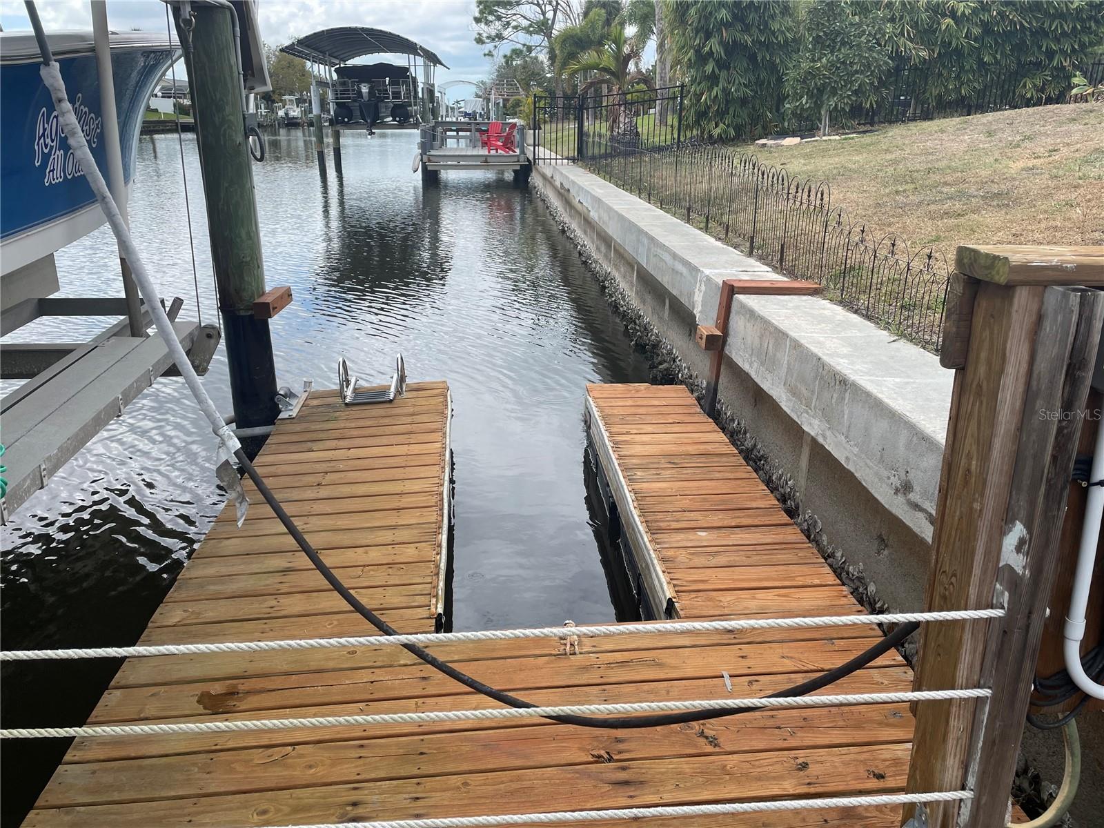 This house has it all! Beautiful 3 bedroom, 2 bath home on canal with quick access to Charlotte Harbor. Updates include: 2020- New metal roof. 2022- Exterior professionally painted. 2023- Hurricane windows installed, pool resurfaced and bench seating added, iron fencing installed and garage floor epoxied. 2024- New A/C unit, new pool cage with unobstructed picture window as well as new gutters, soffits and garage/entryway screening. This home additionally boasts a boat lift, a floating dock for easy kayak launching, and fish cleaning station right at the dock. An open floor plan with 3 skylights allow for plenty of natural light. Some furnishings may be negotiable, making this home perfect as a rental or AirBnB. Showings by appointment to pre-approved buyers. Sliding glass doors open all the way into the wall for large opening into lanai.