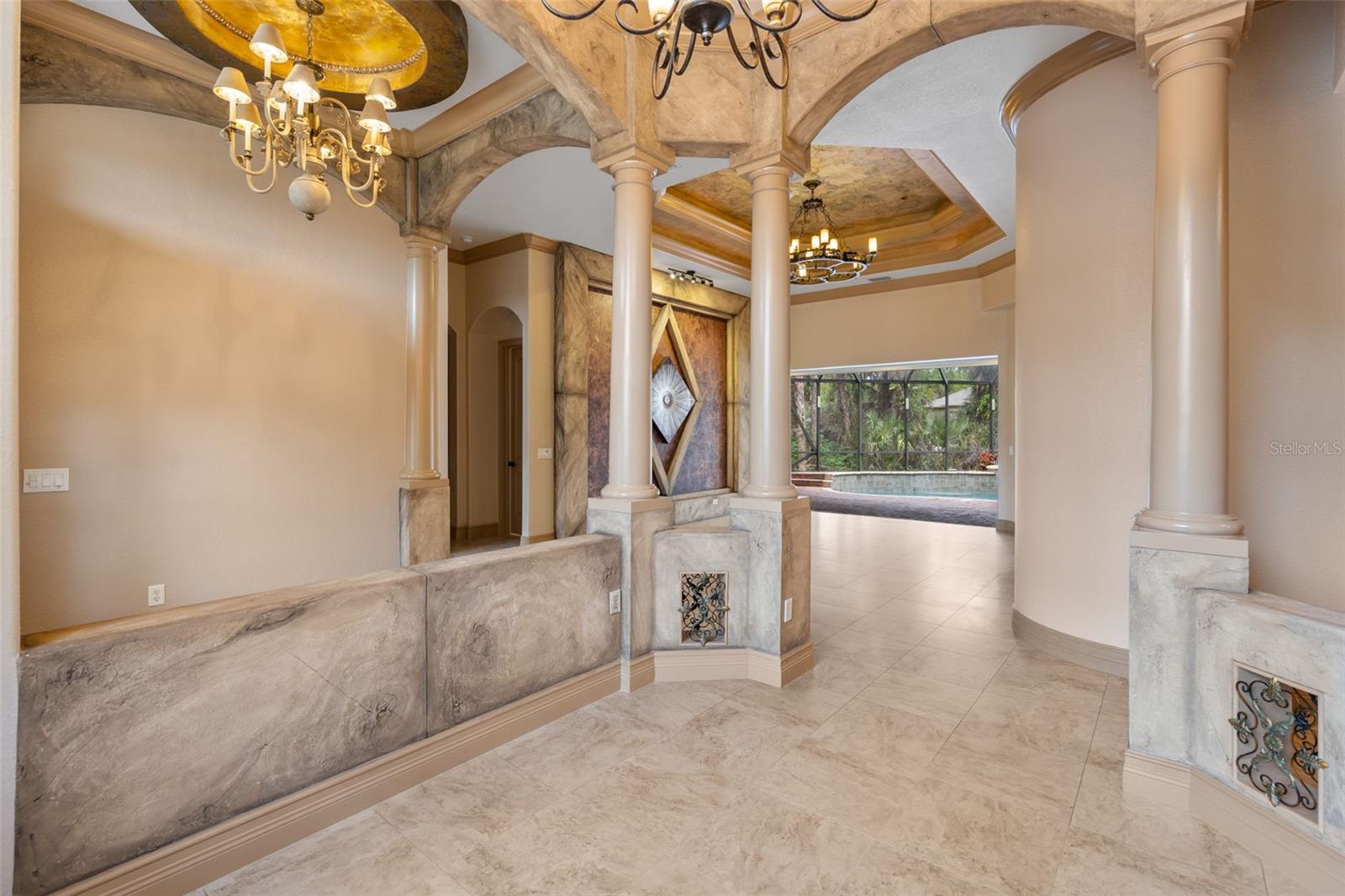 Elegant Mediterranean Estate with Modern Luxury! Experience timeless elegance and modern comfort in this beautifully crafted custom residence offering over 2,800 square feet of refined living space, inspired by the charm of the Mediterranean countryside. From the moment you step inside, you are welcomed by arched architectural details, warm designer tones, unique ceiling designs, tray ceilings with custom lighting, elegant chandeliers, and exquisite custom finishes creating an atmosphere of sophistication and style. Thoughtfully designed for both comfort and privacy, this spacious home features 3–4 bedrooms and 3 full bathrooms, along with separate living and family rooms with a fireplace, ideal for both everyday living and entertaining. The split floor plan provides a private retreat for the primary suite while maintaining an open and inviting flow throughout the home. At the heart of the residence is a gourmet kitchen featuring granite countertops and custom wood cabinetry, combining beauty and functionality. The luxurious primary suite is filled with natural light and includes its own fireplace, creating a warm and relaxing sanctuary. Step outside to your private outdoor oasis, where a sparkling heated pool and covered patio invite you to relax, entertain, and enjoy Florida living year-round. Situated on a rare double lot totaling over half an acre, this property offers exceptional space, privacy, and flexibility. An additional lot across the street is also available for purchase, providing a unique opportunity to create a park-like setting or expand with additional amenities. Located in a quiet and highly desirable neighborhood, this home is just minutes from shopping, dining, and excellent schools, offering the perfect balance of tranquility and convenience. A truly exceptional property where Mediterranean charm meets modern luxury! A detailed list of upgrades and improvements is available in the attached documents.