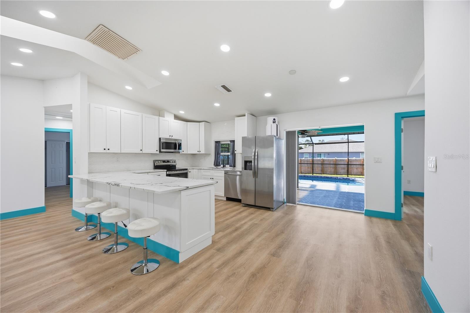 Welcome to this BEAUTIFULLY UPDATED SALTWATER POOL HOME located at 20167 Holland Avenue in Port Charlotte. This charming single-family residence offers 3 bedrooms, 2 bathrooms, and approximately 1,356 square feet of comfortable living space on a SUPER OVERSIZED CORNER LOT of about 0.26 acres. Inside, you’ll find an inviting open floor plan highlighted by vaulted ceilings and skylights that bring in abundant natural light. The ultra modern kitchen features stylish cabinetry, stainless steel appliances, and generous QUARTZ counter space, making it perfect for cooking and entertaining. Recent upgrades include a newer roof installed in 2022, impact windows, updated flooring, fresh interior (LIGHT AND BRIGHT) and exterior paint, and a newer central A/C system. The primary suite offers a beautifully redesigned with the same GORGEOUS QUARTZ AS THE KITCHEN in the bathroom with ample storage. Step outside to enjoy your private screened-in pool area, ideal for relaxing or hosting guests year-round. The covered Lanai with cathedral cage has been updated with electrical for a hot tub in place and remote controlled lighting for the outside to create whatever festive atmosphere you are going for that day. With a two-car garage, city water, no HOA, and a convenient location close to shopping, dining, schools, and everyday amenities, this home offers the perfect blend of comfort, style, and Florida living.