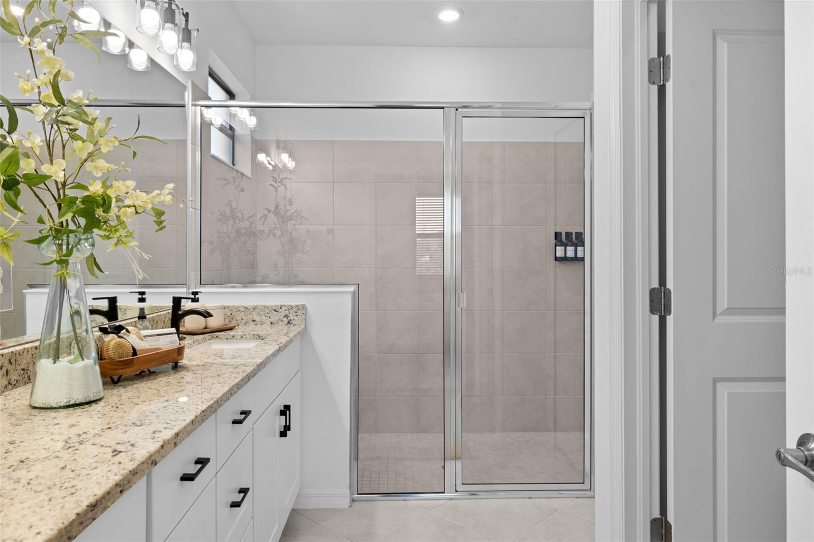 Welcome to a home that blends style, space, and smart upgrades—this 3-bedroom, 3-bathroom residence with 1,862 heated sq ft is nestled in a peaceful, well-maintained community with a private backyard retreat. Step into a thoughtfully designed interior featuring tile flooring throughout, complemented by custom lighting that adds a modern touch to every room. Discover a kitchen that stands out with quartz/granite countertops, upgraded faucets and hardware, a sleek kitchen sink, and a brand-new refrigerator and disposal (2025). The home offers glass shower doors, including in the spacious primary suite, and a triple glass slider that opens to the lanai, creating a seamless indoor-outdoor living experience. Additional features include hurricane shutters, a WiFi-enabled smart garage door, and blinds throughout for added convenience. Enjoy low-maintenance living with an HOA that covers irrigation management, landscaping, lawn trimming, and treatments. Private, polished, and thoughtfully upgraded, this home delivers comfort, style, and everyday ease. Don’t miss your chance—schedule a showing today and make this dream home yours!