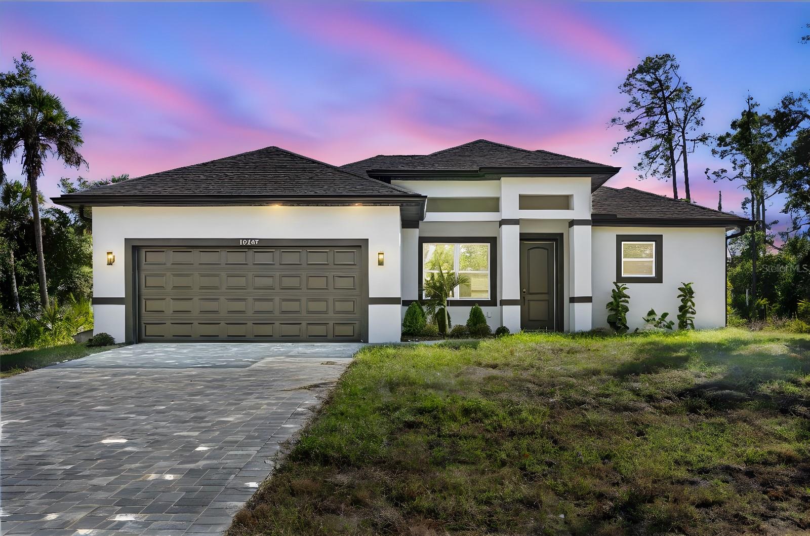 One or more photo(s) has been virtually staged. Design and quality that stand out from the rest. 1% preffered lender credit plus free appraisal, along with a 2-10 Home Buyers Warranty, offering immediate value to the buyer. Modern design meets everyday comfort in this elegant 4-bedroom, 2.5-bath new construction home offering 1,696 sq ft of living space (2,412 total sq ft) with a bright, open-concept layout and contemporary finishes throughout. The kitchen is the centerpiece of the home, featuring a quartz waterfall island with wood accents, sleek cabinetry, and bold modern fixtures, seamlessly connecting to the main living area with an electric fireplace, creating a warm and inviting space. High ceilings and abundant natural light enhance the overall feel, making the home open and airy. The primary suite offers a spa-style bathroom with a freestanding tub, dual sinks, and marble-style tile finishes, delivering a level of design and comfort not commonly found in this price range. Enjoy outdoor living with a covered lanai, along with a paver driveway and a 2-car garage. Additional features include a smart key system and quality finishes throughout. Located with convenient access to shopping, dining, and major roadways. Schedule your showing today.