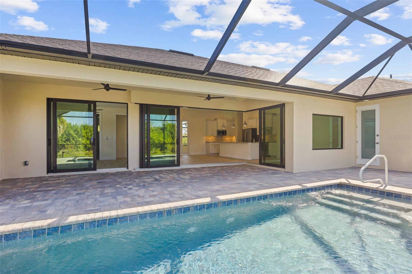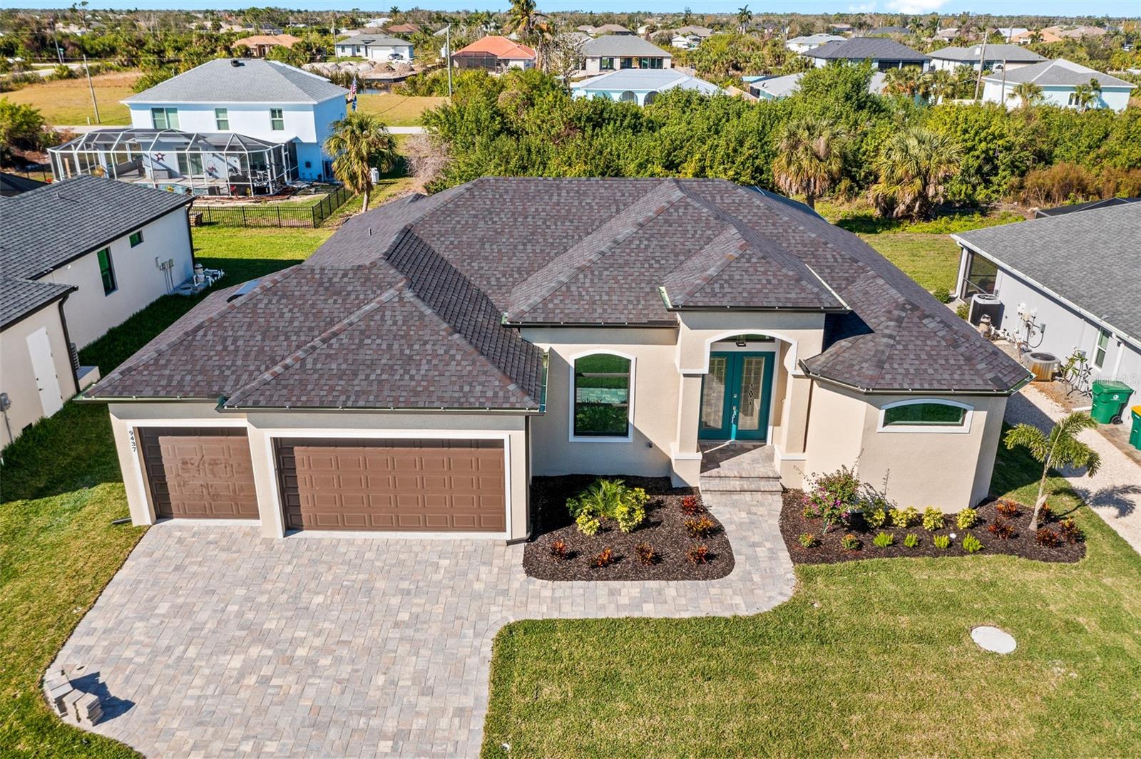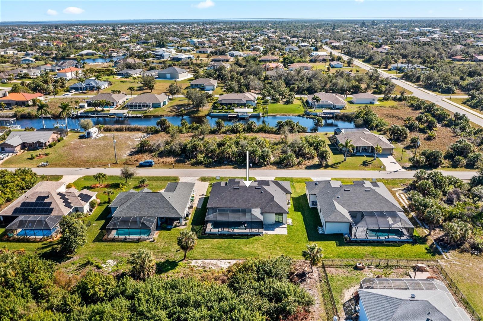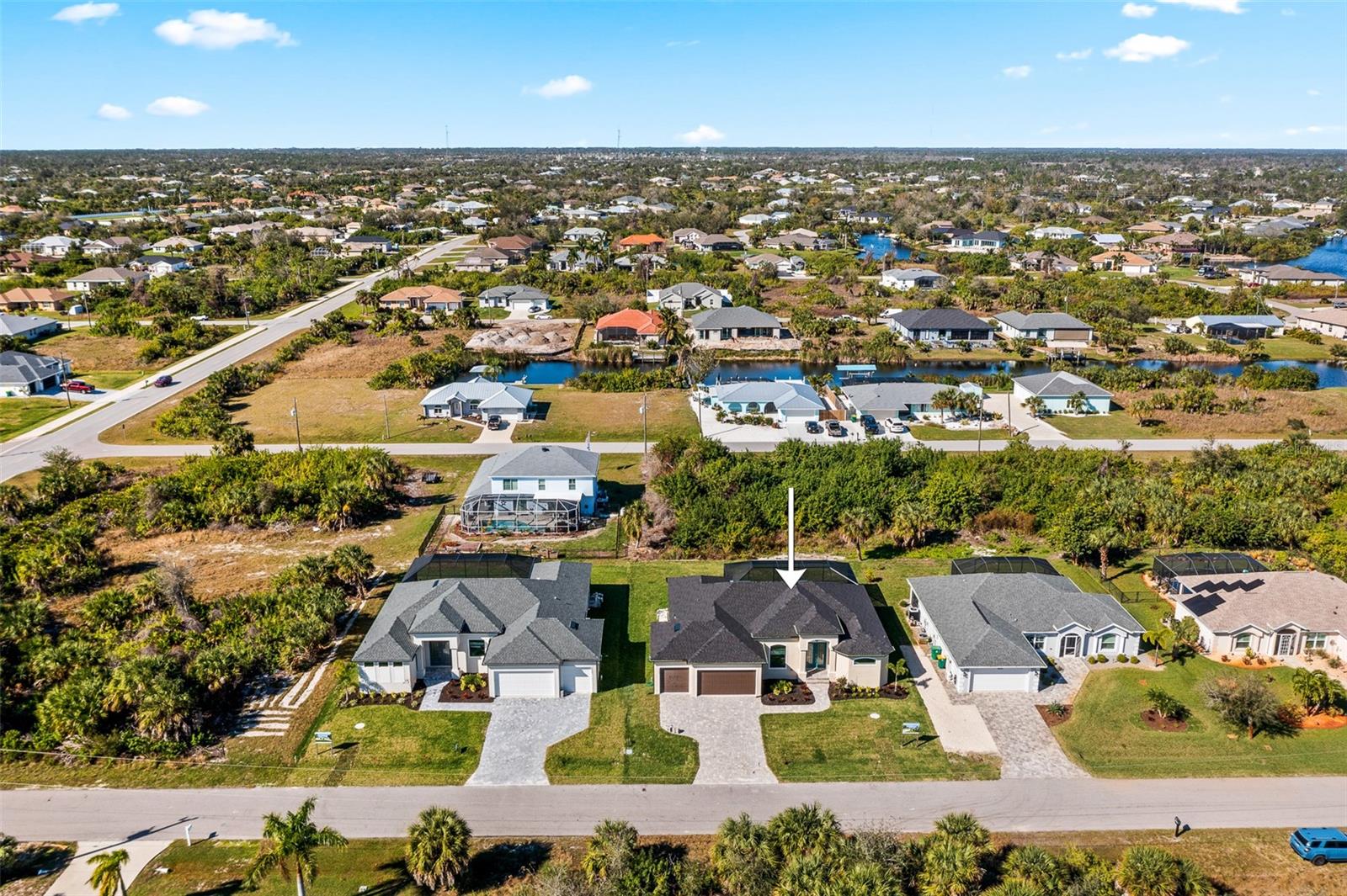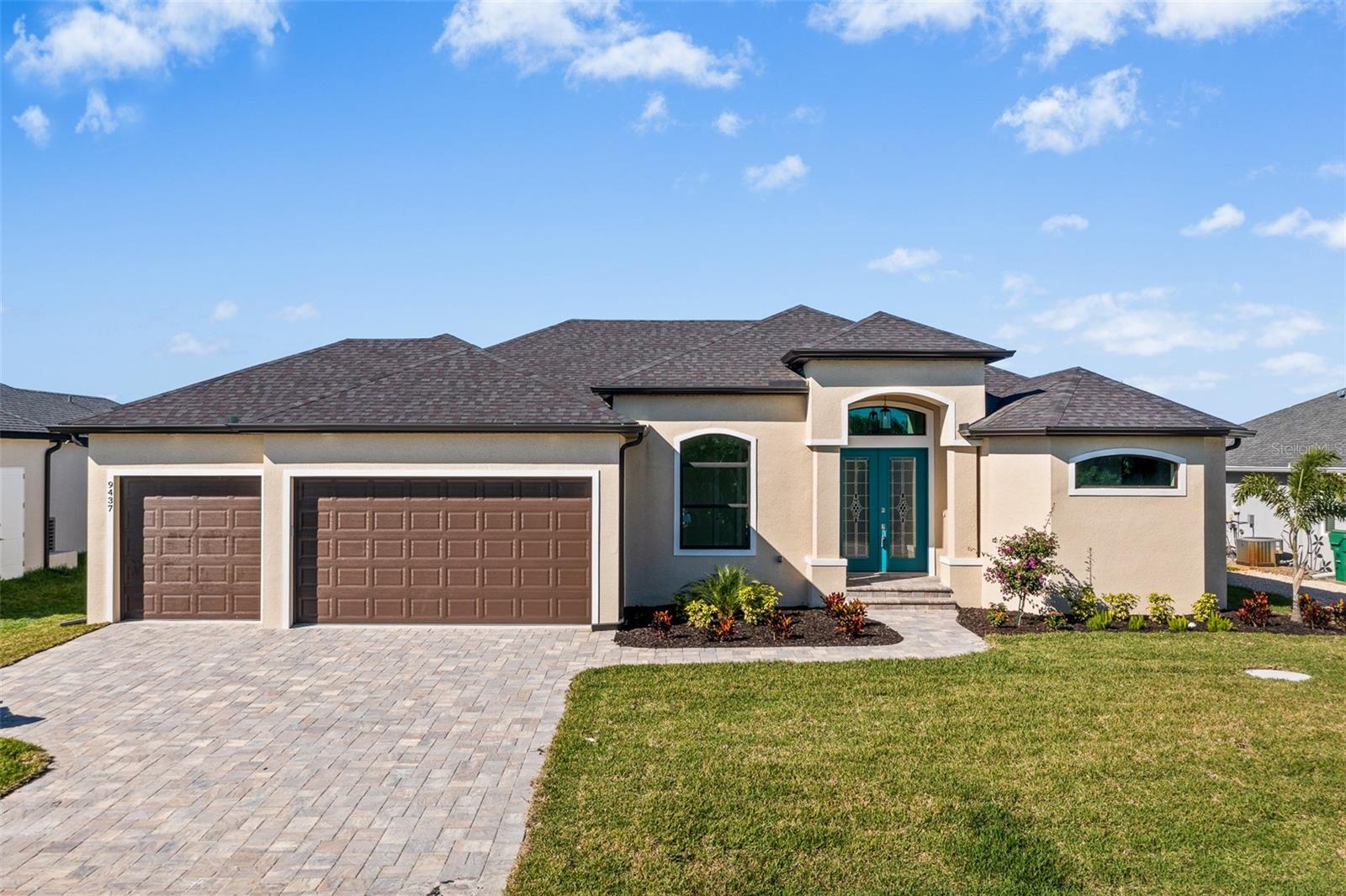 JUST COMPLETED! BRAND NEW, CUSTOM-BUILT 3 BED + DEN, 2 BATH, 3-CAR GARAGE POOL HOME WITH COUNTY WATER AND SEWER! Built by Trade Winds Luxury Homes in the waterfront community of South Gulf Cove. Spacious open floor plan features over 1,900 sf of living area with impeccable attention to detail featuring 11 ft ceilings, contemporary lighting, tray ceilings with crown molding, 8’ tall interior doors, 5-1/4” baseboards, recessed LED lighting, zero-corner slider, tile flooring throughout plus much more. Well-appointed kitchen offers granite countertops, tile backsplash, Wellborn cabinets with under cabinet lighting & soft close drawers, large center island with breakfast bar plus dining area with large picture window. Generous master suite is featured with split vanities and walk-thru roman shower in private ensuite. Split bedroom plan provides plenty of privacy for guests and separate den with French doors makes a great office space. Outdoor entertaining area features covered lanai, screened saltwater pool with water feature, roughed in summer kitchen and true western exposure to enjoy amazing sunsets. Special features include PGT impact rated Low-E windows and sliding glass doors, paver driveway, walkway, entry and lanai, Floritam sod, extra landscaping, generator hookup, Trade Winds 1 year warranty plus much more! South Gulf Cove community offers voluntary HOA with clubhouse for special events, four parks nearby including South Gulf Cove Park and Boat Ramp and close to fine dining, shopping, parks, numerous golf courses, boating, and a short drive to Boca Grande and Don Pedro Island beaches. Don’t miss this opportunity!
