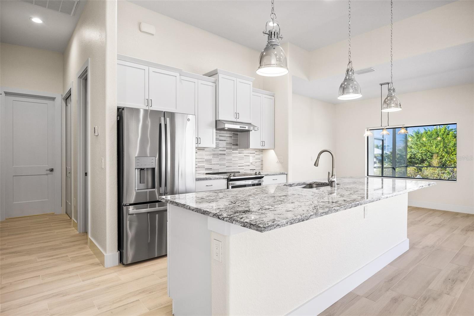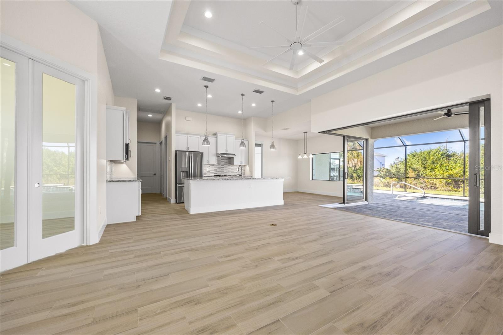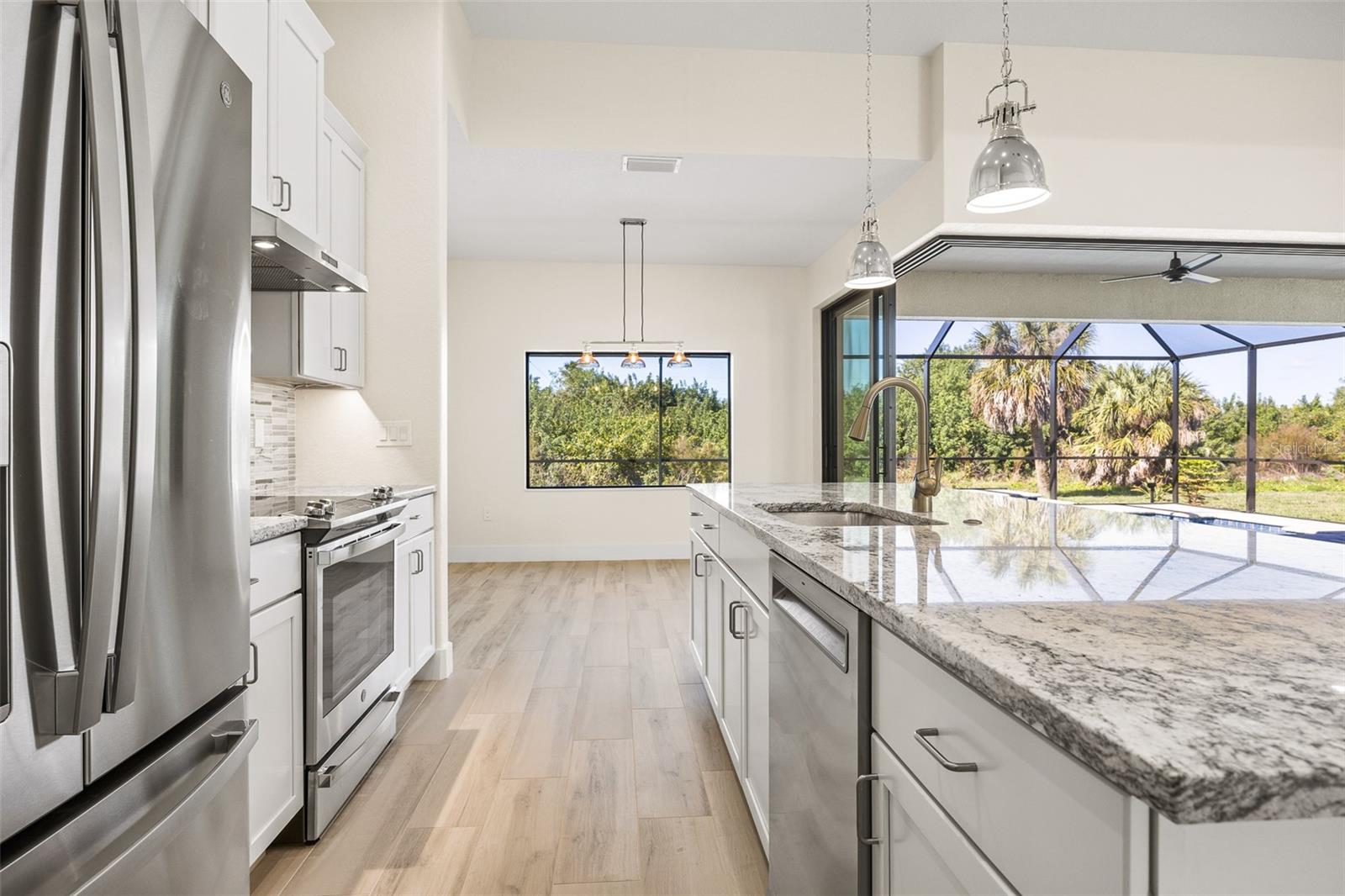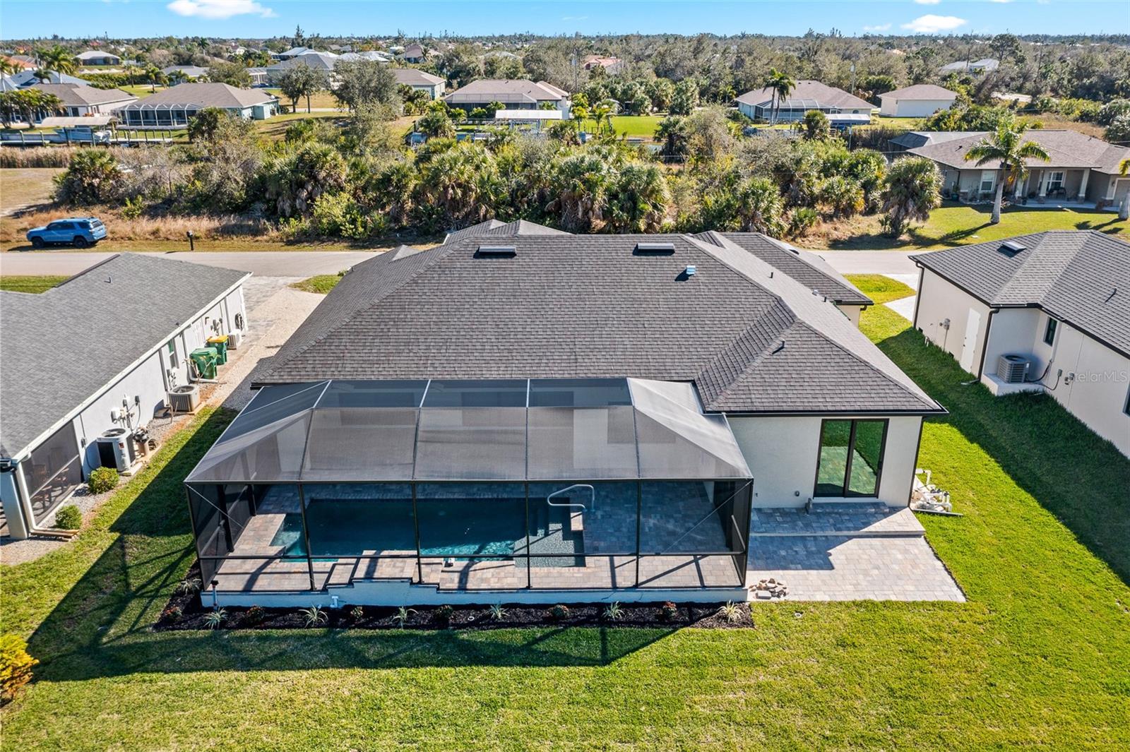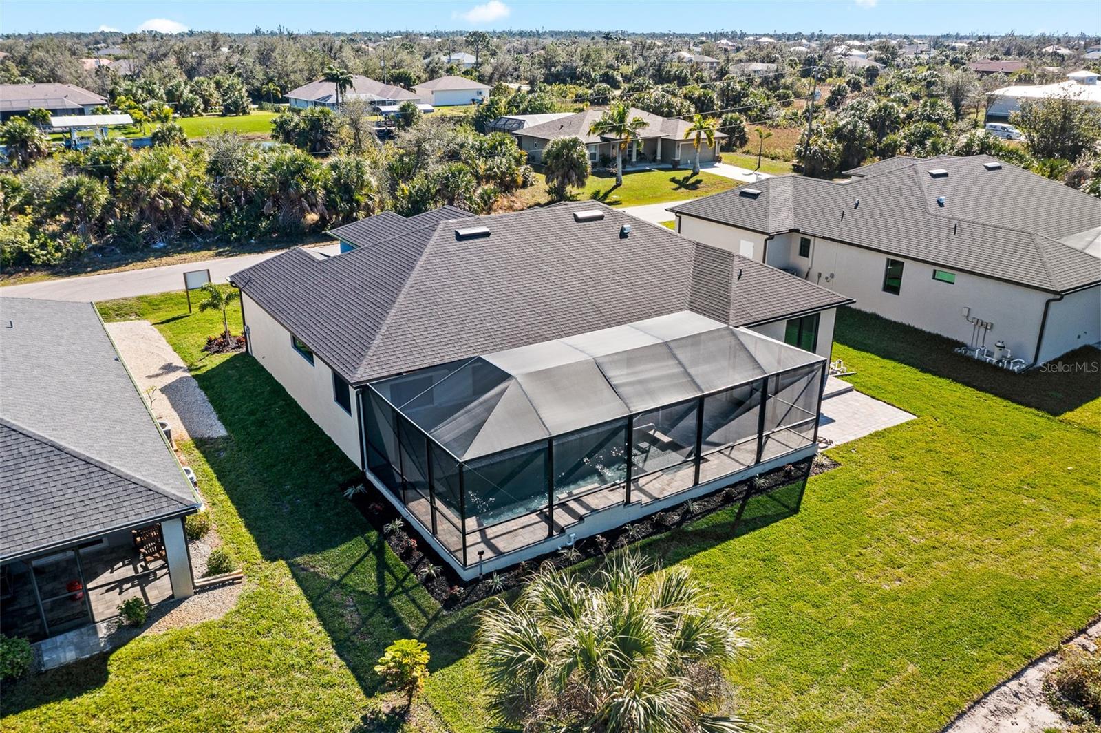 JUST COMPLETED! BRAND NEW, CUSTOM-BUILT 3 BED + DEN, 2 BATH, 3-CAR GARAGE POOL HOME WITH COUNTY WATER AND SEWER! Built by Trade Winds Luxury Homes in the waterfront community of South Gulf Cove. Spacious open floor plan features over 1,900 sf of living area with impeccable attention to detail featuring 11 ft ceilings, contemporary lighting, tray ceilings with crown molding, 8’ tall interior doors, 5-1/4” baseboards, recessed LED lighting, zero-corner slider, tile flooring throughout plus much more. Well-appointed kitchen offers granite countertops, tile backsplash, Wellborn cabinets with under cabinet lighting & soft close drawers, large center island with breakfast bar plus dining area with large picture window. Generous master suite is featured with split vanities and walk-thru roman shower in private ensuite. Split bedroom plan provides plenty of privacy for guests and separate den with French doors makes a great office space. Outdoor entertaining area features covered lanai, screened saltwater pool with water feature, roughed in summer kitchen and true western exposure to enjoy amazing sunsets. Special features include PGT impact rated Low-E windows and sliding glass doors, paver driveway, walkway, entry and lanai, Floritam sod, extra landscaping, generator hookup, Trade Winds 1 year warranty plus much more! South Gulf Cove community offers voluntary HOA with clubhouse for special events, four parks nearby including South Gulf Cove Park and Boat Ramp and close to fine dining, shopping, parks, numerous golf courses, boating, and a short drive to Boca Grande and Don Pedro Island beaches. Don’t miss this opportunity!