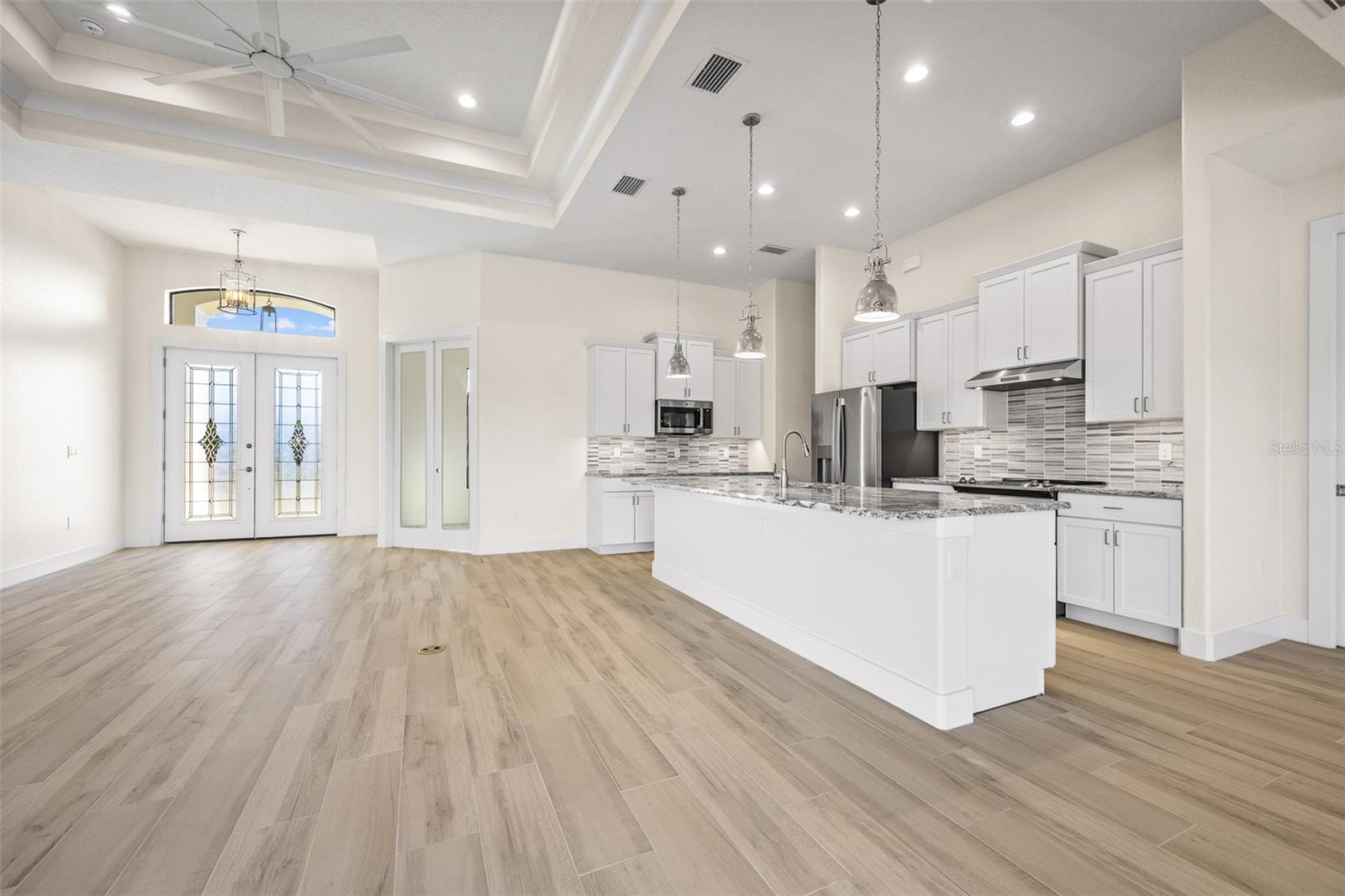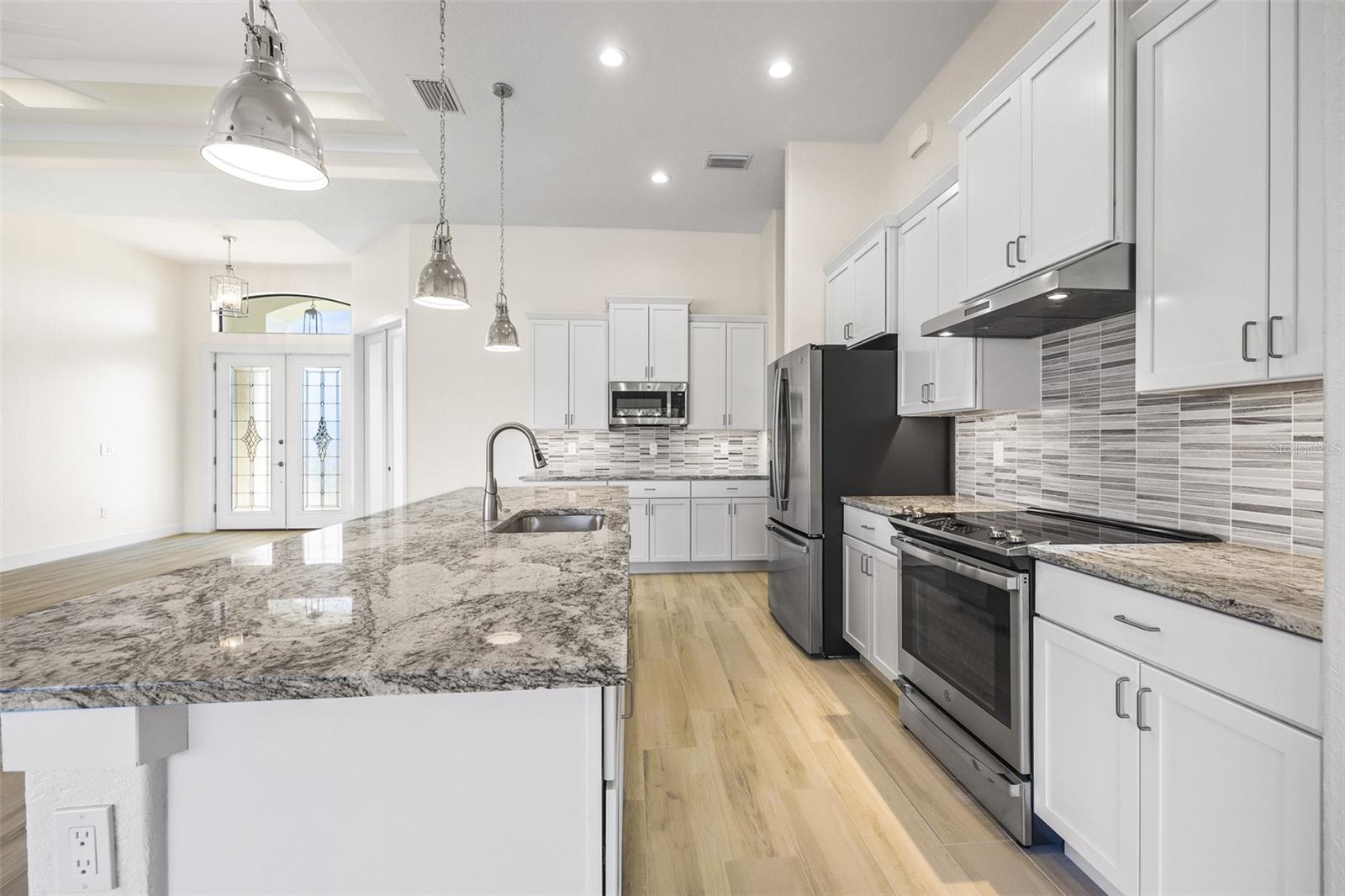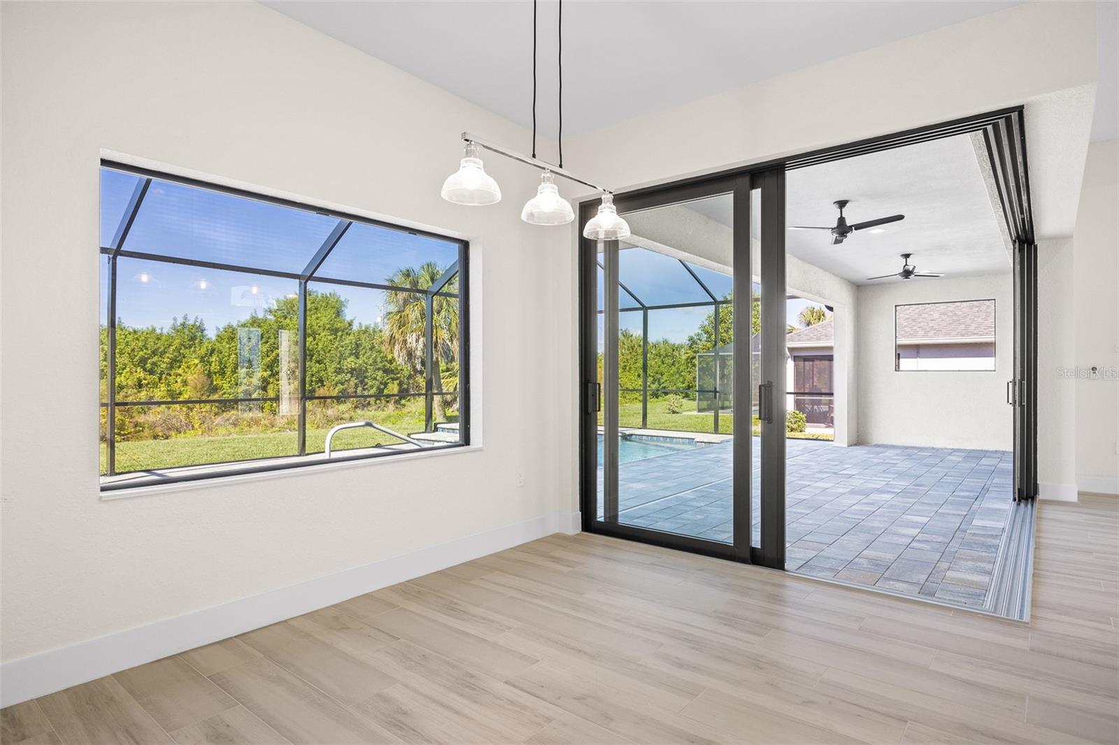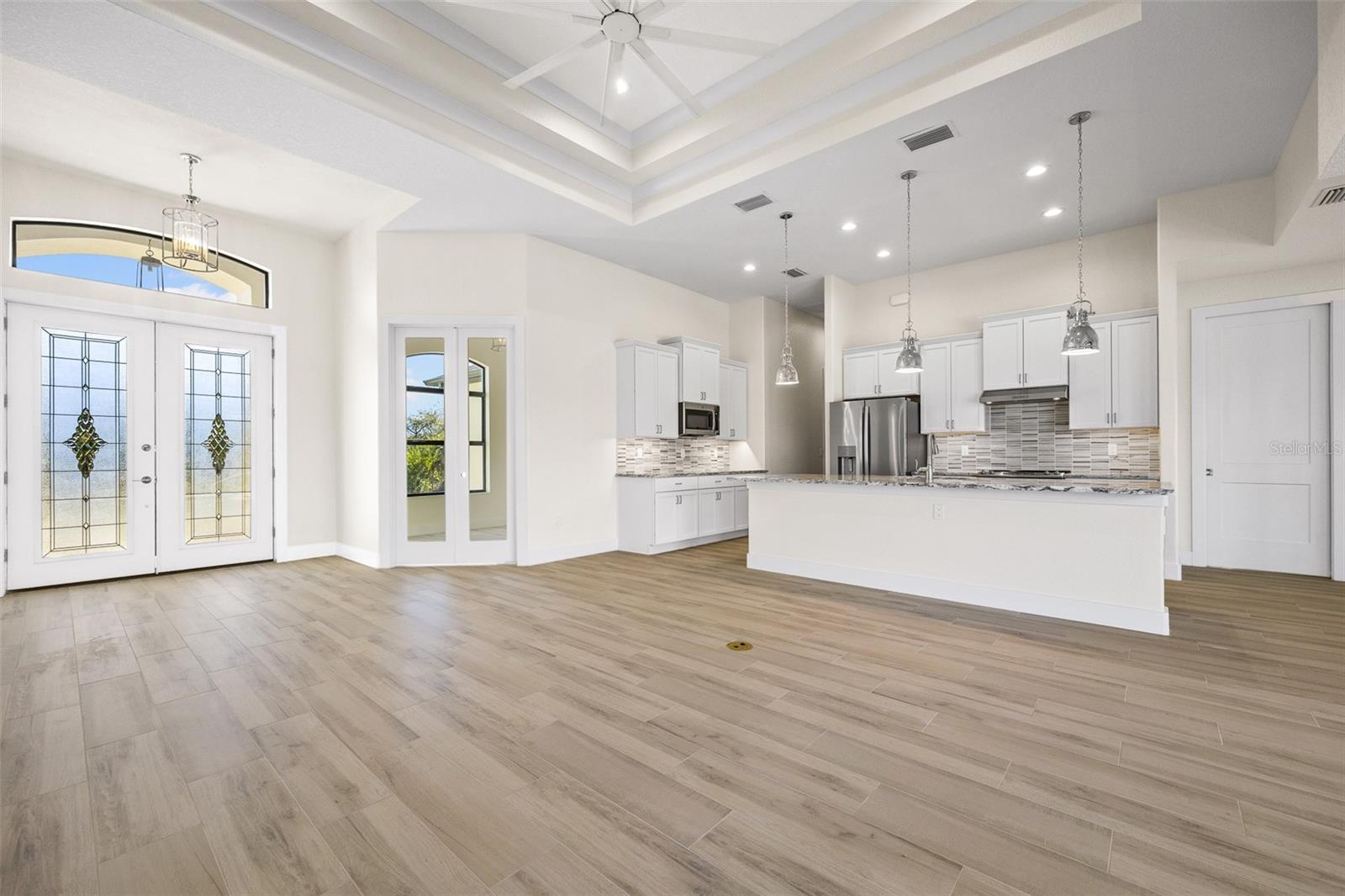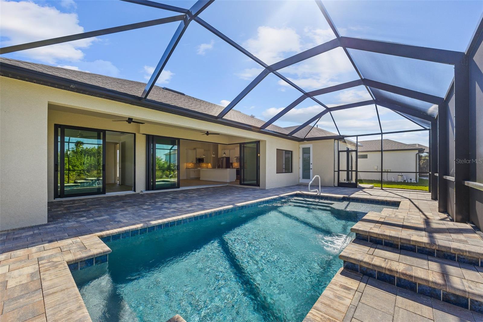 JUST COMPLETED! BRAND NEW, CUSTOM-BUILT 3 BED + DEN, 2 BATH, 3-CAR GARAGE POOL HOME WITH COUNTY WATER AND SEWER! Built by Trade Winds Luxury Homes in the waterfront community of South Gulf Cove. Spacious open floor plan features over 1,900 sf of living area with impeccable attention to detail featuring 11 ft ceilings, contemporary lighting, tray ceilings with crown molding, 8’ tall interior doors, 5-1/4” baseboards, recessed LED lighting, zero-corner slider, tile flooring throughout plus much more. Well-appointed kitchen offers granite countertops, tile backsplash, Wellborn cabinets with under cabinet lighting & soft close drawers, large center island with breakfast bar plus dining area with large picture window. Generous master suite is featured with split vanities and walk-thru roman shower in private ensuite. Split bedroom plan provides plenty of privacy for guests and separate den with French doors makes a great office space. Outdoor entertaining area features covered lanai, screened saltwater pool with water feature, roughed in summer kitchen and true western exposure to enjoy amazing sunsets. Special features include PGT impact rated Low-E windows and sliding glass doors, paver driveway, walkway, entry and lanai, Floritam sod, extra landscaping, generator hookup, Trade Winds 1 year warranty plus much more! South Gulf Cove community offers voluntary HOA with clubhouse for special events, four parks nearby including South Gulf Cove Park and Boat Ramp and close to fine dining, shopping, parks, numerous golf courses, boating, and a short drive to Boca Grande and Don Pedro Island beaches. Don’t miss this opportunity!