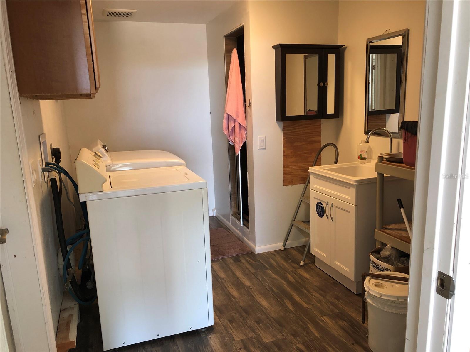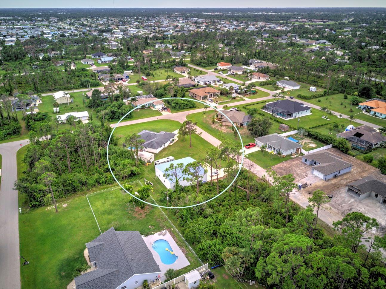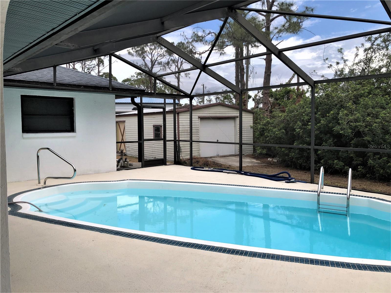 JUST REDUCED. 3 LOTS!! Large 3 bedroom/2 bath pool home on 2 lots. AND it gets better. On the third lot is a 2496 square foot 3 car garage/man cave for a total of 5 PARKING SPACES!!! The home features cathedral ceilings in the living room & family room which create an even larger feeling. Sliding glass doors in the dining room, master bedroom and family room all pocket back to open to the large lanai area. A pass thru window in the kitchen is perfect for when you are dining or having a cocktail in the lanai, where you can stay cool in your salt water pool. There is a pantry/closet convenient to the kitchen area for extra storage. Walk in closets in all bedrooms. Bedrooms #2 & 3 have new carpeting. Newer A/C. The large 3 car garage/man cave (10x8, 10x12 & 10x8 roll up doors), set on a concrete pad, is insulated and fully air conditioned, with a 5 ton unit. There is a small efficiency apartment in the back with a 2 ton a/c, small kitchen with a range, microwave, dishwasher and refrigerator. In the apartment bath, is a walk in shower as well as a washer & dryer. Gulf Cove is a waterfront community on the Myakka River. Optional HOA for a nominal yearly fee gives you access to Gulf Cove Park and Boat Ramp. Gulf Cove is located between Port Charlotte & Englewood making shopping, dining, the beaches and golfing just a short trip away.