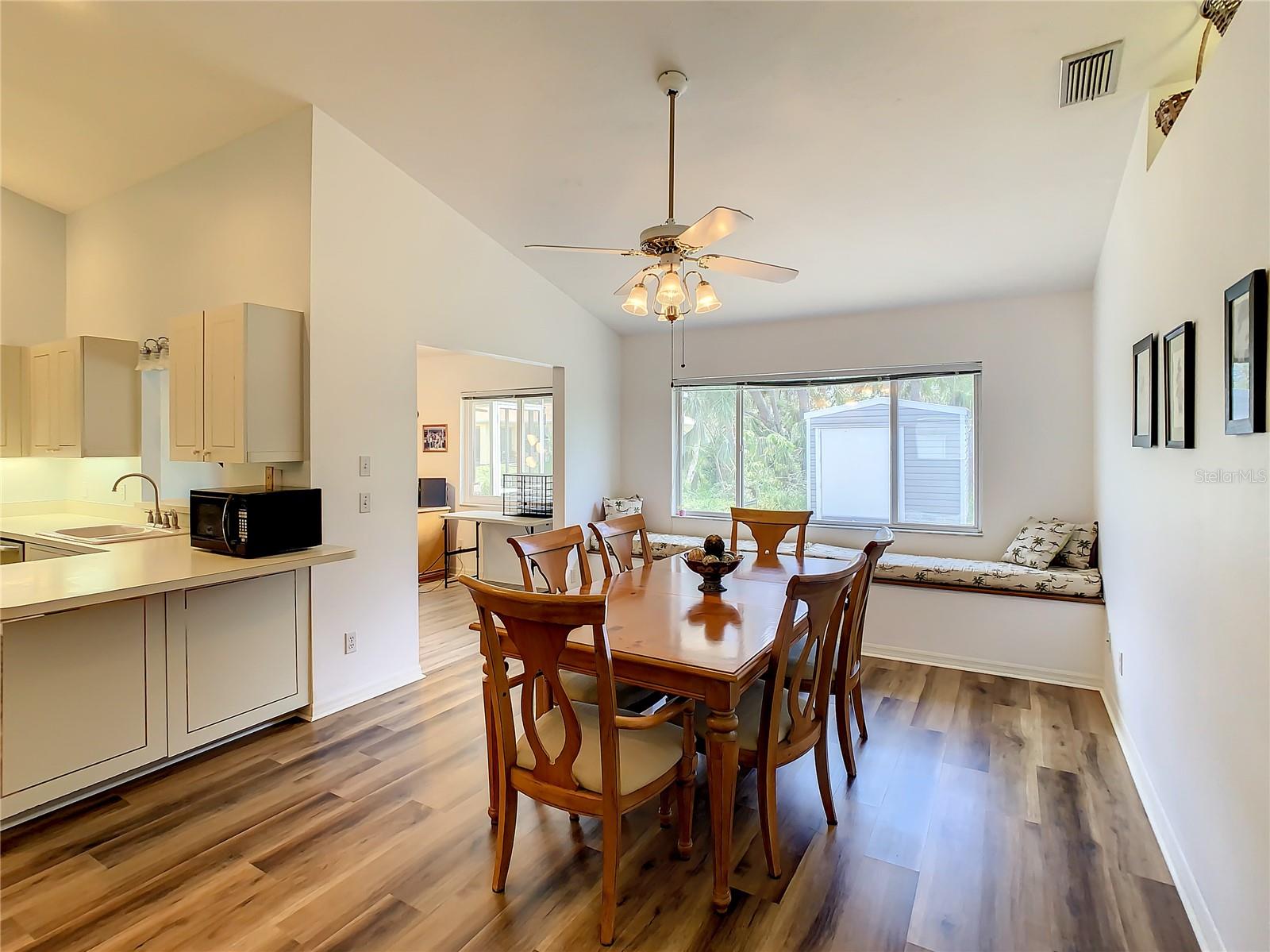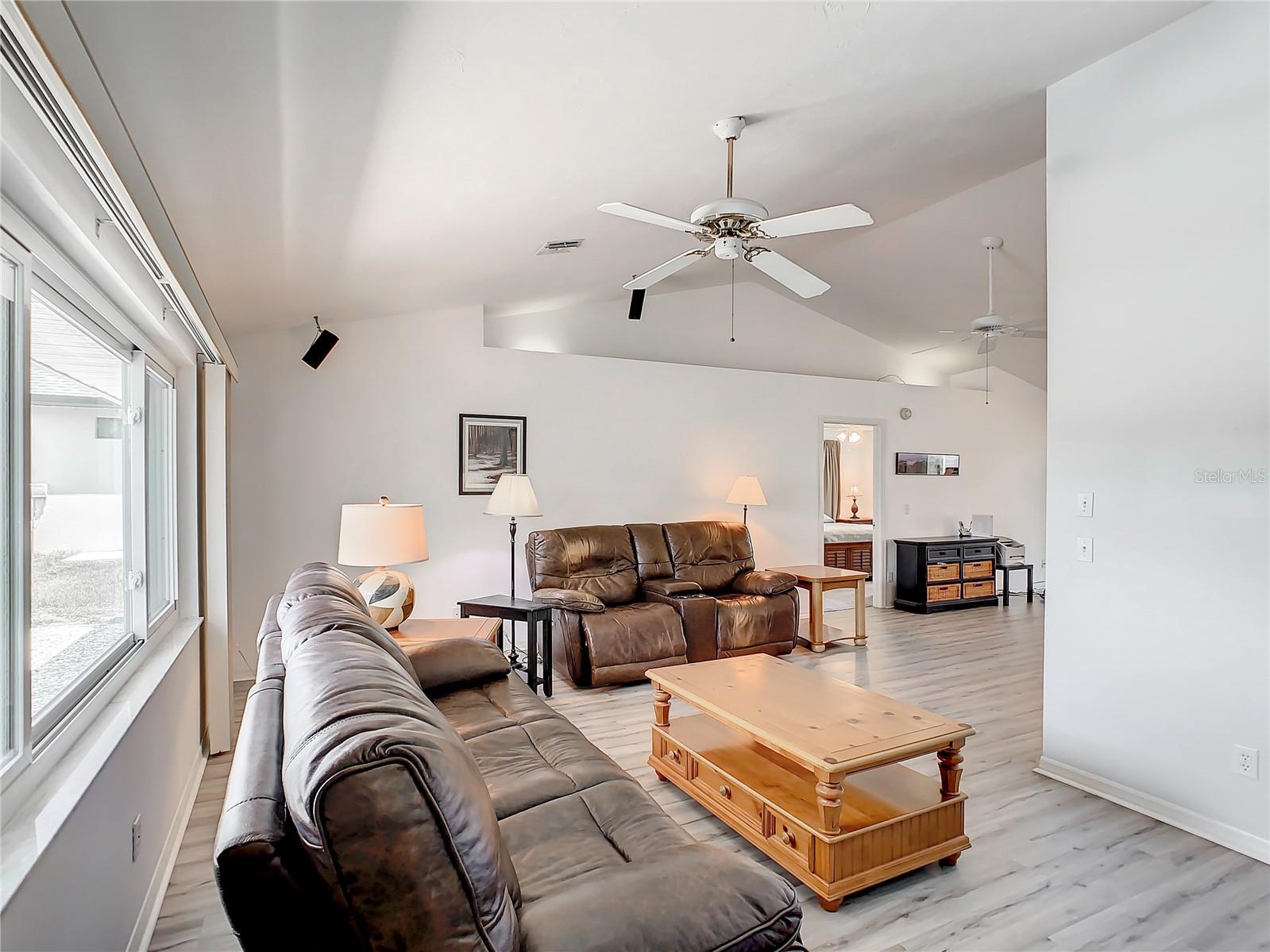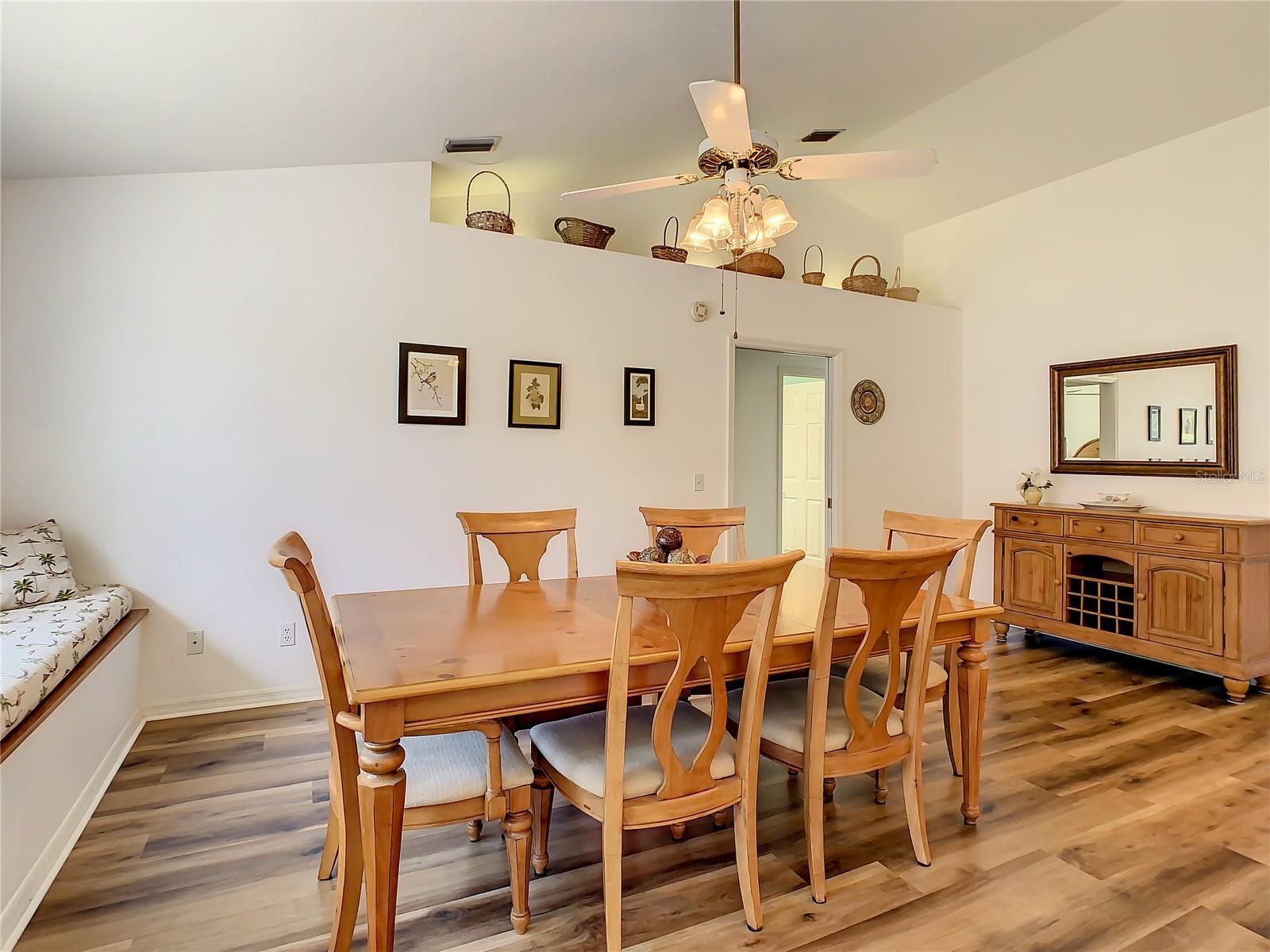 BUYER FINANCING FELL THROUGH ~ Back on market! ALREADY APPRAISED ABOVE ASKING PRICE!! LOCATION, LOCATION, LOCATION! Looking for the perfect FAMILY home that is SPACIOUS, IMMACULATE, MOVE-IN READY, has CITY WATER & NOT IN A FLOOD ZONE? Look NO MORE!! At over 2,000 square feet, this 3-Bedroom, 2-Bathroom CUSTOM-BUILT home will not disappoint. Walk into this amazing home and arrive in the Large, OPEN LIVING AREA showcasing the high Cathedral Ceilings and 3 large picture windows (IMPACT). You will notice the Custom Builder touches with 9-Ft. Sliders, Track Lighting, Lit Plant Shelves, 3 1/4" Baseboards, Window Seats in Dining Room, Serving Ledge in Kitchen, Large Laundry Room and many others! The MASSIVE dining room is an added bonus for warm gatherings with friends or family. This is where memories are made! The beautiful Wooden Dining Table (seats 6 and has an extra leaf to extend even bigger) and matching Hutch convey with the property, as well. There are many upgrades to consider: NEW ROOF DECEMBER 2022, NEW AC 2019 & ALL NEW STAINLESSS APPLIANCES! There is beautiful newer LUXURY VINYL PLANK FLOORING throughout most of the home. ALSO: NEWLY REMODELED MASTER BATH & GUEST BATH!! Looking for PRIVACY for guests or family members? The “Guest Wing” is separated by a pocket sliding door making your very own “Private Suite” section. The large Master Bedroom boasts 2 Walk-In closets and his & her vanity/sink in bathroom. The shower has a bench for convenience and a built-in heat circulating pump! The Kitchen has a WALK-IN PANTRY and PLENTY of STORAGE. The water heater is gas fueled for energy efficiency (electric wired also) and the stove is electric, but can convert to gas if desired. There is plenty of room in the immense backyard and the SPACIOUS LANAI measuring 16 x 15! Be prepared for Florida weather with the GENERATOR that also conveys. This house has it ALL and just MINUTES to Cocoplum Shopping, Walmart, Home Depot, Medical Facilities, Restaurants, NEW Wellen Park Plaza, and many, many more amenities! Have a FISHERMAN or BEACH LOVER in the family? This home is also centrally located JUST 30 MINUTES to either VENICE BEACH or MANASOTA KEY BEACH!! Don’t miss out! Come view today!