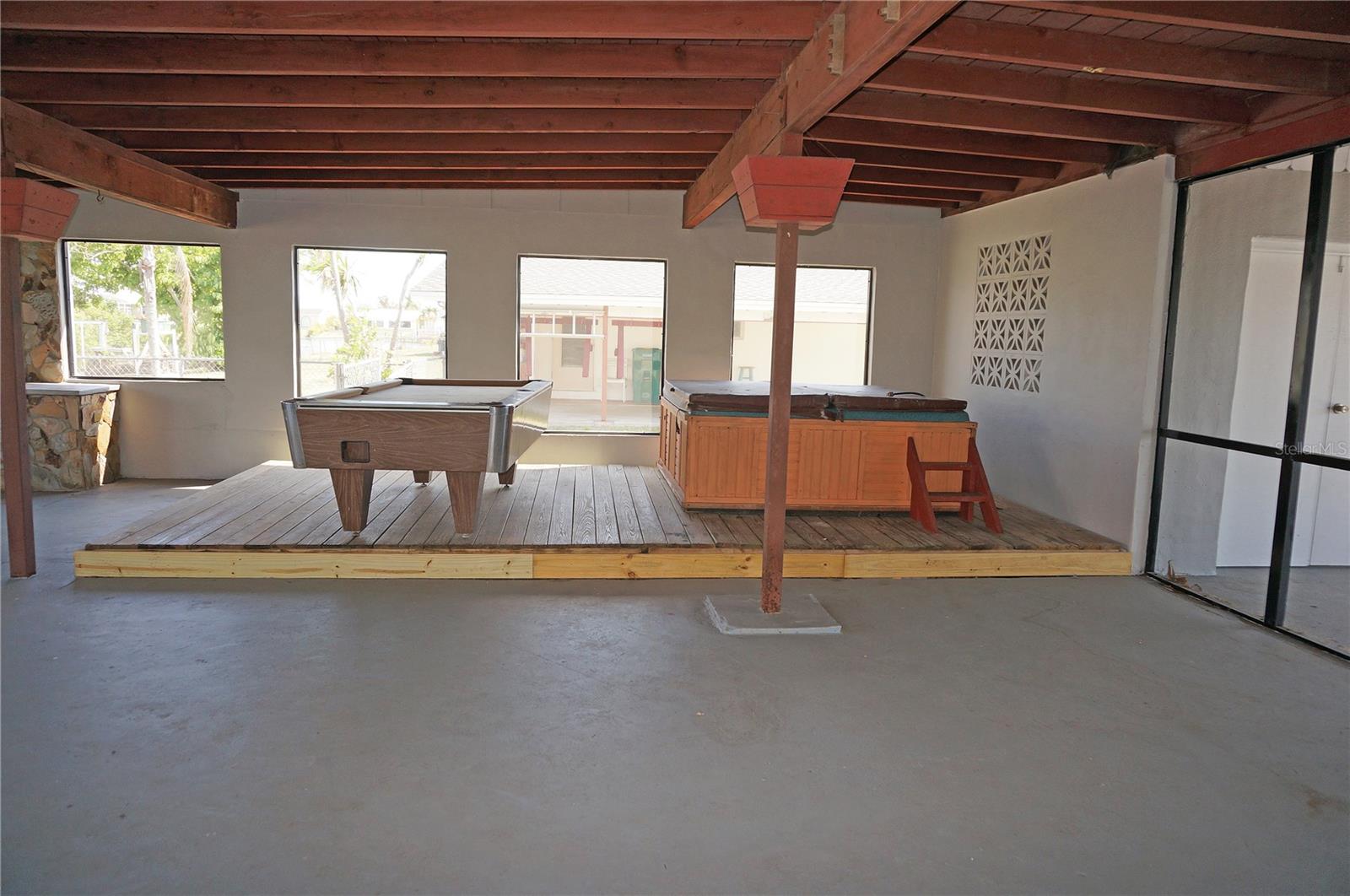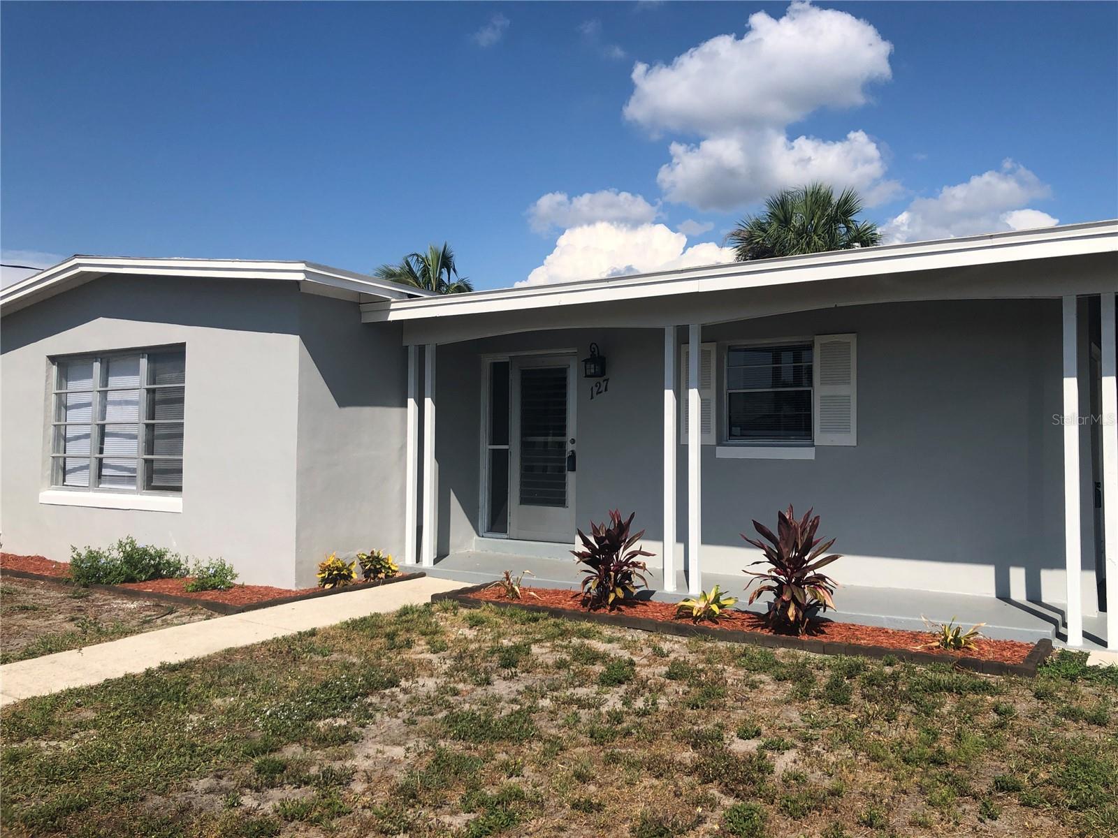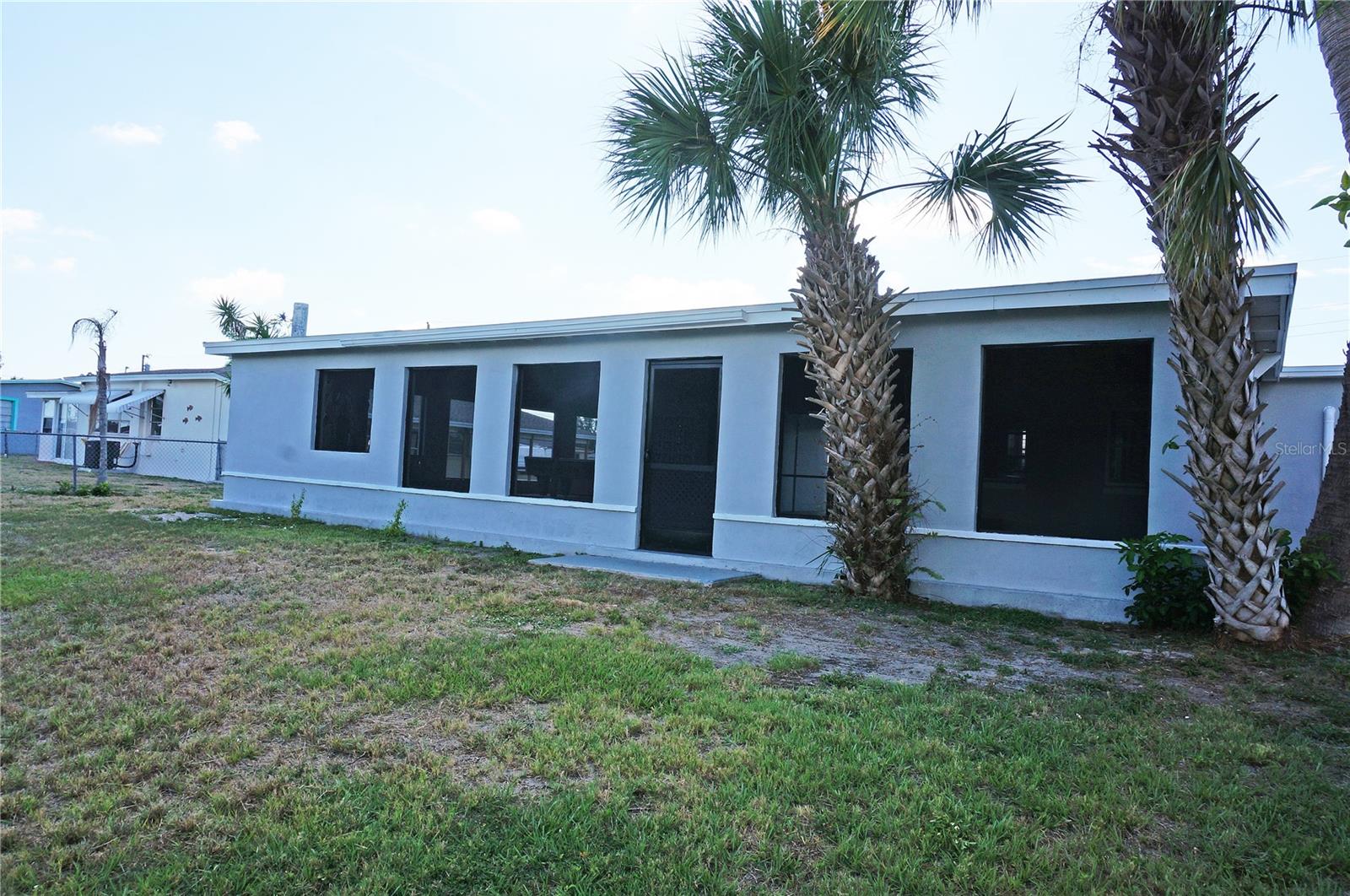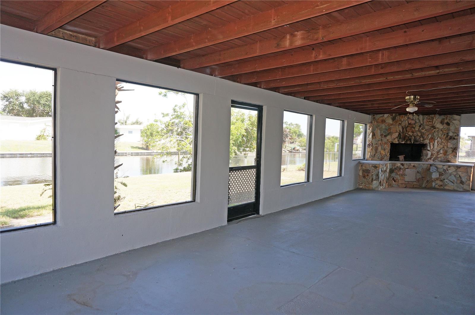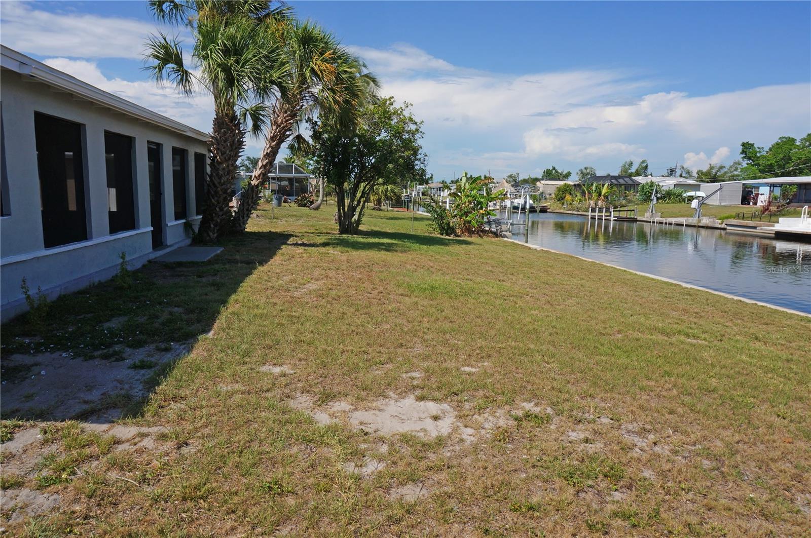 Delightful 2 Bedroom, 1 Bathroom WATERFRONT home with enclosed and screened Lanai in the rear of the home which is just under 1400 SF. Located on a quiet street with sidewalks in Port Charlotte yet only minutes to all amenities. NO HOA. ****BRAND NEW ROOF JULY 2023 **** Don't let the age fool you because this home has been nicely remodeled and is move in ready. Tile flooring throughout and newly painted neutral grey wall colors. There is a Living Room, Dining Room, well equipped Kitchen. The Kitchen has nice cabinetry, stainless refrigerator, microwave and oven range. The bedrooms are generous sized, one with built in shelves and both have double closets. The bathroom has a tub/shower combo. The home is cooled AND heated by 3 brand new Mini split systems. Your living space extends via sliding glass doors to the LANAI which is almost 1400 SF. This lanai is the largest lanai I have seen in Charlotte County! The Lanai is roofed and enclosed, has wood ceiling with beams, numerous screened openings, a large stone wood burning fireplace, pool table and hot tub. The possibilities with this lanai are endless and sure to fit your needs. Enjoy as is or turn part of this space into another bedroom. Continue through the spacious backyard to the waterfront with 83 foot concrete seawall. Good fishing on this saltwater canal which leads to Charlotte Harbor (only one bridge) and out to the Gulf of Mexico. The CARPORT area has a laundry room as well as a 15x10 storage room. Utilities are public water and sewer. This home is minutes from shopping, dining, medical care, Charlotte Sports Park and Port Charlotte Beach Complex. The Port Charlotte Beach Complex offers a fishing pier, boat ramp, canoe/kayak launch, horseshoe pits, bocce courts, basketball courts, tennis courts, volleyball court, playground area, small shelters with a picnic table, two large pavilions, restrooms, heated swimming pool, and a recreation center. The center offers over 6,000 square feet of indoor rental space, a large kitchen, and a beautiful outdoor deck overlooking the beach and harbor. This home and location are what the Florida lifestyle is all about!