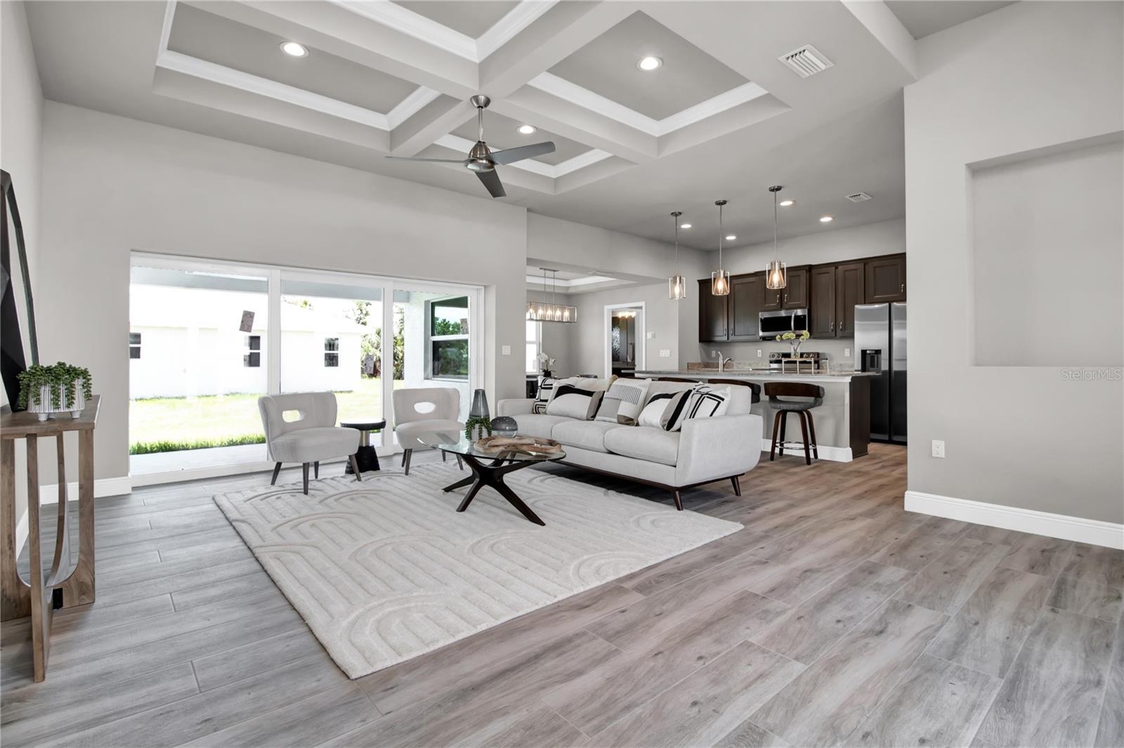 Under Construction. Welcome to this stunning nearly finished home located in the beautiful Port Charlotte neighborhood. This modern and stylish residence offers 3 bedrooms, 2 bathrooms, and an array of desirable features that make it a perfect choice for comfortable living. With a completion time frame for early 2024, this home presents an incredible opportunity to become the proud owner of a brand-new property. As you step into this thoughtfully designed home, you'll be greeted by an inviting ambiance and a well-planned layout. The spacious kitchen boasts elegant granite countertops and ample space for culinary creations. The bathrooms also feature the same luxurious granite countertops, elevating the overall aesthetic of the home. Coffered step ceilings with recessed can lights adds a great extra detail. The master bedroom is a true sanctuary, complete with an ensuite bathroom for your privacy and convenience. With its own dedicated space, the master bathroom offers a tranquil retreat to unwind after a long day. The additional two bedrooms are generously sized, perfect for accommodating family, guests, or transforming into a home office or hobby room. The appeal of this home extends to its exterior, with a large lanai that offers a wonderful space to relax and enjoy the Florida weather. Whether you're sipping your morning coffee or hosting gatherings with friends and family, the lanai provides the perfect setting for outdoor entertainment and leisure. The house has impact windows including the sliding door. The outside lanai is ready for the outdoor kitchen addition. This exceptional property is currently under construction and scheduled to be completed for early 2024. Port Charlotte is a highly sought-after area known for its natural beauty, proximity to stunning beaches, and a wide range of recreational activities. Take advantage of the numerous parks, golf courses, and waterfront attractions available in the vicinity. Don't miss the opportunity to make this under construction home your own. Contact us today to learn more about this remarkable home. Note: Photos are for illustrative purposes only and may not depict the exact property. Completion date and features are subject to change. Contact Realtor for other available homes by the builder in the area.