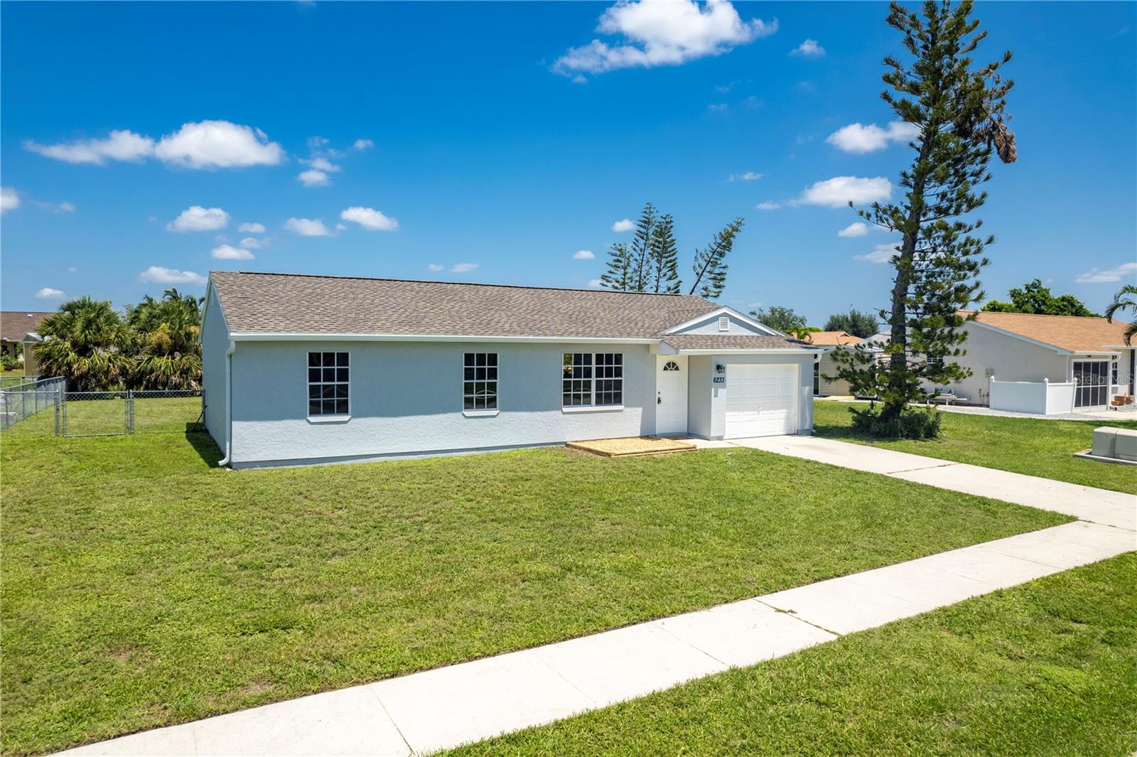 One or more photo(s) has been virtually staged.No damage from Milton. Nestled in a welcoming community, this charming 3-bedroom, 2-bathroom home is ready to impress. A brand-new roof installed in July 2023 offers peace of mind, while the thoughtful updates throughout ensure a modern living experience. Step inside to discover fresh paint that breathes new life into every room. The kitchen boasts an array of brand-new appliances, including a refrigerator, dishwasher, stove, and microwave. Imagine preparing meals in a space adorned with new cabinets, elegant granite countertops, and pristine sinks, both in the kitchen and the bathrooms. Enjoy the seamless flow of tile flooring throughout the living room, dining room, kitchen, and both bathrooms. The 3 bedrooms are graced with new laminate flooring, creating a cozy and stylish retreat for each family member. Natural light floods the kitchen, which features a generously sized window above the sink, offering a delightful view of the expansive fenced-in backyard. Imagine sipping your morning coffee while watching the changing seasons from the heart of your home. Stay in control of your home's climate with a new thermostat that ensures comfort with every season. This community has something for everyone. Take advantage of the fantastic amenities, including two refreshing pools, a welcoming clubhouse, and a range of activities such as bocce, pickleball, basketball, shuffleboard, and tennis. If fitness is your passion, the private gym awaits. Sidewalks on both sides of the street add an element of convenience and safety, providing the perfect setting for leisurely strolls and neighborly chats. With a neighborhood designed for community and connection, you'll feel right at home. And there's more! This home is just a few minutes away from the stunning Gulf beaches, allowing you to enjoy sunsets and beach vibes whenever you desire. Additionally, if you're a golf enthusiast, you'll love being surrounded by 5 elite golf courses that give the perfect escape for a leisurely round. In summary, this 3-bedroom, 2-bathroom gem gives you not only a fresh and modern aesthetic but also a lifestyle brimming with amenities, convenient comfort features, and leisure opportunities. Don't miss out on the chance to make this house your home. This home had a inspection from Elite Pest control 8/16/2024 , NO termites, home is being treated for exterior ants .