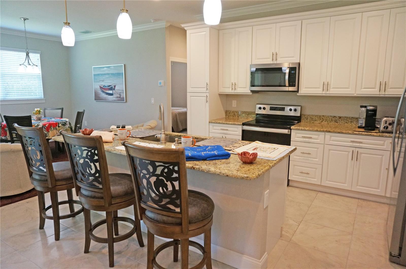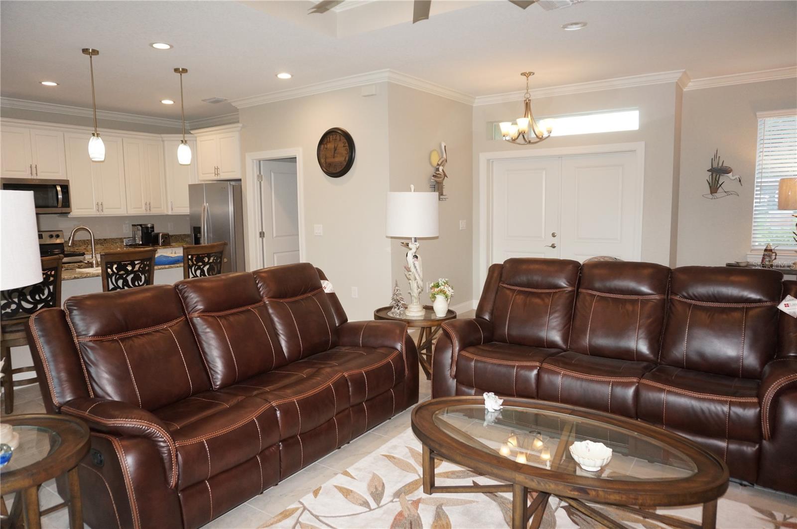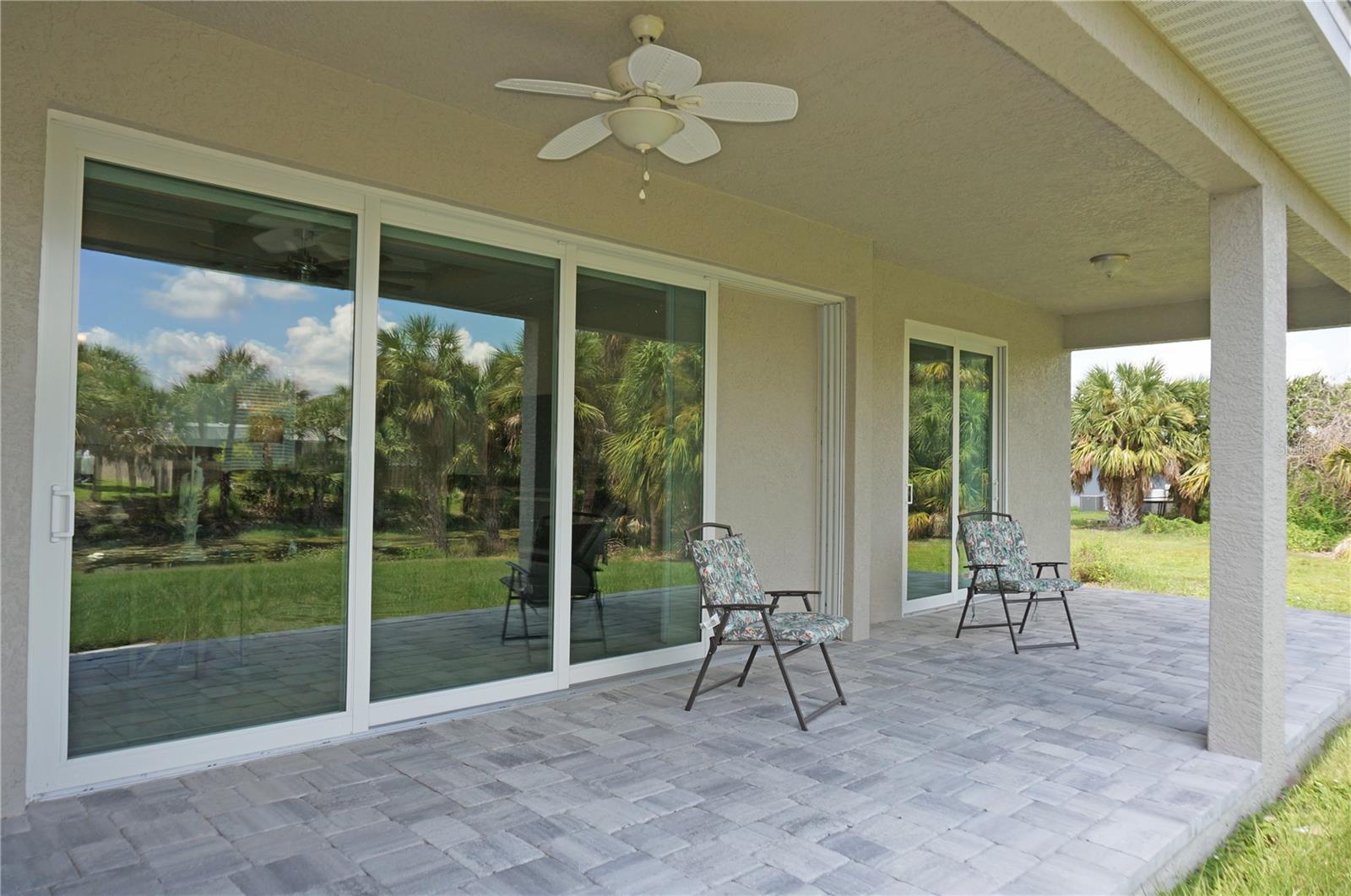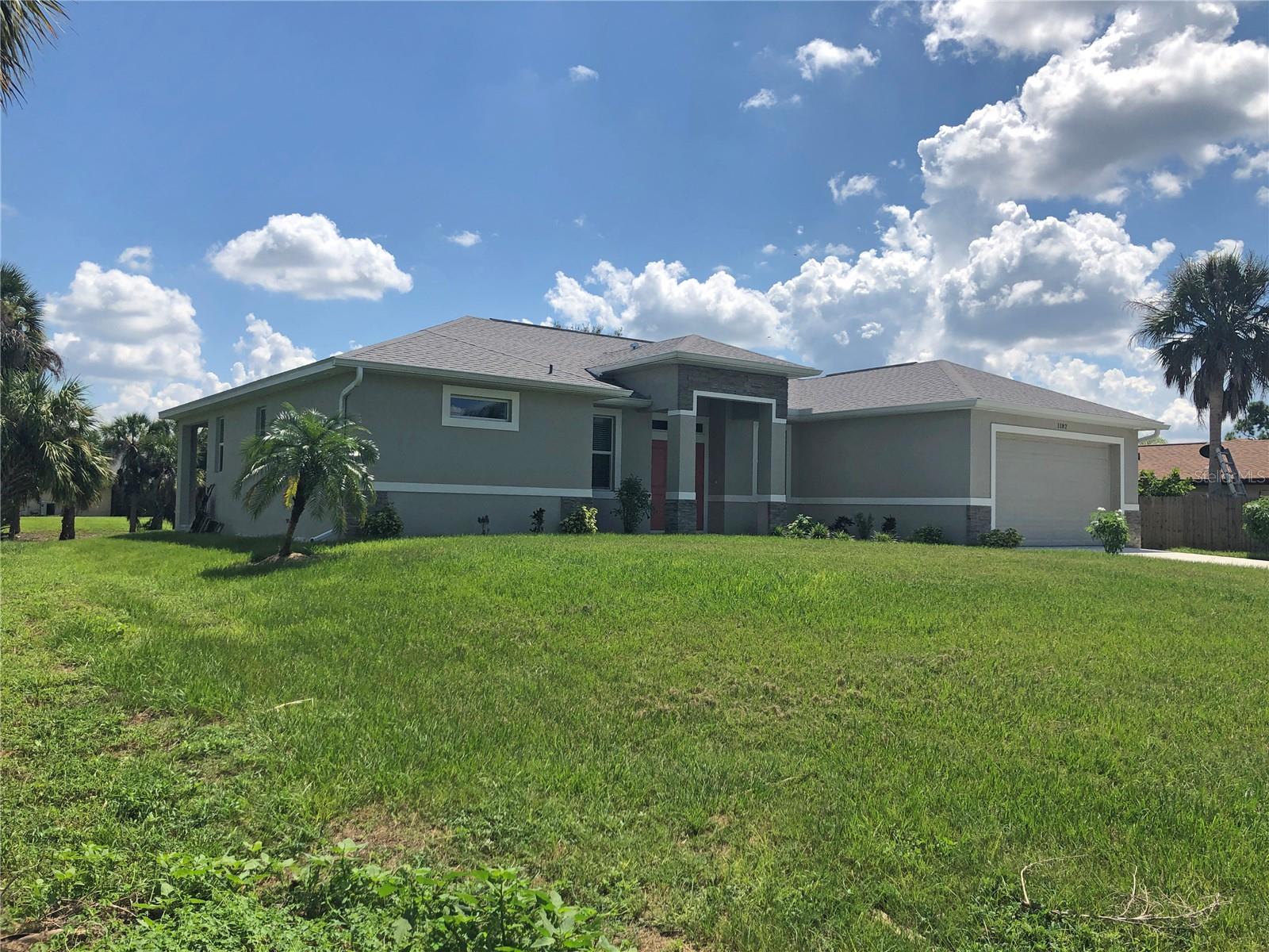 IMPRESSIVE WATERFRONT HOME BUILT IN 2021. 80 FEET on a freshwater canal with mature Florida trees, greenery and beautiful native birds. **NO DAMAGE AT ALL FROM HURRICANE IAN** This home is like brand new construction and has lovely design features throughout. This light and bright home offers an open and split bedroom floor plan with Great Room, Dining Room, well appointed Kitchen, Inside Laundry and covered Porch. The Great Room offers a high coffered ceiling, tile flooring and pocket sliding glass doors to the Porch and backyard. The Kitchen features white cabinetry, granite counters, stainless appliances, great cabinet and counter space and there is a dining room off the Kitchen. The Inside Laundry has a washer, dryer, laundry tub and shelving. The spacious Master Bedroom suite offers access to the Porch, TWO walk in closets and private Bathroom with dual sinks, white cabinets, granite counter, transom window and stylish walk in shower. There are two additional Bedrooms (one is being used as a Den/Office) with double closets and storage space above the closets. The guest Bathroom has beautiful tile in the tub/shower area, white cabinet and granite counter. Enjoy your morning coffee on the 33x9 covered Porch while taking in the fabulous views of the freshwater canal and nature in your spacious backyard. Other features include hurricane protection (impact glass), double entry front door with transom window, rain gutters, carpet in the bedrooms and tile flooring in the living areas. ***FURNITURE NEGOTIABLE- ALL NEW FURNITURE- TAGS ARE STILL ON ***....This home is minutes from shopping, dining, medical care, waterfront parks. This won't last long!