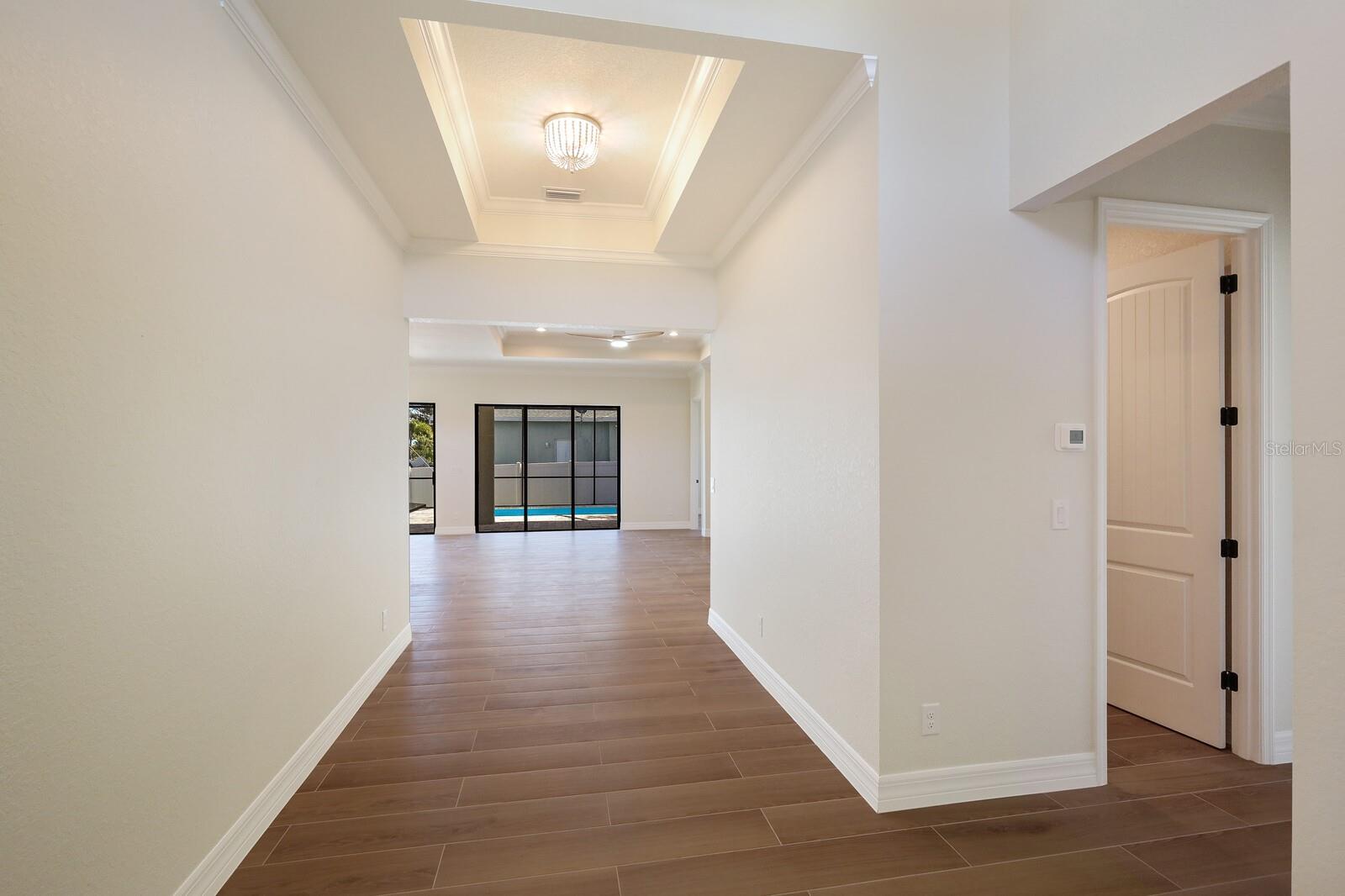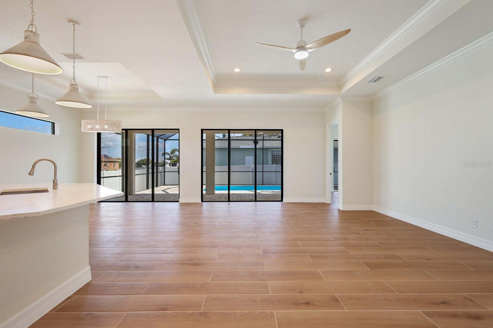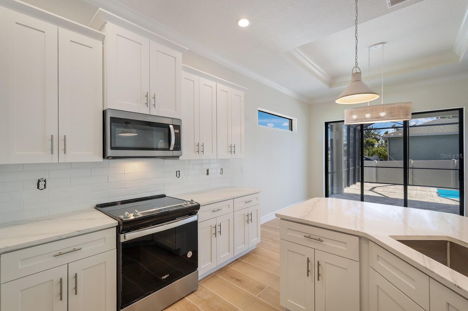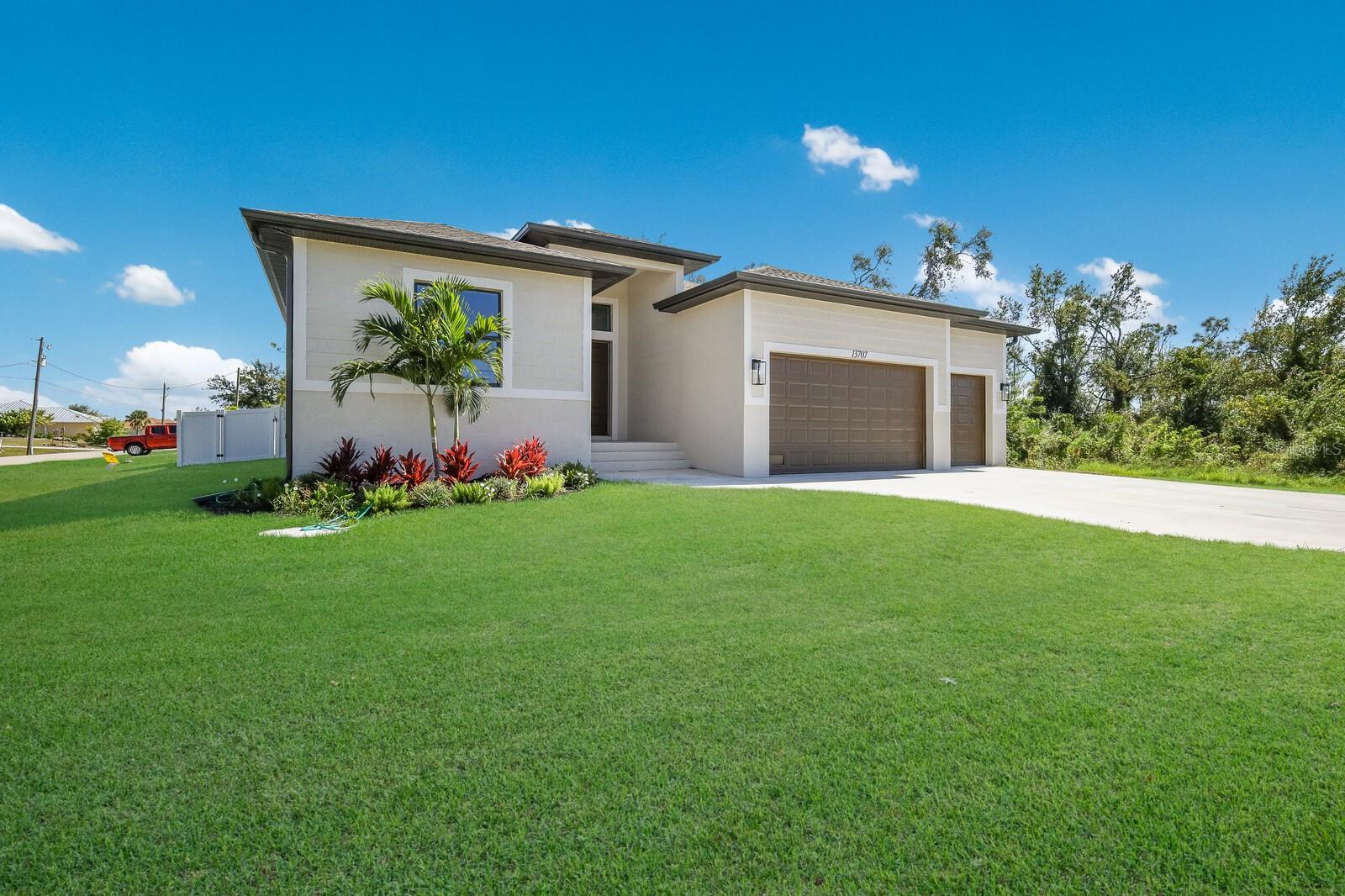 THIS Incredible Custom built Pool home Boasts 10’ ceilings, 8’ doors and has 4 bedrooms. Split floor plan allows for owner's privacy, with an open floor plan that's welcoming for entertaining! Potential 1/2 acre property as owner is willing to sell vacant lot next door if you want an RV garage, parking pad, or additional garage! Upgrades include Solid wood 42" STEPPED cabinetry with SOFT CLOSE & TOP TRIM, Crown molding throughout, Level 4 Quartz throughout, Allergen free porcelain plank tile flooring throughout (a MUST in Florida), Laundry room cabinetry, 3-car garage, High end fixtures, ceiling fans, & lighting, TILED showers, Kitchen tiled backsplash, Rear and side 6' vinyl fencing with landscaping...just to name a few! There are THREE 8’ tall SLIDING GLASS DOORS which adorn the rear of this Florida paradise providing amazing POOL views and access to a 24' covered lanai and a 44' incredible SCREENED pool deck for fun in the sun! Plenty of storage space in this well thought out designed home! Located in one of the most park-friendly Communities in Southwest Florida, South Gulf Cove offers 4 Parks with convenient amenities such as boat ramp, kayak launch, fishing at each park, fitness & nature trails, playground, basketball, picnic tables, BBQ grills, picnic shelters, picnic tables, restrooms and even facility rentals!__________ ***5 other properties and floor plans available, call for details.