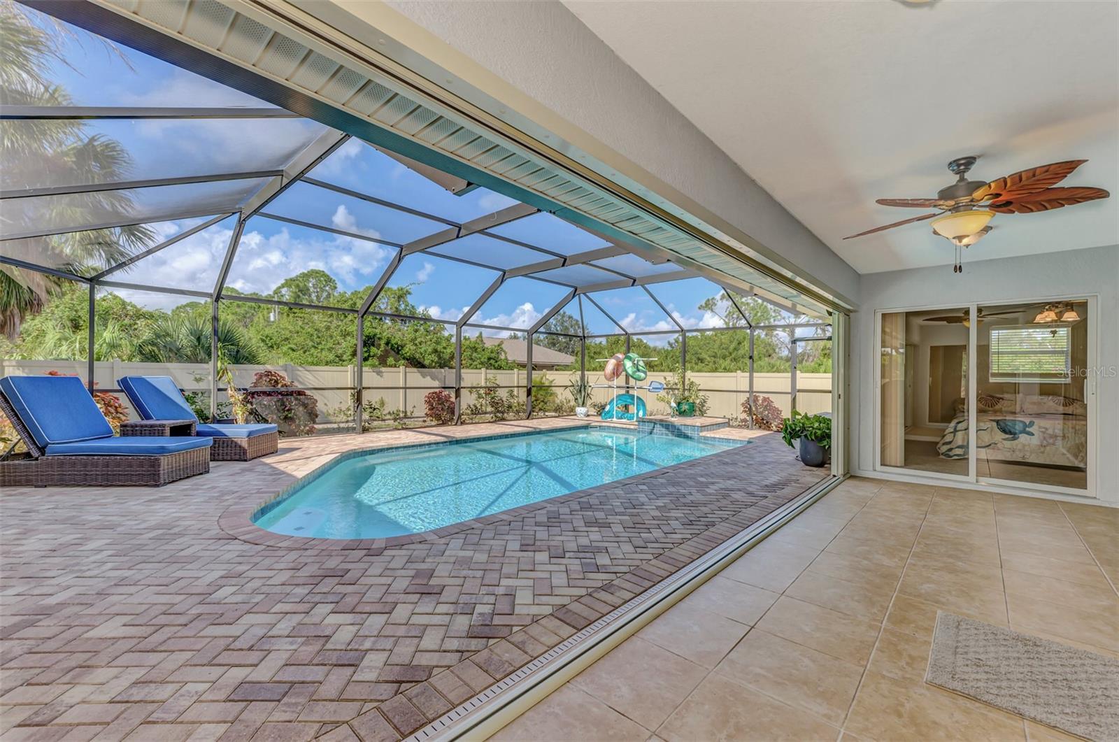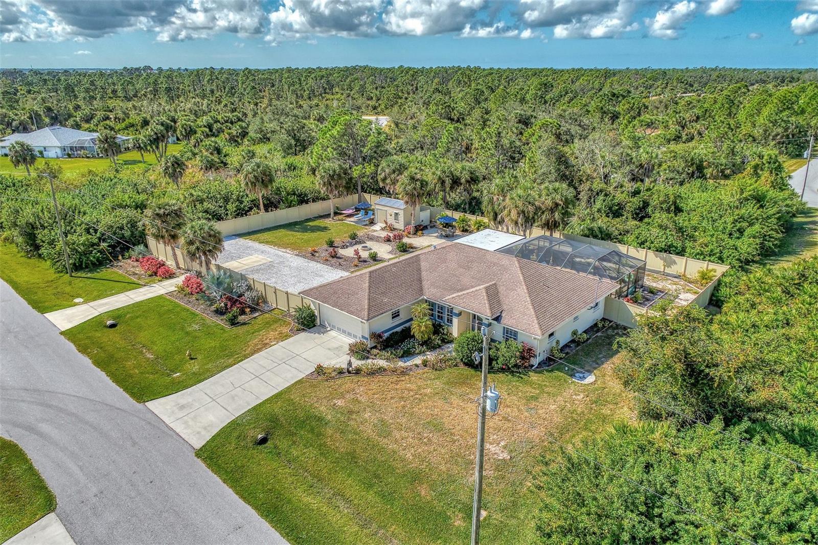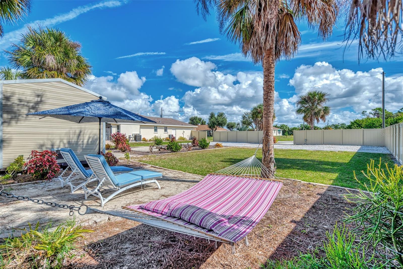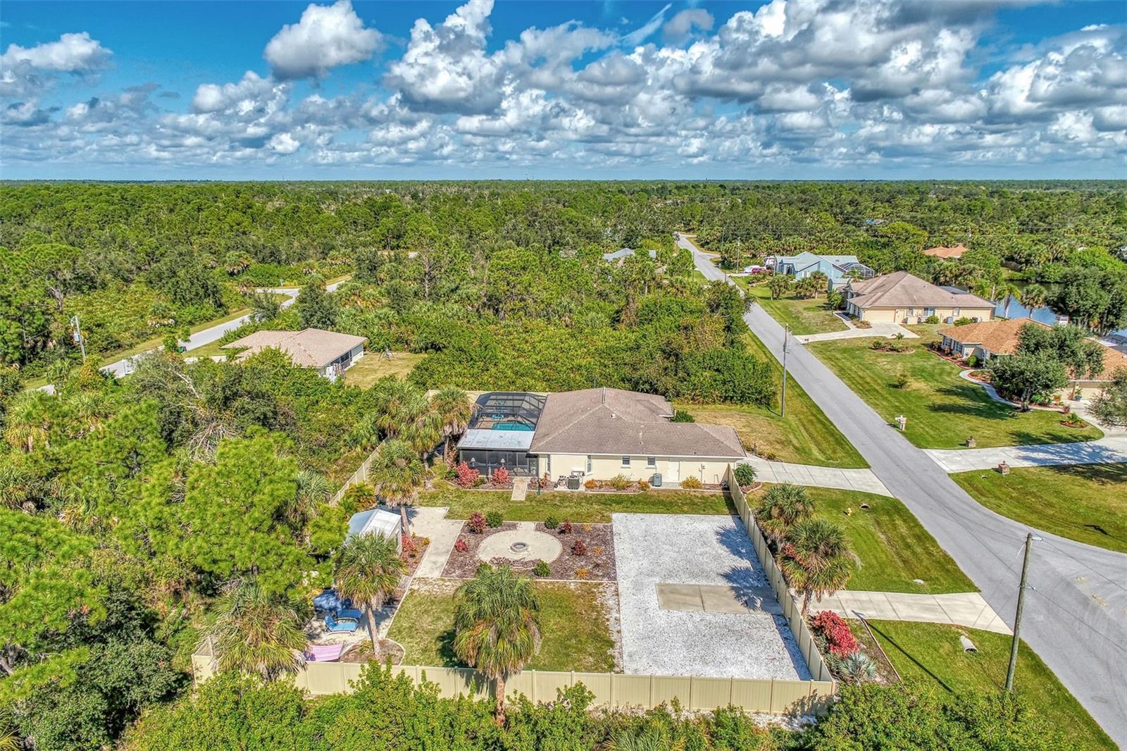 OUTSTANDING 3 bedroom, 2 bath, 2 car garage Heated POOL home situated on 2 OVERSIZED LOTS (half acre!) beautifully landscaped with loads of UPGRADES & EXTRAS including a separate 38X80 CONCRETE DRIVEWAY WITH RV HOOK UP (WATER & ELECTRIC) & Gate. 3 gates in total. PUBLIC WATER UTILITY-NO HOA FEES! Compete new fencing around both lots (transferable to the new buyer) perfect for young children and all your pets! You'll fall in love with the 15x21 SALTWATER HEATED IN-GROUND POOL with WATERFALL and changing light program! The EXPANDED POOL DECK has an ADDITIONAL side covered roof area in addition to the covered lanai. Great entertaining patio! The full cage measures 30x44! The pool has a PAVER DECK patio in a herringbone pattern that has been recently sealed! Home is hurricane protected. ! More features include a detached hurricane rated , FIREPIT, STORAGE SHED, HAMMOCK, and a barbecue area. Inside, discover a remodeled kitchen with GRANITE COUNTERTOPS, WOOD CABINETS, and STAINLESS APPLIANCES ($10,000 value!). The master bedroom boasts engineered plank wood flooring recently added in 2021 and sliding doors that will lead you out to the pool deck! The master bathroom comes with a tiled walk-in shower with a glass door! The second bedroom also has access to the pool deck and the guest bath comes with a tub & shower combination and glass sliding doors! The back of the entire lanai and the front door area have ACCORDION SHUTTERS with HURRICANE SHUTTERS for the rest of the home! The exterior of the home has been freshly painted and comes with a 5-year warranty transferable to the new buyer! All furniture, decorations, and potted plants in the lanai are INCLUDED along with a John Deere riding mower, home generator, and more. This home is located in a quiet peaceful neighborhood with the Town Center mall, Twisted Fork restaurant, Harley dealership, shopping, schools and more all close by. Just minutes away from our beautiful Gulf beaches and public boat ramps! This is your chance to own your piece of Paradise. True pride in ownership. Home warranty for the new buyer! Call today for your private tour!