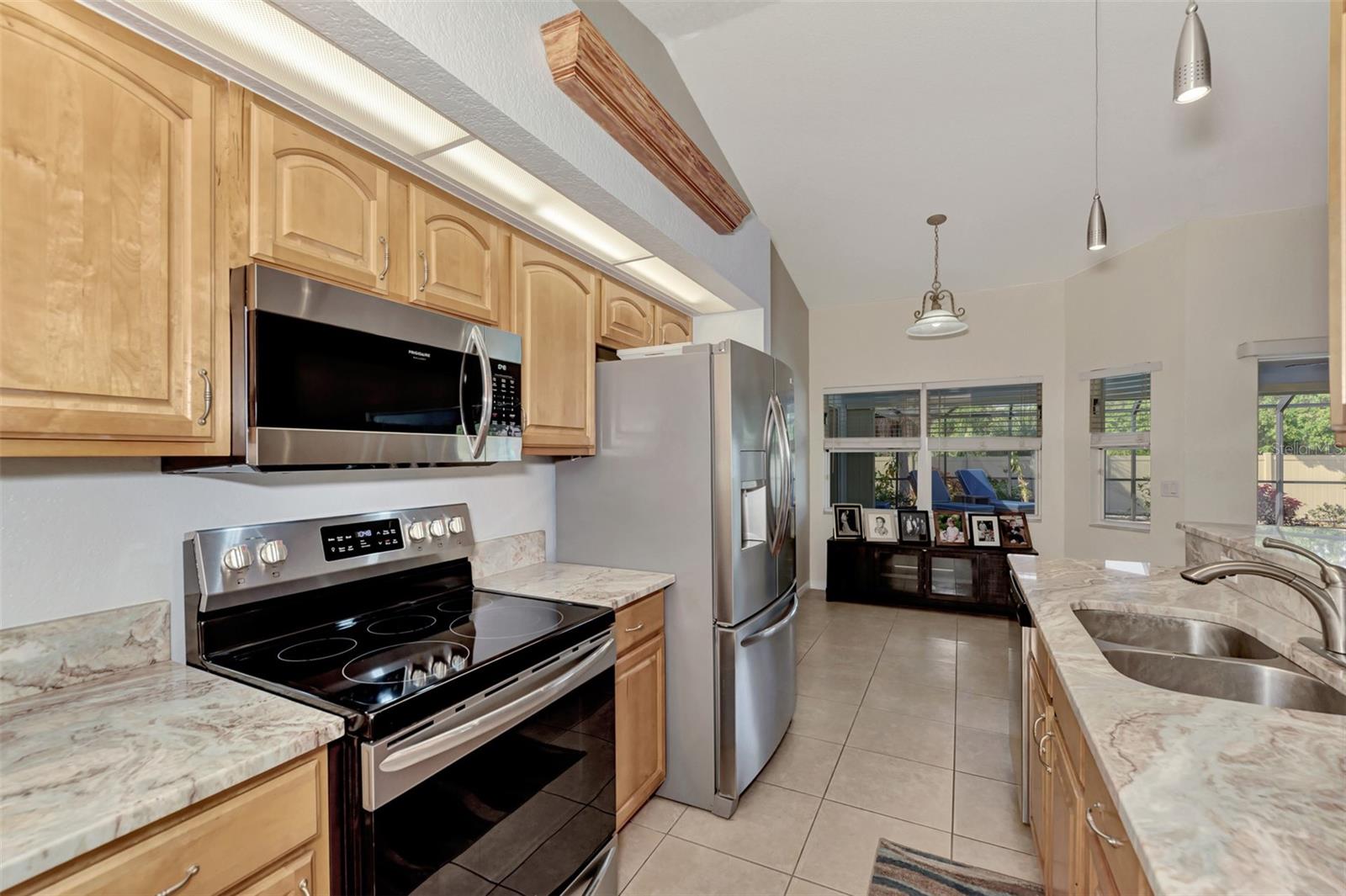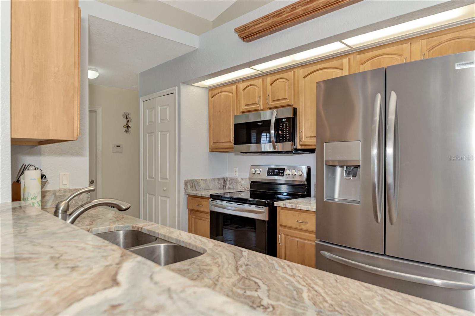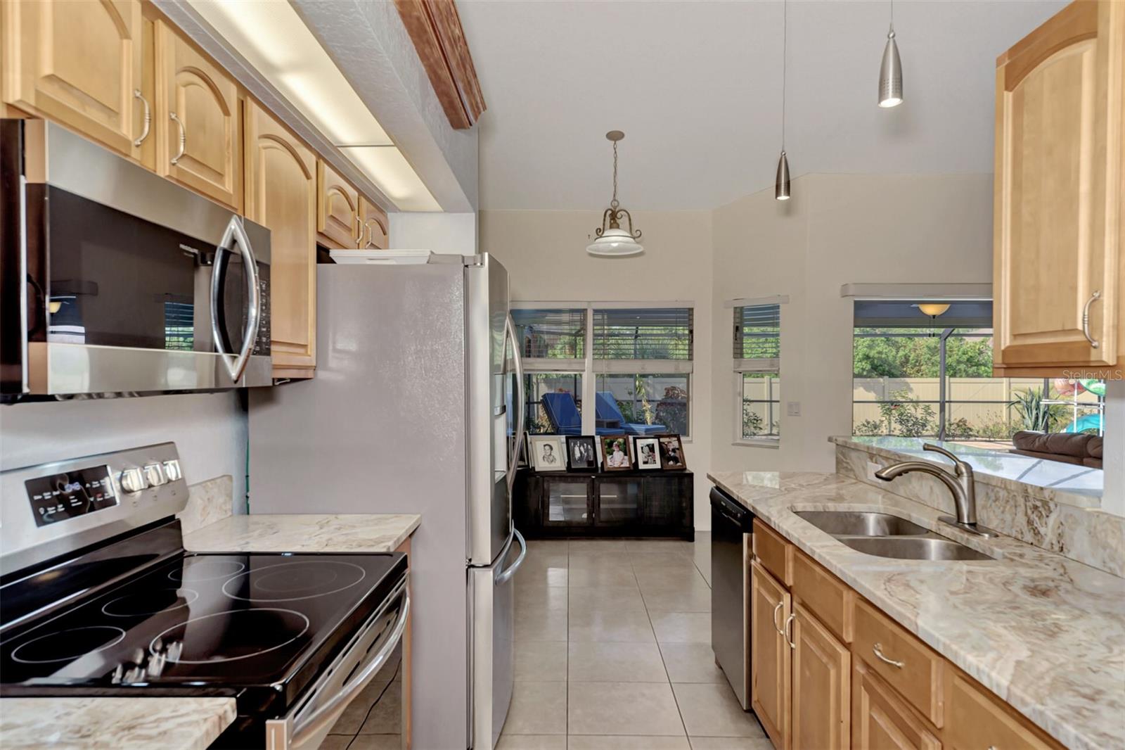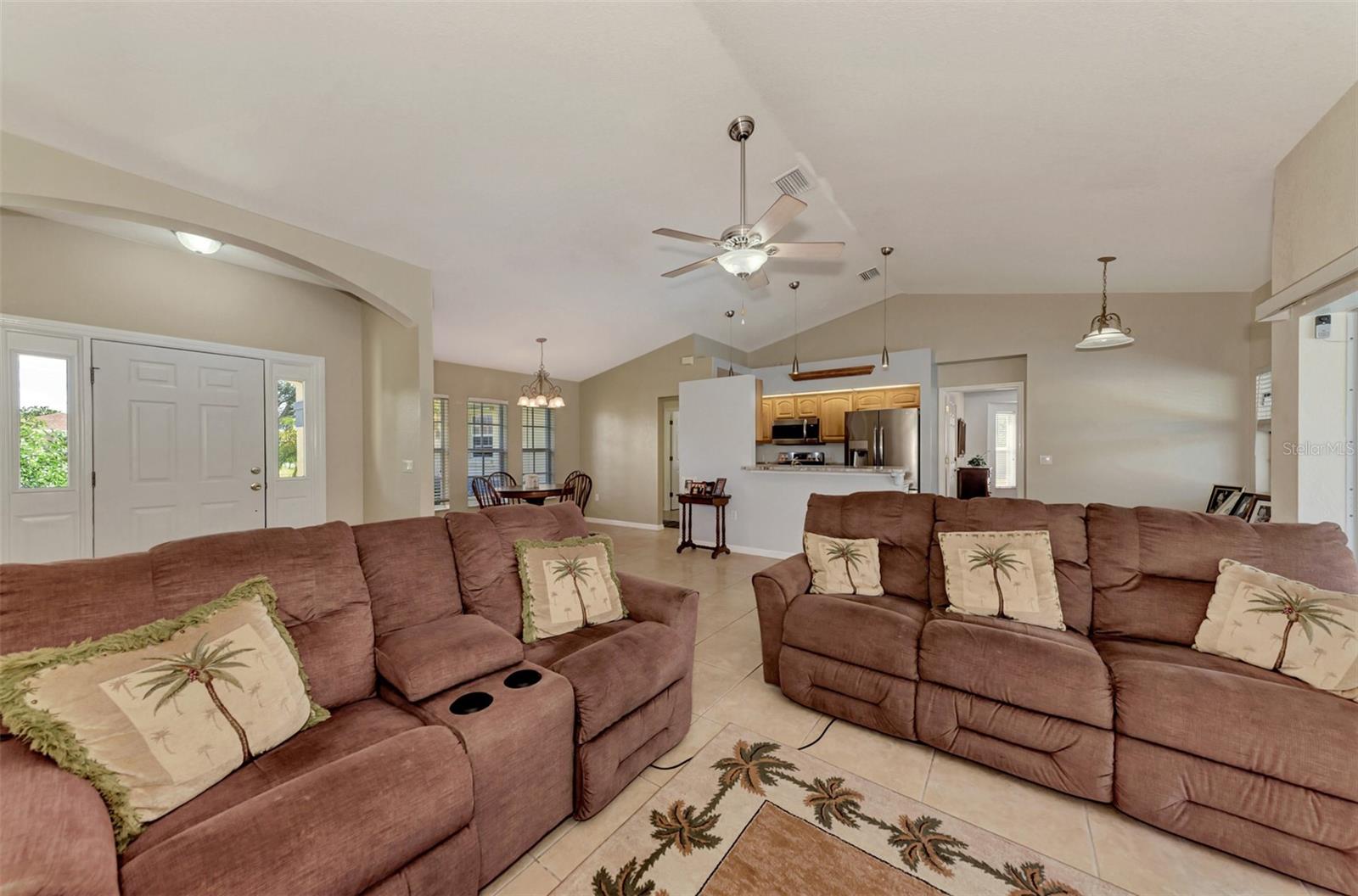 OUTSTANDING 3 bedroom, 2 bath, 2 car garage Heated POOL home situated on 2 OVERSIZED LOTS (half acre!) beautifully landscaped with loads of UPGRADES & EXTRAS including a separate 38X80 CONCRETE DRIVEWAY WITH RV HOOK UP (WATER & ELECTRIC) & Gate. 3 gates in total. PUBLIC WATER UTILITY-NO HOA FEES! Compete new fencing around both lots (transferable to the new buyer) perfect for young children and all your pets! You'll fall in love with the 15x21 SALTWATER HEATED IN-GROUND POOL with WATERFALL and changing light program! The EXPANDED POOL DECK has an ADDITIONAL side covered roof area in addition to the covered lanai. Great entertaining patio! The full cage measures 30x44! The pool has a PAVER DECK patio in a herringbone pattern that has been recently sealed! Home is hurricane protected. ! More features include a detached hurricane rated , FIREPIT, STORAGE SHED, HAMMOCK, and a barbecue area. Inside, discover a remodeled kitchen with GRANITE COUNTERTOPS, WOOD CABINETS, and STAINLESS APPLIANCES ($10,000 value!). The master bedroom boasts engineered plank wood flooring recently added in 2021 and sliding doors that will lead you out to the pool deck! The master bathroom comes with a tiled walk-in shower with a glass door! The second bedroom also has access to the pool deck and the guest bath comes with a tub & shower combination and glass sliding doors! The back of the entire lanai and the front door area have ACCORDION SHUTTERS with HURRICANE SHUTTERS for the rest of the home! The exterior of the home has been freshly painted and comes with a 5-year warranty transferable to the new buyer! All furniture, decorations, and potted plants in the lanai are INCLUDED along with a John Deere riding mower, home generator, and more. This home is located in a quiet peaceful neighborhood with the Town Center mall, Twisted Fork restaurant, Harley dealership, shopping, schools and more all close by. Just minutes away from our beautiful Gulf beaches and public boat ramps! This is your chance to own your piece of Paradise. True pride in ownership. Home warranty for the new buyer! Call today for your private tour!
