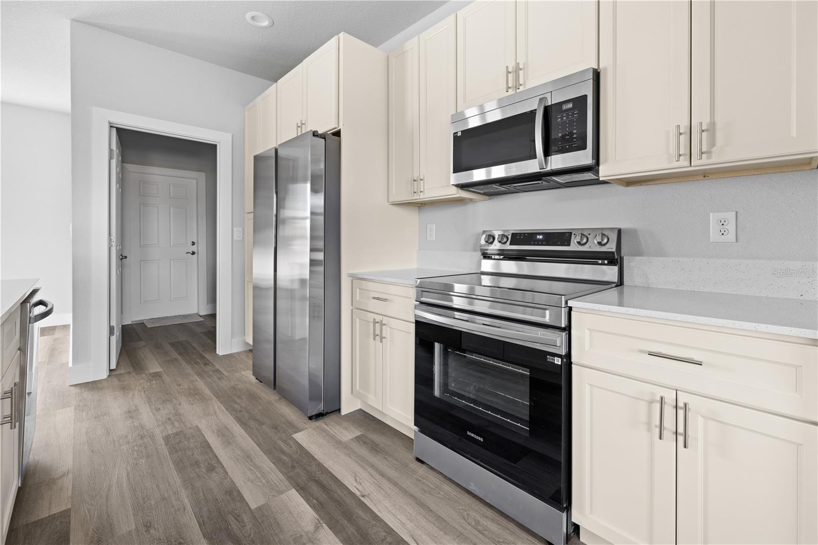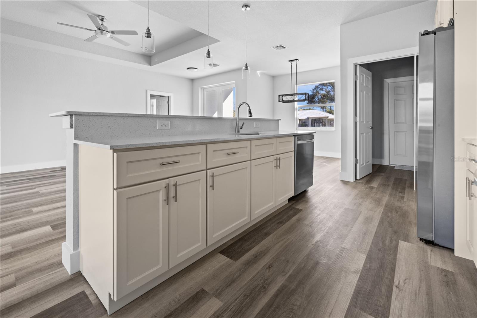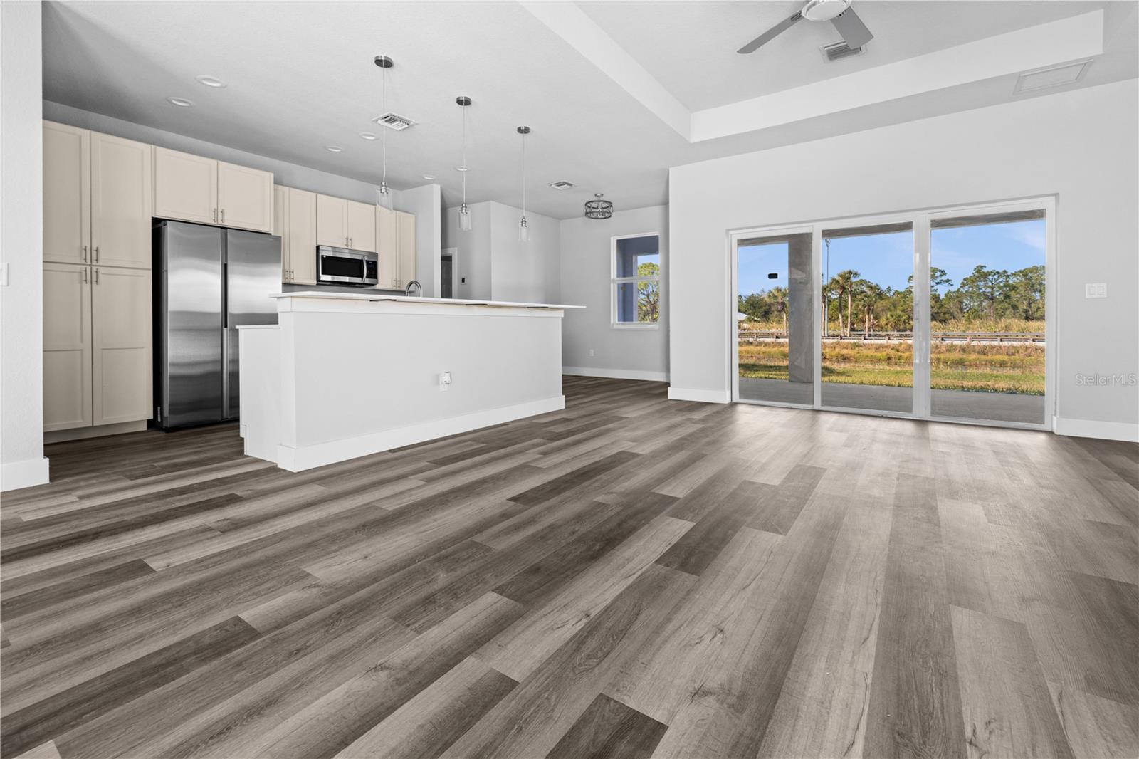 One or more photo(s) has been virtually staged. Seller willing to help potential buyer with closing costs or rate buy down. Ready to Move-in, Motivated Seller. Why Build if you can move into this new home? Invest in your future or invest in your Real Estate Portafolio.The seller wants it to be sold now. Bring your best BID. FHA, VA , CONVENTIONAL, CASH AND ASSUMABLE MORTGAGE. There is a lot of room to build your own pool and choice your personal design. This stunning 3-bedroom, 2-bathroom home is equipped with IMPACT WINDOWS AND DOORS for added security and peace of mind during the hurricane season. Inside, you’ll find durable, scratch-resistant, and water-resistant high-quality vinyl flooring throughout. The open-concept design with 9-foot ceilings creates a spacious and airy atmosphere, with crown molding in the living room and master bedroom complemented by abundant natural light. The kitchen boasts beautiful all-wood cabinetry with soft-close hinges, quartz countertops, stainless steel appliances, and a pantry with pull-out drawers. The layout also includes a cozy breakfast nook with water view to the lake (the lake did not flood during the last storms) and a separate formal dining area, offering great opportunities for customization. The split floor plan provides convenient access to the lanai from three different areas, and both the lanai and front entryway are finished with stylish tile flooring. You will have the opportunity to install your outside kitchen. The master suite features a luxurious in suite bathroom with a walk-in shower, a large soaking tub, double sinks with quartz countertops, a linen closet, and both his-and-her closets. Additional upgrades include a buried power line, a smart thermostat, and thoughtful extras like a utility sink and a water softener. Don’t miss your chance to see this incredible home – schedule your private showing today before it’s gone!