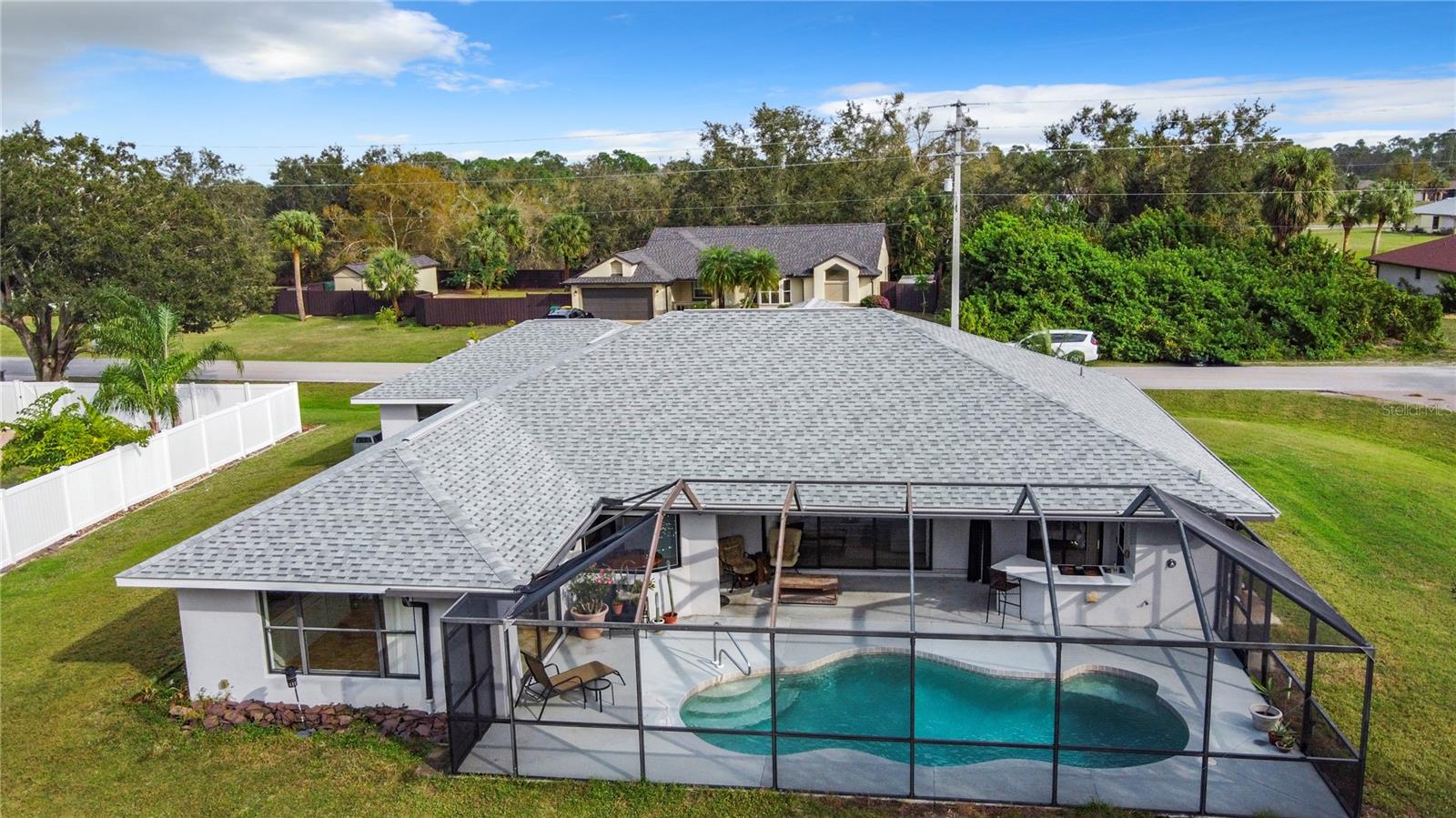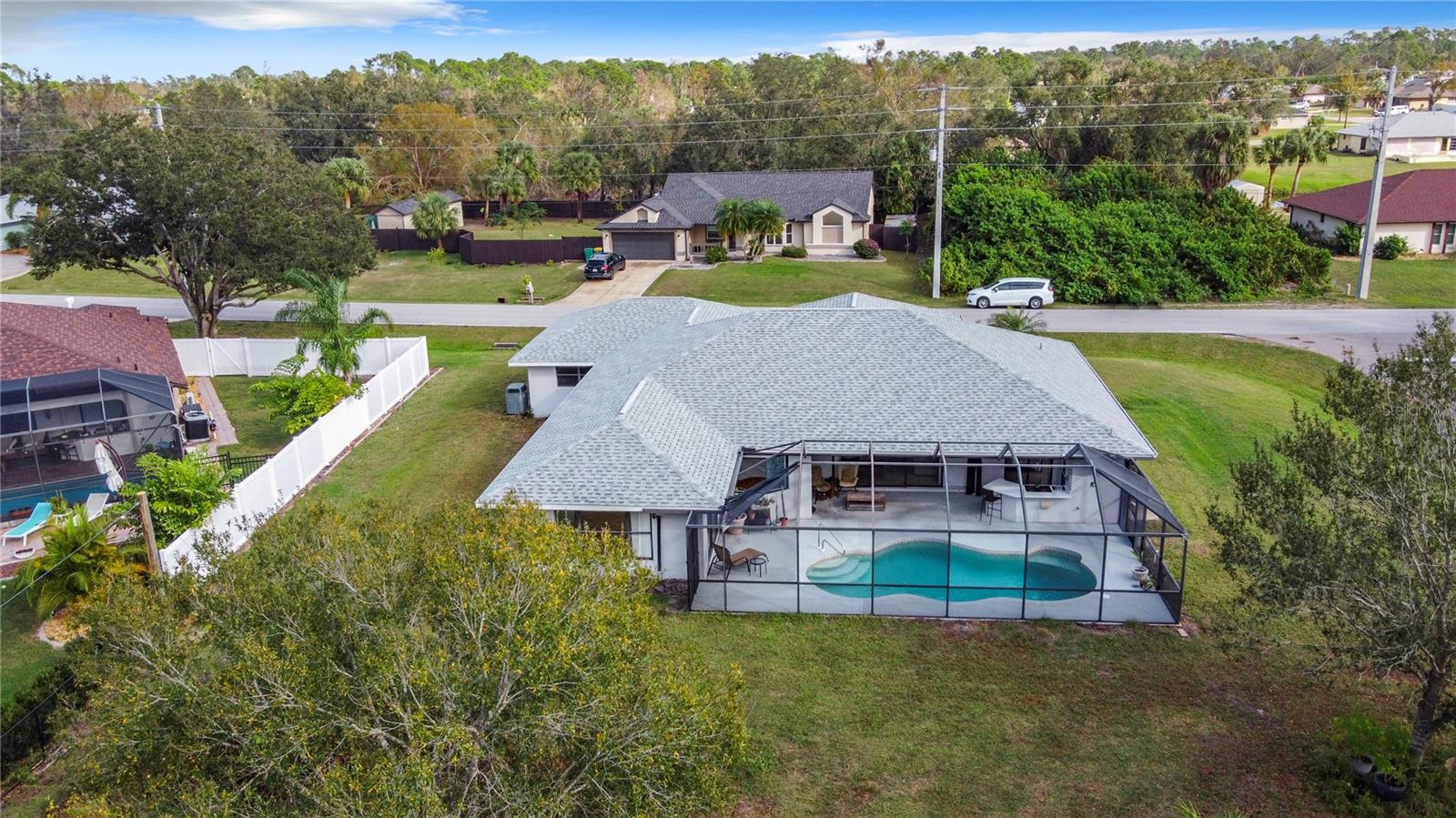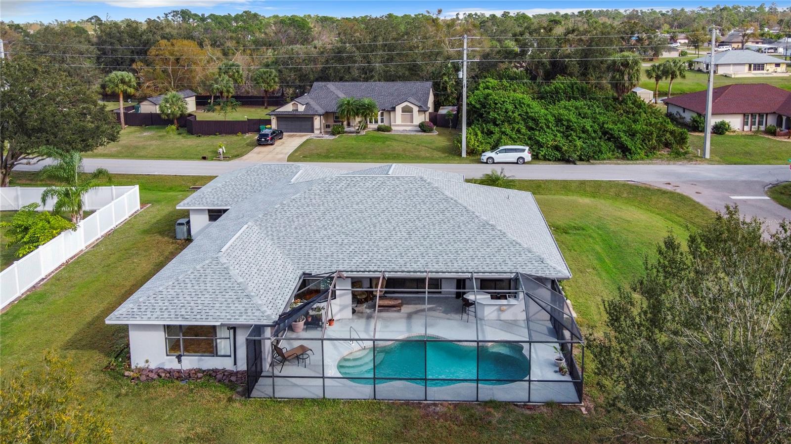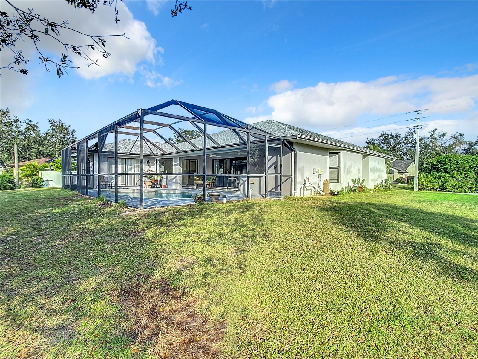 GORGEOUS, custom-built, POOL home on oversized CORNER LOT - with EXTRA BUILDABLE LOT to the rear of this home - AND EXTRA WORKSHOP - making this a very desirable find in an excellent location! This one-owner jewel, built in 2005 is huge, with vaulted/cathedral ceilings and tray ceiling in master! PLUS EXTRA LOT behind house! Perfect for anyone looking for a PRIVATE back yard. Build an EXTRA GARAGE! New Roof 2023, newer kitchen appliances 2021, washer and dryer stays. Water heater 2016. PGT impact windows, impact garage door. No carpet. All tile. Huge master with enormous (2!) walk-in closets. Roman-type walk-in shower, jetted garden tub that works! Private water closet. Garage has an extra room/workshop that could be converted into 3rd garage. Pool has outdoor shower w/hot water and a pool bathroom! Sliders pocket. Pool is pre-wired and ready to be set up for heat. Pool screens have just been replaced - after some of these photos were taken. City water. Seller has partially cleared Xtra lot.