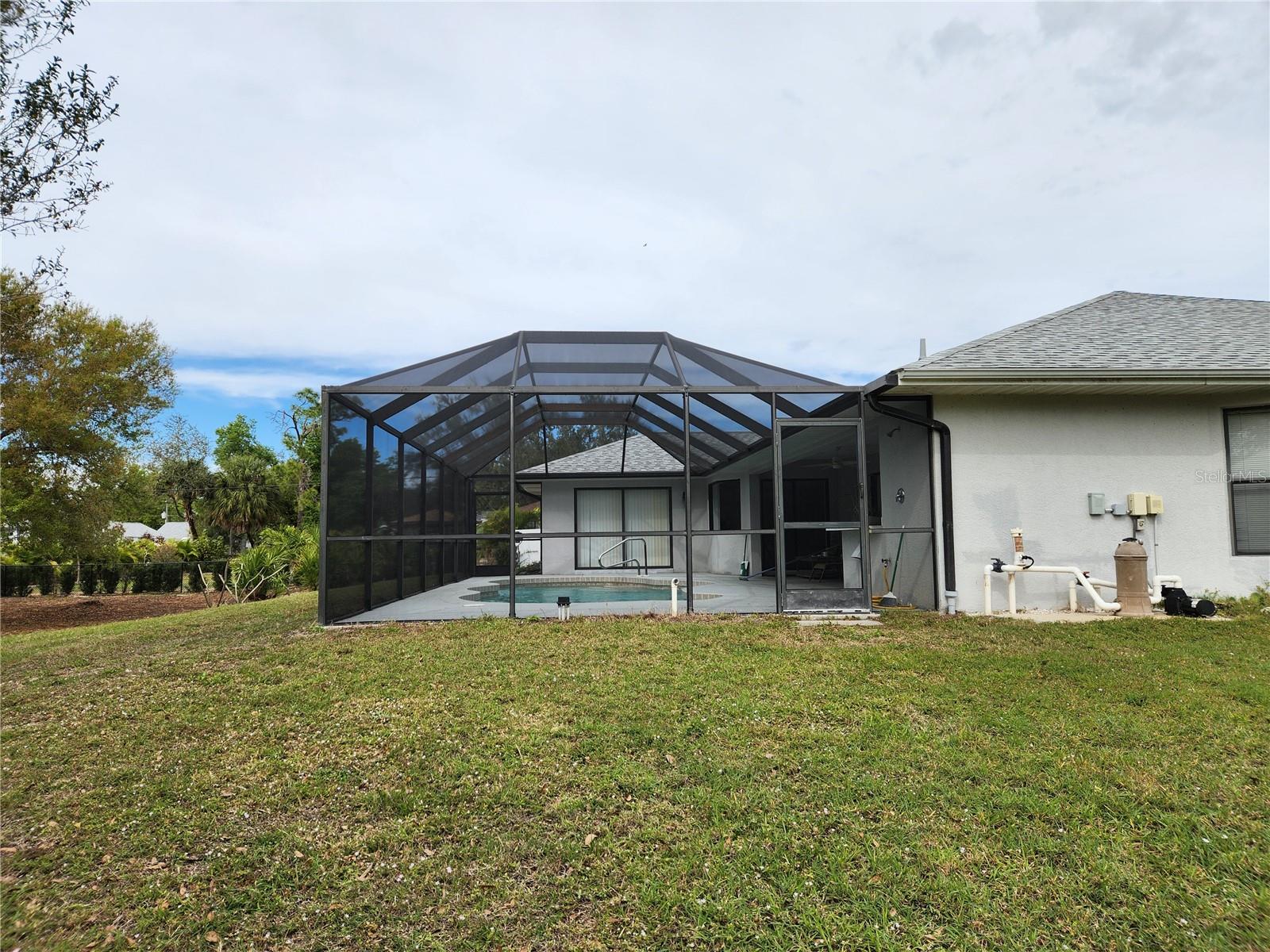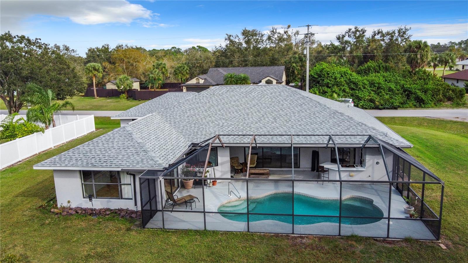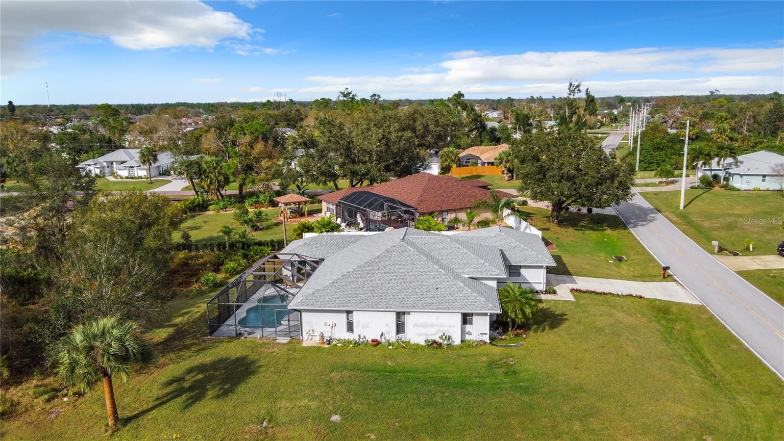 GORGEOUS, custom-built, POOL home on oversized CORNER LOT - with EXTRA BUILDABLE LOT to the rear of this home - AND EXTRA WORKSHOP - making this a very desirable find in an excellent location! This one-owner jewel, built in 2005 is huge, with vaulted/cathedral ceilings and tray ceiling in master! PLUS EXTRA LOT behind house! Perfect for anyone looking for a PRIVATE back yard. Build an EXTRA GARAGE! New Roof 2023, newer kitchen appliances 2021, washer and dryer stays. Water heater 2016. PGT impact windows, impact garage door. No carpet. All tile. Huge master with enormous (2!) walk-in closets. Roman-type walk-in shower, jetted garden tub that works! Private water closet. Garage has an extra room/workshop that could be converted into 3rd garage. Pool has outdoor shower w/hot water and a pool bathroom! Sliders pocket. Pool is pre-wired and ready to be set up for heat. Pool screens have just been replaced - after some of these photos were taken. City water. Seller has partially cleared Xtra lot.
