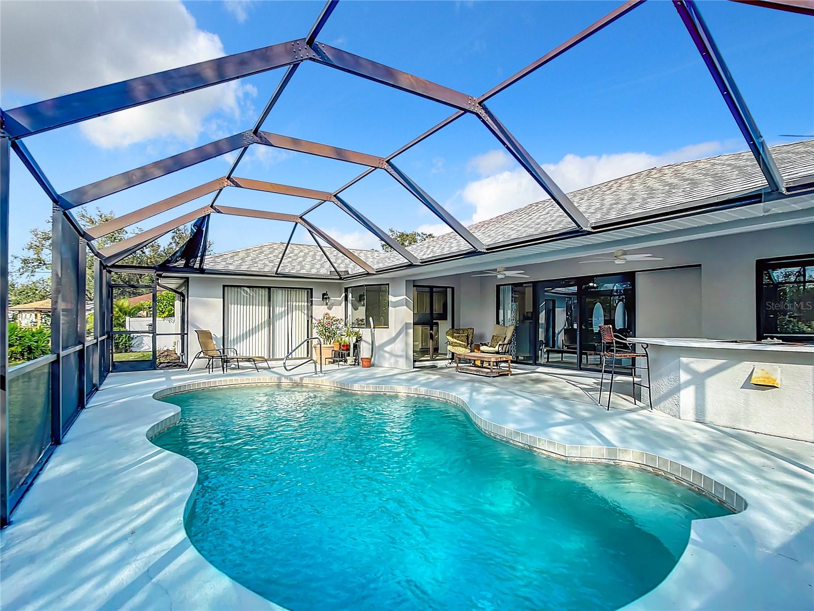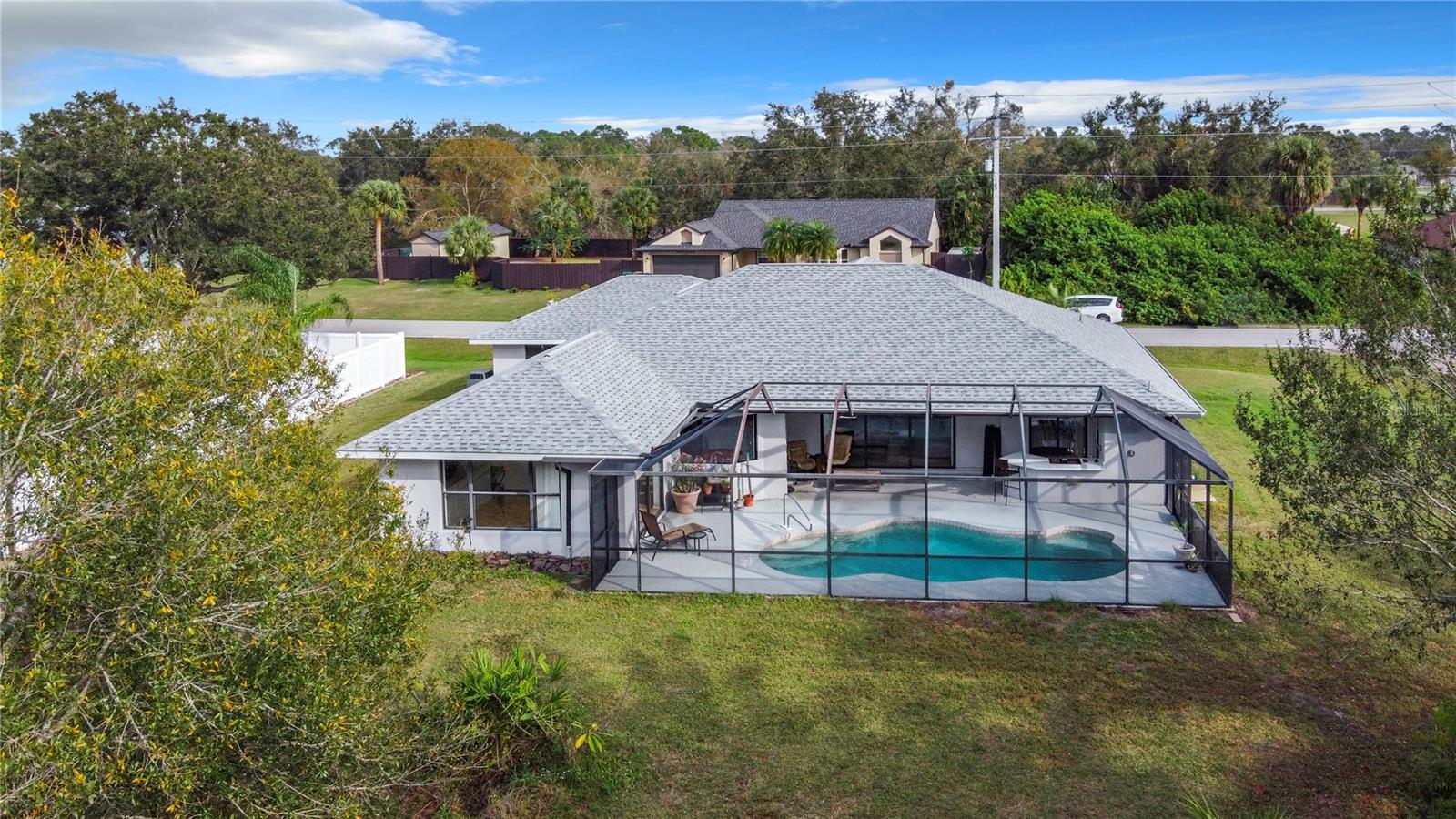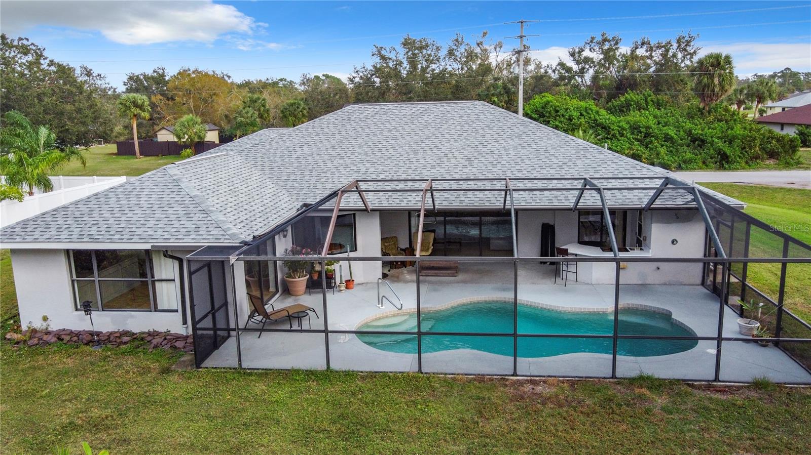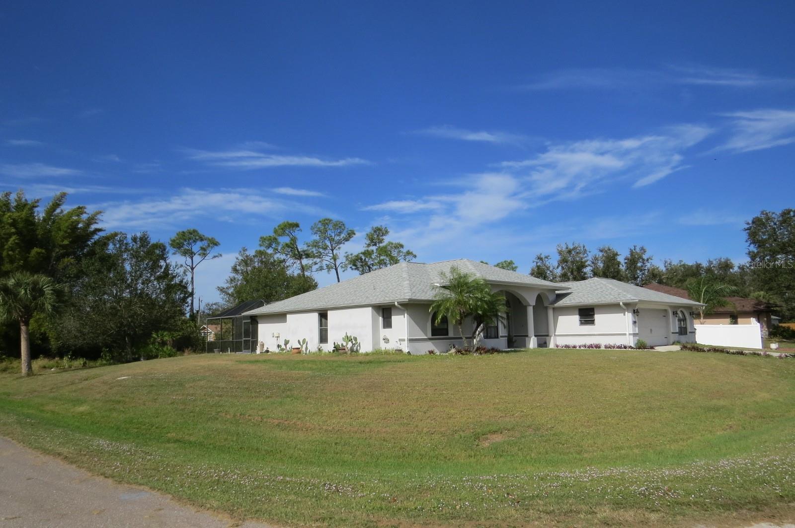 GORGEOUS, custom-built, POOL home on oversized CORNER LOT - with EXTRA BUILDABLE LOT to the rear of this home - AND EXTRA WORKSHOP - making this a very desirable find in an excellent location! This one-owner jewel, built in 2005 is huge, with vaulted/cathedral ceilings and tray ceiling in master! PLUS EXTRA LOT behind house! Perfect for anyone looking for a PRIVATE back yard. Build an EXTRA GARAGE! New Roof 2023, newer kitchen appliances 2021, washer and dryer stays. Water heater 2016. PGT impact windows, impact garage door. No carpet. All tile. Huge master with enormous (2!) walk-in closets. Roman-type walk-in shower, jetted garden tub that works! Private water closet. Garage has an extra room/workshop that could be converted into 3rd garage. Pool has outdoor shower w/hot water and a pool bathroom! Sliders pocket. Pool is pre-wired and ready to be set up for heat. Pool screens have just been replaced - after some of these photos were taken. City water. Seller has partially cleared Xtra lot.