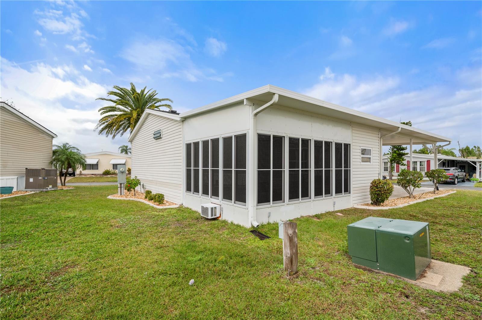 No damage from Milton. Welcome to this beautiful 3-bedroom, 2-bathroom home nestled in the heart of a wonderful 55-plus community. ** NOT IN FLOOD** As you step into this inviting residence, you'll immediately feel a sense of warmth. Enjoy the Florida lifestyle with a screened-in lanai featuring A/C, perfect for relaxing or entertaining guests. The spacious interior boasts a large eat-in kitchen, inviting living room, and a dining room that sets the stage for memorable gatherings. The detailed driveway and covered carport add to the charm as you approach the residence. Additionally, a sizable work shed provides extra convenience. The master bedroom offers ample space with generous closets and a linen closet, while the entire home is designed for comfort. Noteworthy is the roof replacement in 2023, smoke and carbon monoxide detectors replaced February 2024, ensuring the property is well-maintained. This home had its annual A/C service by a Licensed company on 8/20/2024, and also was fully pressure washed 8/19/2024. Located in proximity to elite golf courses, Florida's pristine beaches, entertainment options, shopping, and a variety of restaurants, this property encapsulates the best of Florida living. Had floors professionally cleaned May 2024. This is a must see. Call or text for a showing today before its too late.