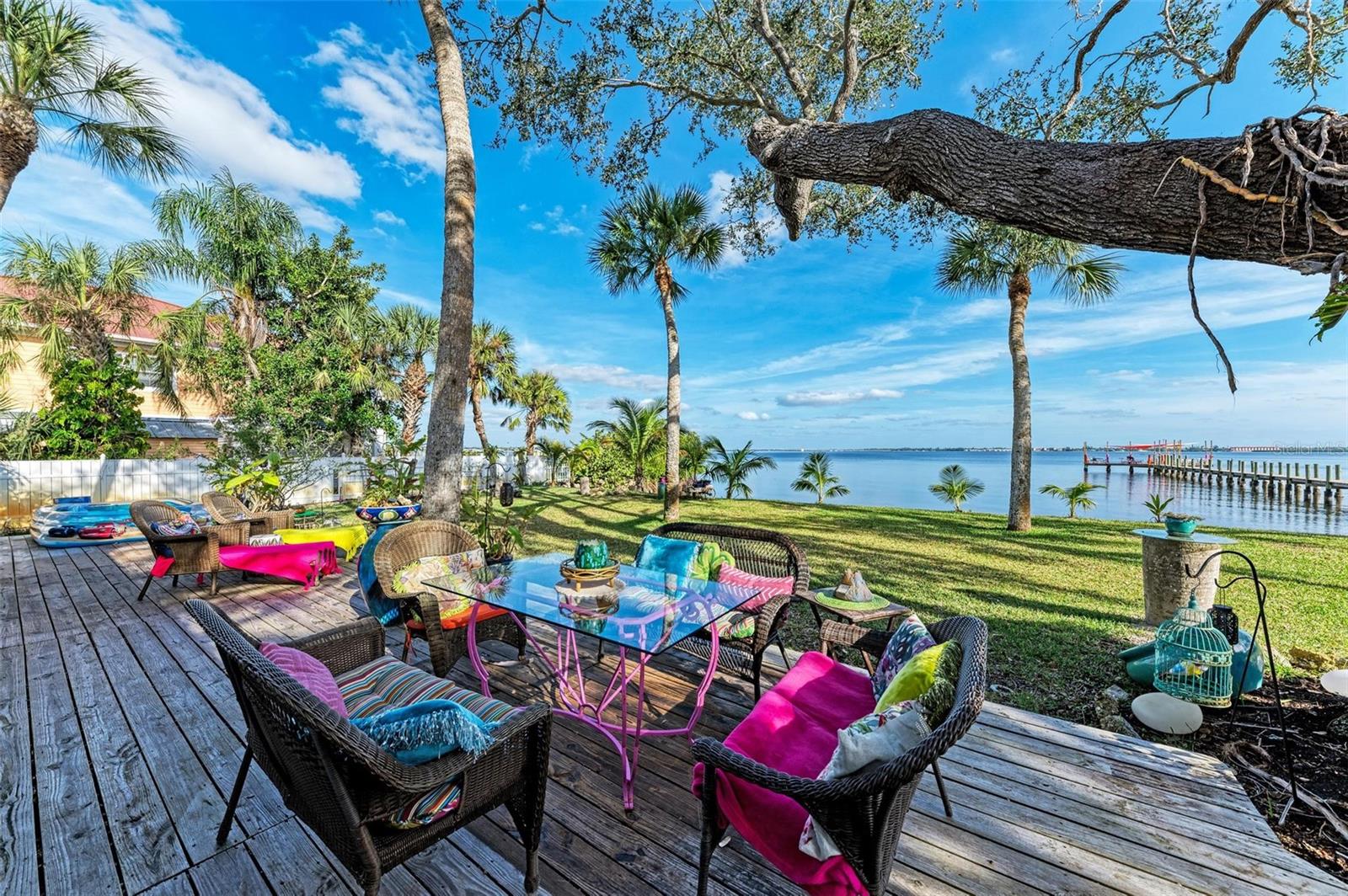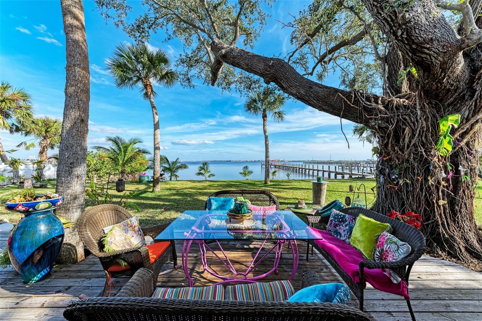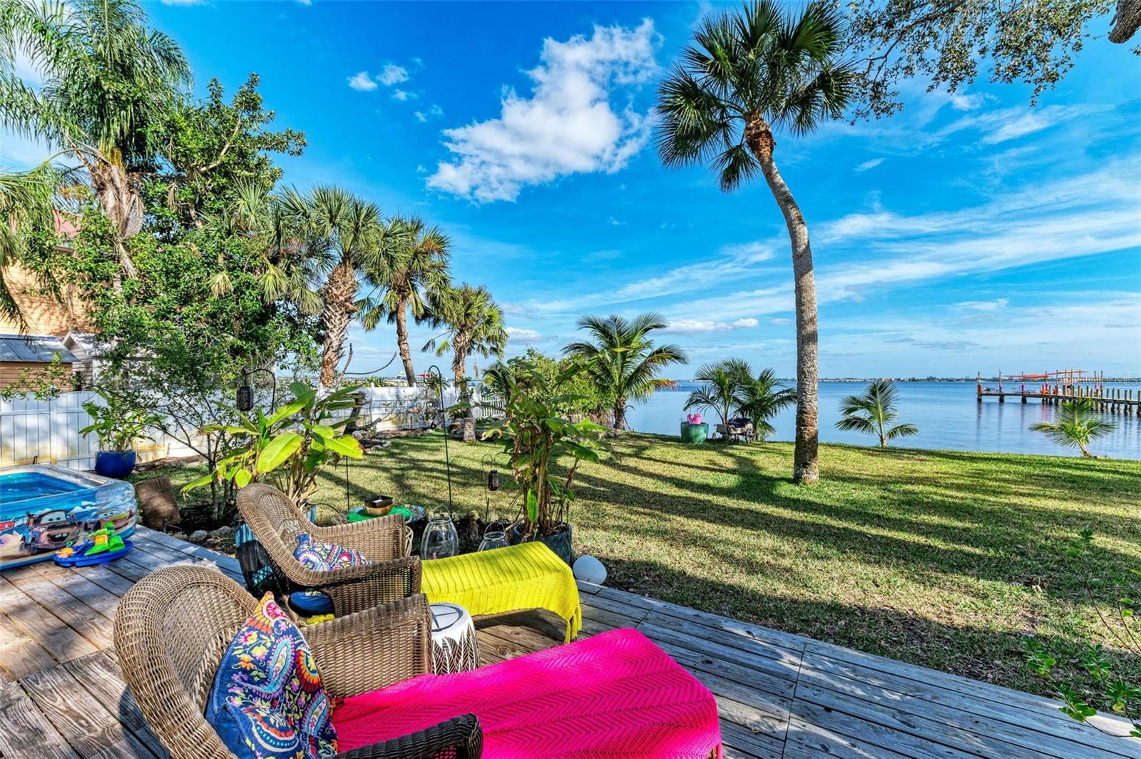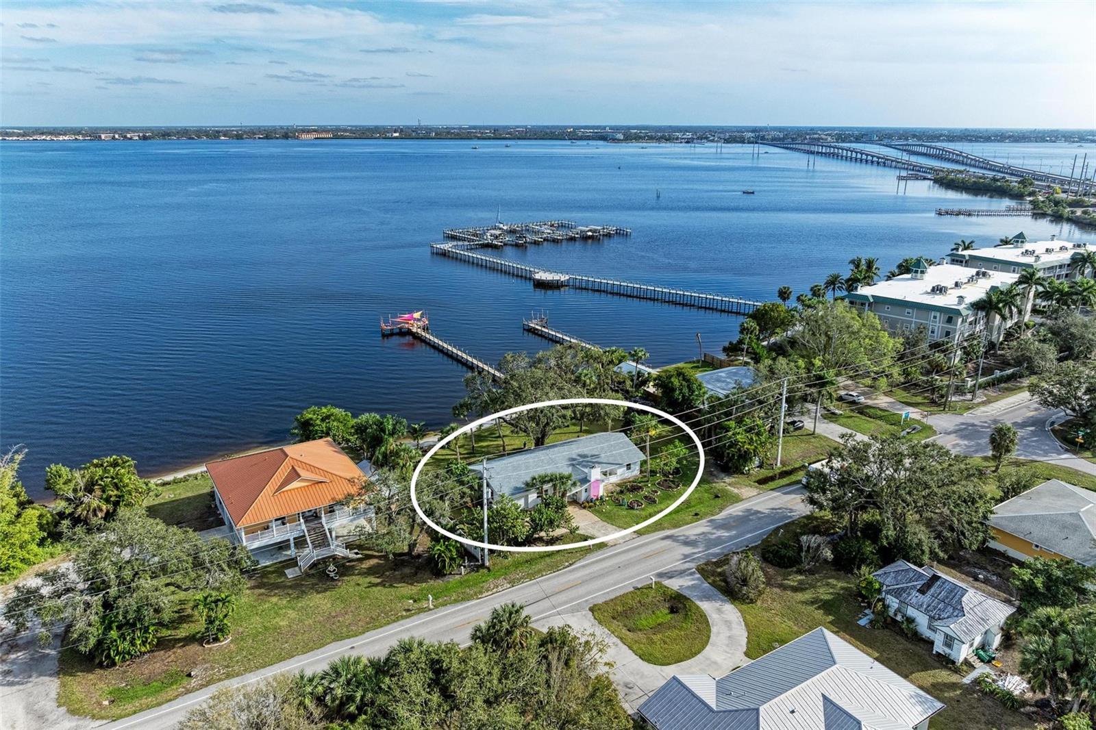 Home received flooding during both hurricanes. Fabulous opportunity to own this CHARLOTTE HARBORFRONT oversized property with nearly 180 feet of private beach, a large dock/pier in place with a beautiful unobstructed view and access for boating, and a desirable Southern Exposure and NO RENTAL or DEED RESTRICTIONS. DEVELOP INTO 2 HOMESITES, or OTHER POSSIBILITIES. The dock was updated and rebuilt in 2023. Prepare to be WOWED by the large oak trees that provide a beautiful canopy for the back deck that runs the full length of the house and is totally open to the private backyard, private beach, garden area, and the large pier/dock with sail cloths and great space to entertain. Find opportunities abound as this home is on 3.5 lots zoned CR3.5 nearby to the new Sunseeker Resort, upcoming new restaurant just down the road, and conveniently located with access to all things Punta Gorda and Port Charlotte. Schedule your showing today!