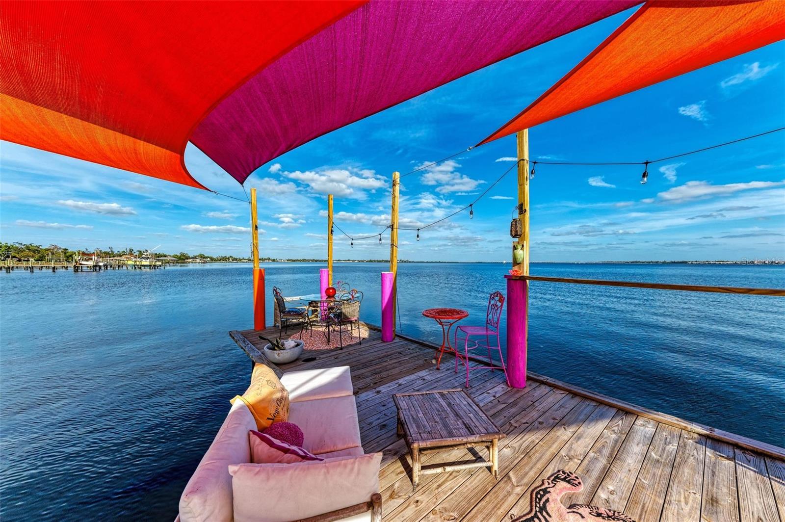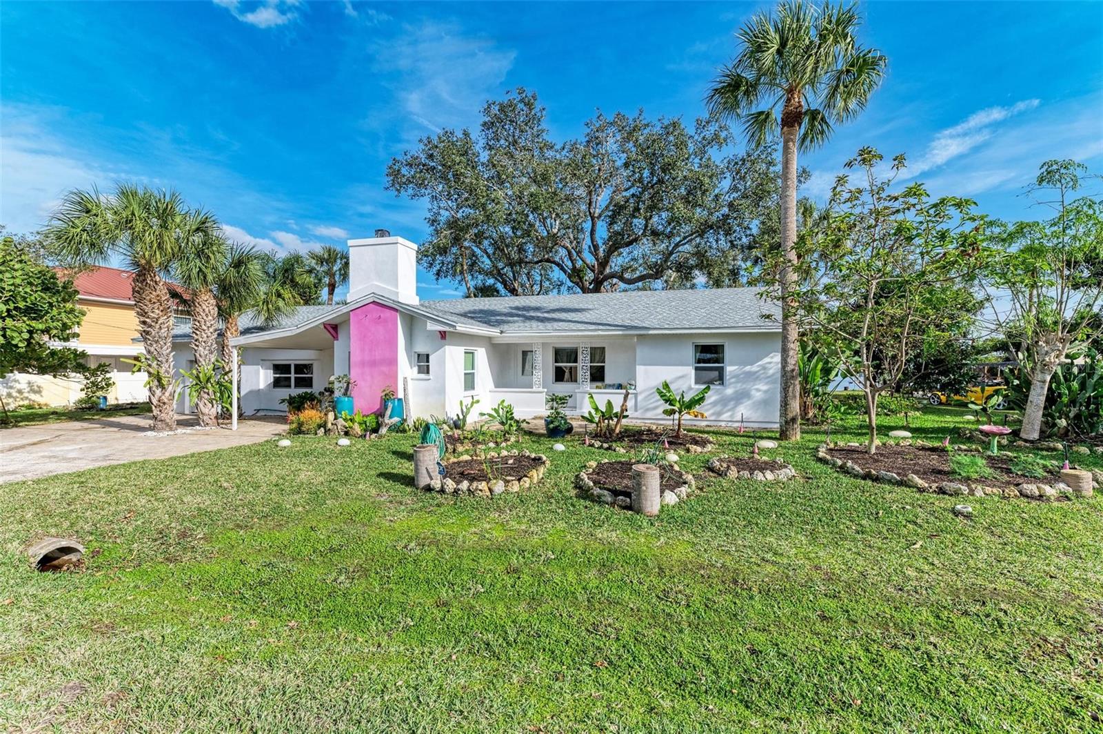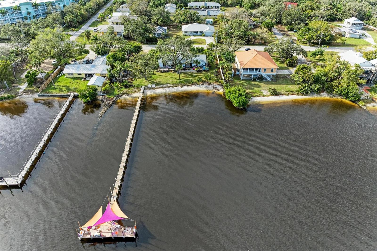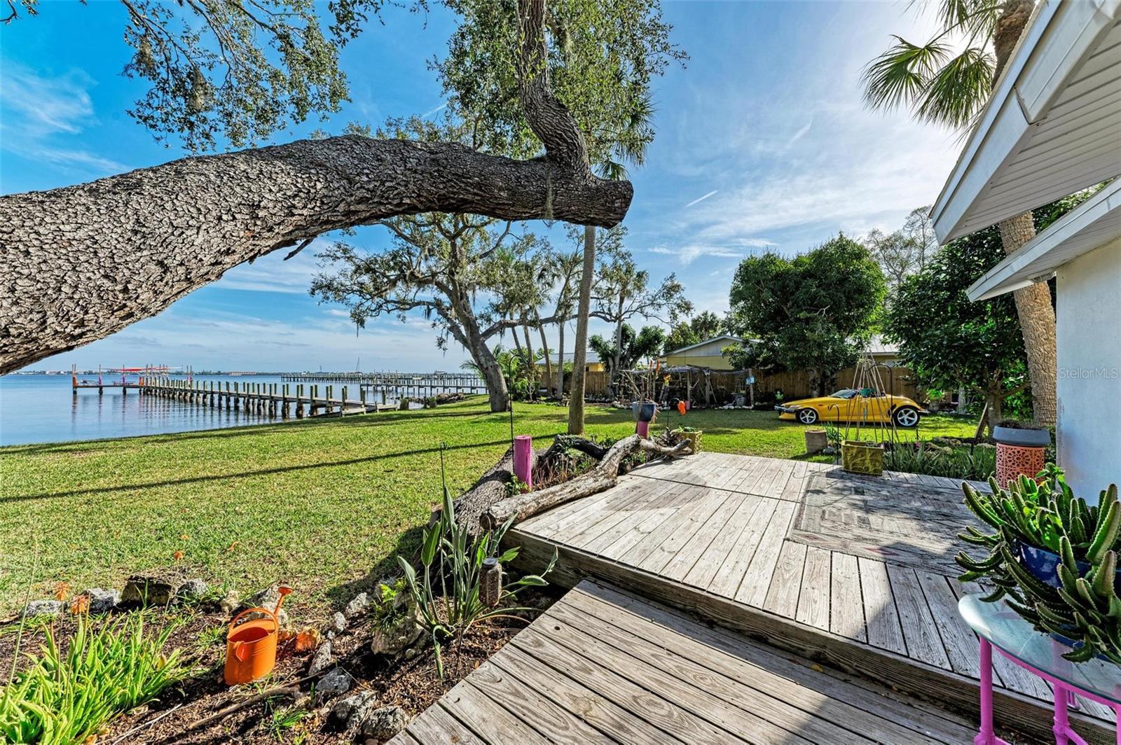 Home received flooding during both hurricanes. Fabulous opportunity to own this CHARLOTTE HARBORFRONT oversized property with nearly 180 feet of private beach, a large dock/pier in place with a beautiful unobstructed view and access for boating, and a desirable Southern Exposure and NO RENTAL or DEED RESTRICTIONS. DEVELOP INTO 2 HOMESITES, or OTHER POSSIBILITIES. The dock was updated and rebuilt in 2023. Prepare to be WOWED by the large oak trees that provide a beautiful canopy for the back deck that runs the full length of the house and is totally open to the private backyard, private beach, garden area, and the large pier/dock with sail cloths and great space to entertain. Find opportunities abound as this home is on 3.5 lots zoned CR3.5 nearby to the new Sunseeker Resort, upcoming new restaurant just down the road, and conveniently located with access to all things Punta Gorda and Port Charlotte. Schedule your showing today!