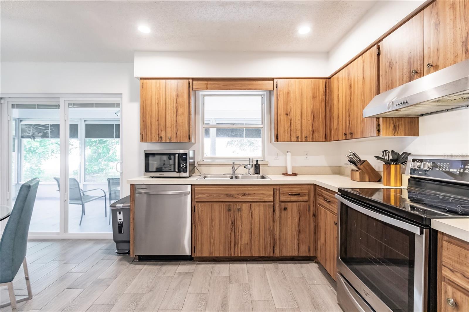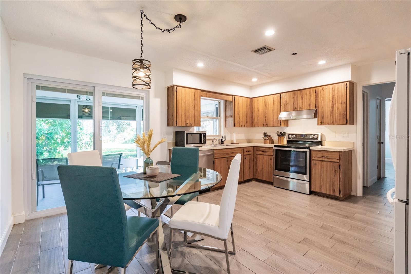Welcome to an adorable GULF ACCESS home that exudes charm and elegance! Step inside to discover a thoughtfully renovated residence, where every detail has been carefully curated. The sleek stainless steel appliances, complemented by the NEW HURRICANE IMPACT SLIDERS tile flooring with a wood look finish, create an atmosphere of modern design and warmth. As you make your way through the home, you'll love the laundry conveniently located in the master suite, offering convenience and comfort. Indulge in pure relaxation as you enter the fully updated primary bath. Immerse yourself in serenity with its real RIVER PEBBLE FLOORING shower and luxurious 18x36 Montauk Black Gauged Slate Wall Tile! The grey oak vanity adorned with a White Carrera stone countertop adds a touch of timeless elegance to this oasis. With recessed LED lighting illuminating each space and dimmable switches allowing for a customizable ambiance, every moment spent here is infused with warmth and charm. Beyond the walls lies your Gulf Access Canal seen right from the comfort of your COVERED and SCREENED-IN LANAI! Whether you love to host or enjoy the views for yourself, this beautiful backyard area allows for it all! Rest easy knowing that a new A/C system was installed within the last 5 years, ensuring optimal comfort year-round. To complete this picture-perfect retreat, you have to see it for yourself. Located conveniently in an X-FLOOD ZONE, you will not want to miss this beautiful HOME! Ask your agent for a full feature sheet and schedule your private showing today.