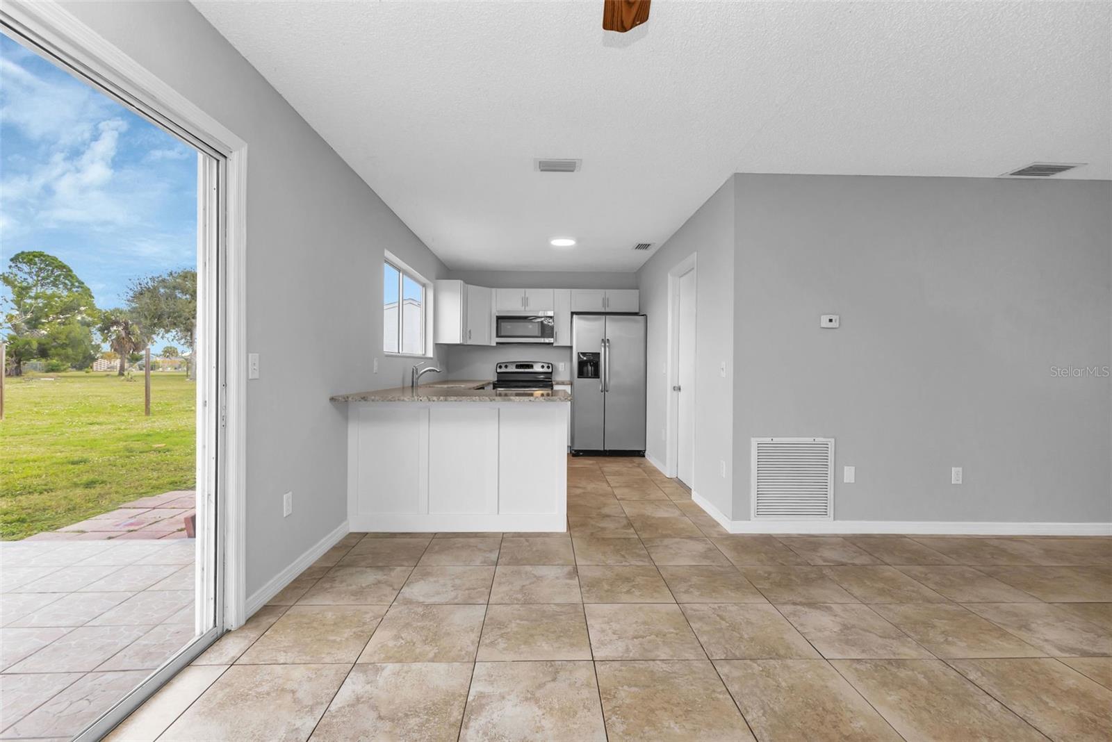NO DAMAGE OR FLOODING FROM MILTON OR HELENE. One or more photo(s) has been virtually staged. X500 FLOOD ZONE. NO FLOOD INSURANCE REQUIRED. Roof 2021. This well maintained 3 Bedroom 2 Bathroom home is situated on a HUGE CORNER LOT in the desirable community of The Gardens of Gulf Cove. As you enter you will be impressed by the spacious living area leading to the newly updated kitchen complete with new appliances and brand-new GRANITE TOPS. You will enjoy a great view of the LARGE BACKYARD from your kitchen sink window as you prepare meals with plenty of counter space. This home offers a freshly painted interior and tile floors throughout as you head down the hall into the Guest bath equipped with new vanity and plumbing fixtures. The primary bedroom affords plenty of room for relaxation and an en suite bath with new Vanity. Take a stroll down the community sidewalk and enjoy the array of community amenities including TWO POOLS, shuffleboard courts, clubhouses, Cornhole area, a recreation center and tennis/pickleball courts. Conveniently located, the Gardens of Gulf Cove is a short drive from Boca Grande and Englewood beaches, offering endless coastal delights. With Boat storage inside the community, this is the perfect home to enjoy the Florida lifestyle. BE SURE TO CLICK THE FULL VIRTUAL TOUR LINKS FOR DETAILS