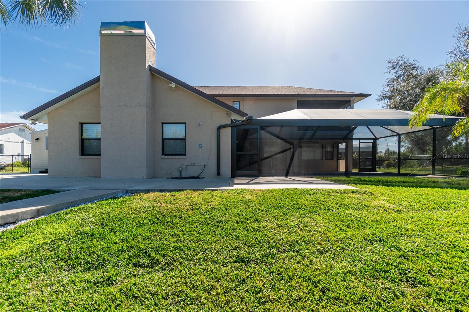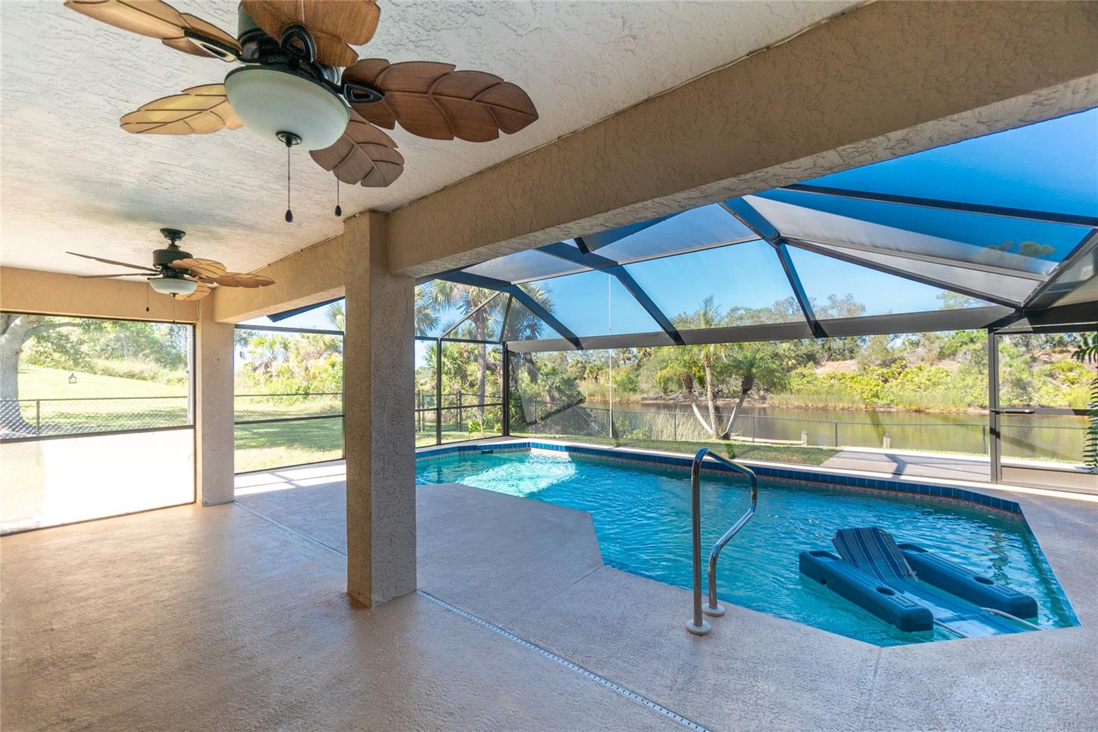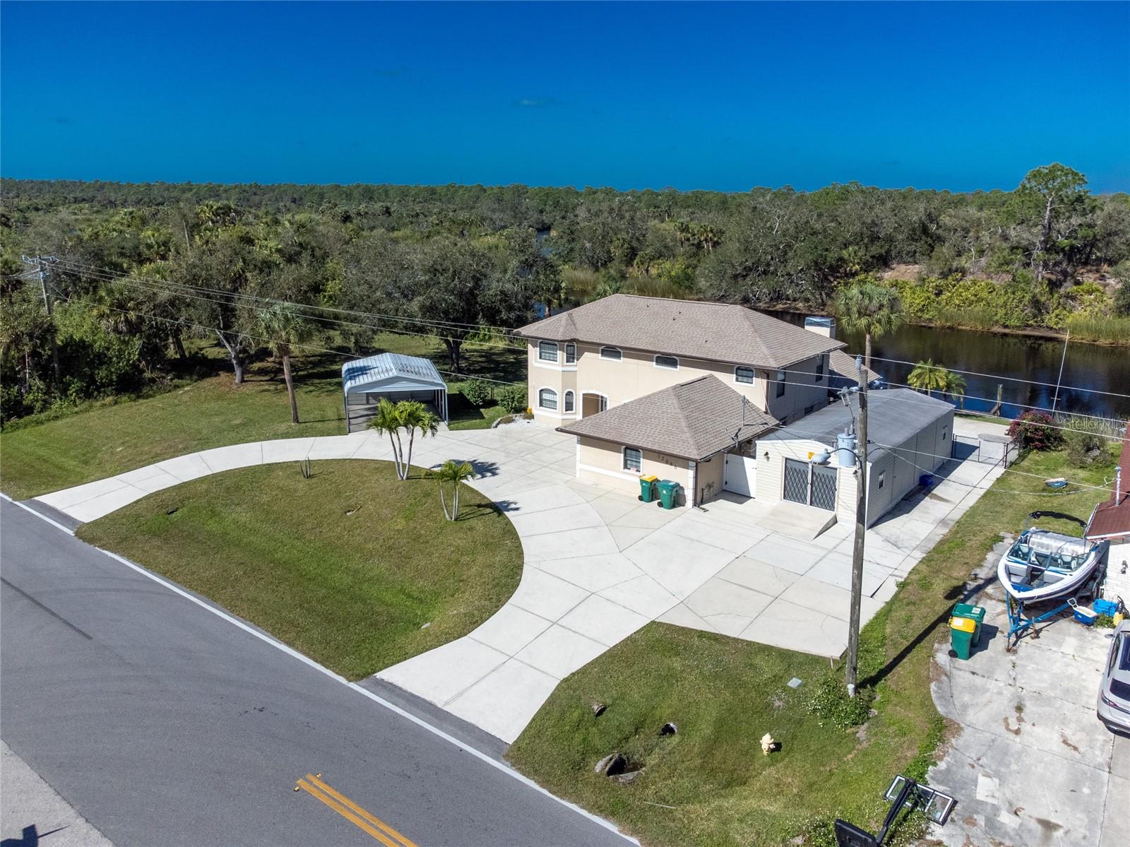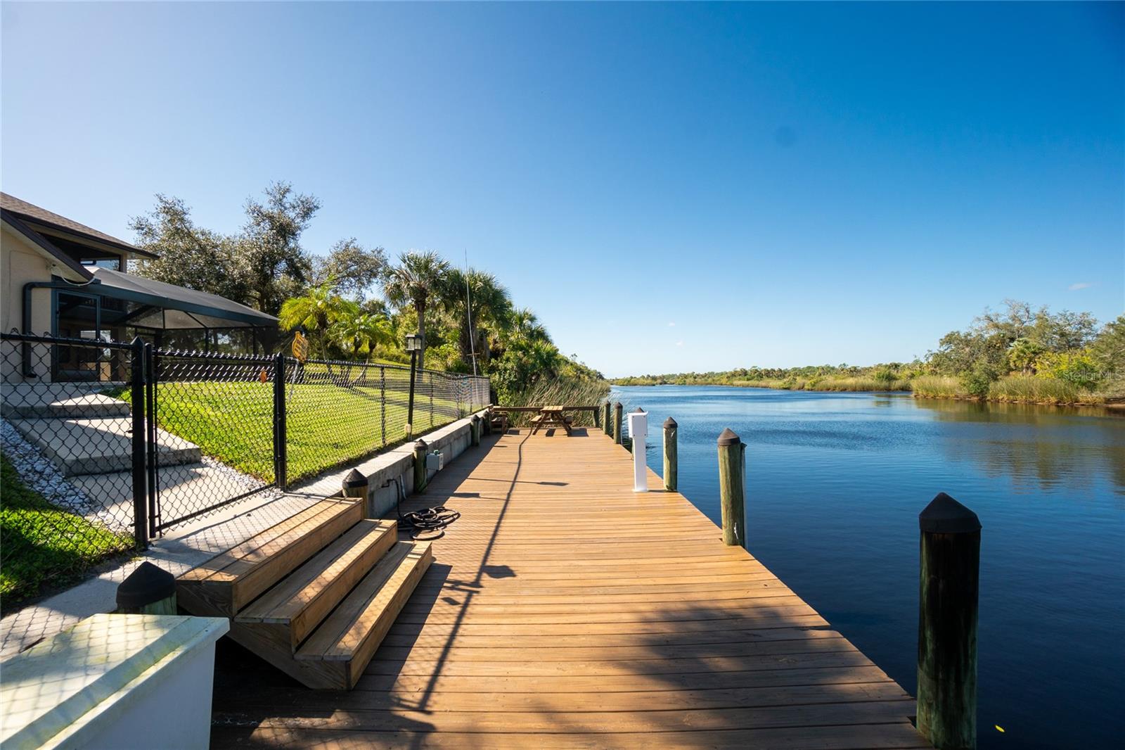 Impressive and spacious WATERFRONT two story home situated on an oversized lot (0.32 acres) on a quiet dead end street in Port Charlotte yet minutes from all amenities. This home offers 4 Bedrooms, 3 Bathrooms, attached 2 Car Garage and 22x18 two Car Carport with electricity. This light and bright home with numerous windows has a Great Room, Family Room with wood burning fireplace, separate Dining Room, well appointed Kitchen with Dining area, Inside Laundry and a separate 40x16 game room building with metal roof, insulation, electric overhead door and mini-split which provides both cool air and heat. The Kitchen features white cabinetry, beautiful granite counters, stainless appliances (refrigerator, oven/range, microwave, dishwasher), breakfast bar, dining area and opens to the Family Room with fireplace and vaulted ceiling. There is a guest Bedroom on the first floor with tile floor and a full bathroom with white wood vanity, granite counter and tub/shower combo. A wood staircase leads to the second floor with wood floors throughout, Master Bedroom, two additional guest bedrooms and full bathroom. The Master Bedroom features vaulted ceiling, custom walk in closet, additional built in closet and private bathroom with dual sinks, jetted tub and walk in shower. The Master also has private access via French doors to a screened porch overlooking the pool and canal. There are two generous sized guest bedrooms with walk in closets on the second floor and the guest bathroom has a walk in shower. Downstairs your living space extends to the screened lanai and pool area with 28x18 inground pool, covered lanai, half bath, outdoor shower with hot and cold water and open deck for sunbathing. Continue through the fenced yard to the waterfront with 90 foot concrete seawall and NEW 2021 66x12 wood dock. Boating access from the dock to Charlotte Harbor and on to the Gulf of Mexico. There is also a large concrete patio outside of the pool cage. Other features include: tile floors throughout the first floor and wood floors throughout the second floor, plantation shutters, shingle roof on the main house, circular driveway, two NEW A/C systems 2023, NEW ROOF 2018, NEW gutters 2022 NEW Pool Cage 2023. NO HOA. County water and septic. Per the seller, the land adjacent to this property on the west is a preserve and cannot be built on. This home is only 5 minutes from shopping, dining, entertainment. 10 minutes from the Charlotte Sports Park (spring training home of the Tampa Bay Rays). Easy drive to world class fishing on Boca Grande and gorgeous Gulf beaches in Englewood, Manasota Key and Venice. This unique home is perfect for entertaining, perfect for a family and for those expecting lots of winter visitors!