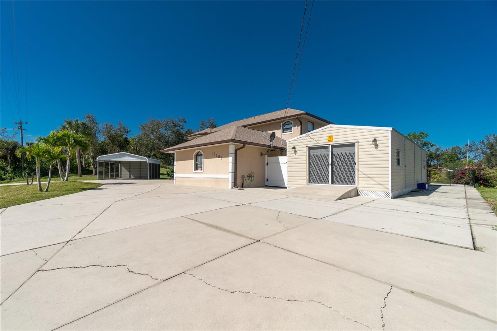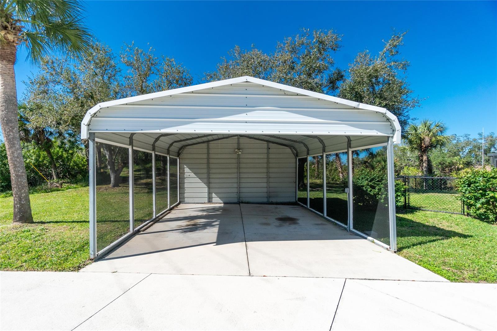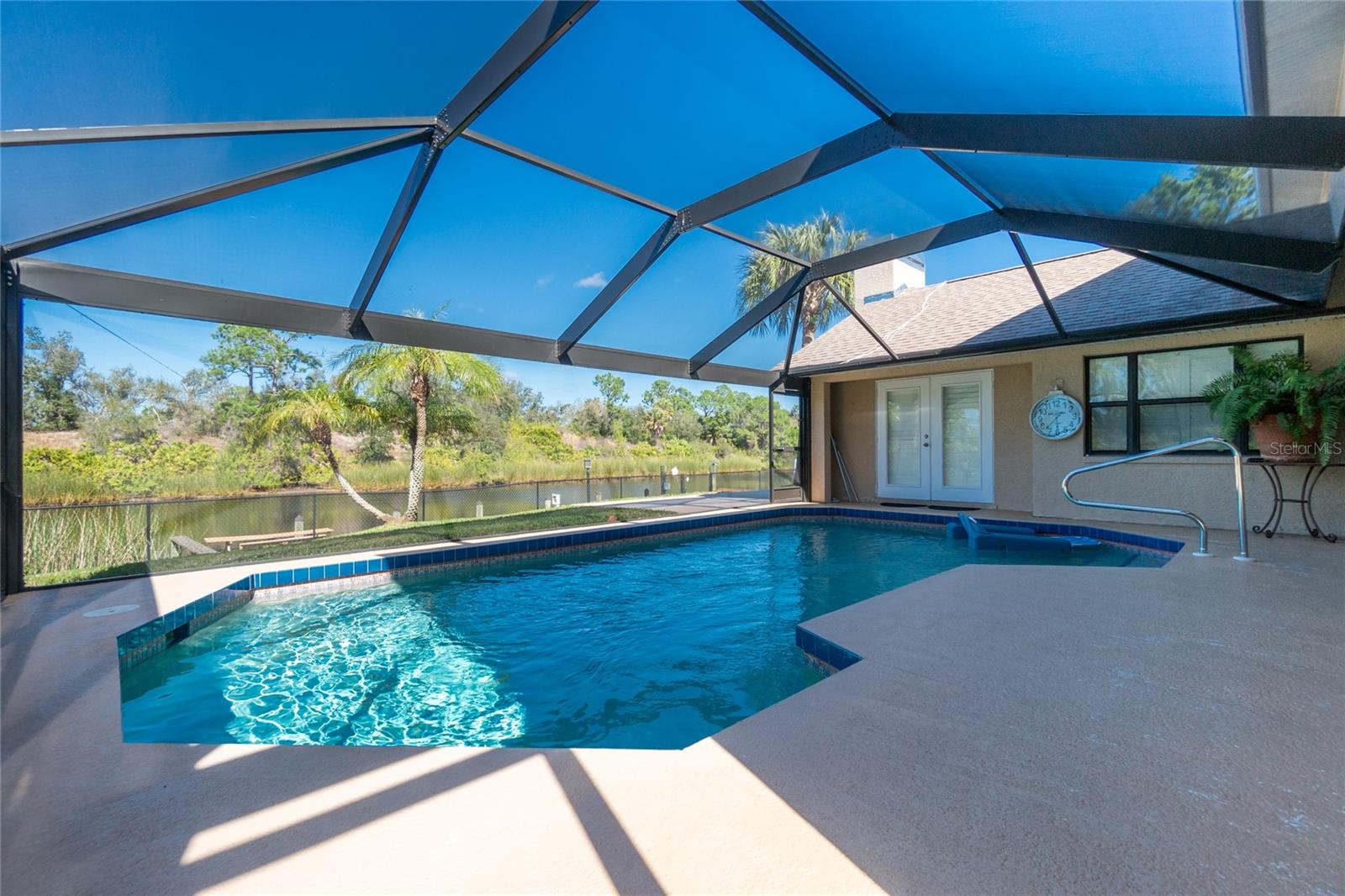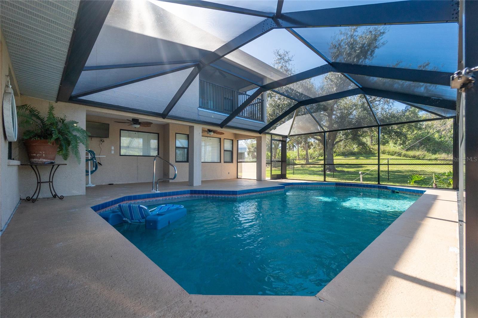 Impressive and spacious WATERFRONT two story home situated on an oversized lot (0.32 acres) on a quiet dead end street in Port Charlotte yet minutes from all amenities. This home offers 4 Bedrooms, 3 Bathrooms, attached 2 Car Garage and 22x18 two Car Carport with electricity. This light and bright home with numerous windows has a Great Room, Family Room with wood burning fireplace, separate Dining Room, well appointed Kitchen with Dining area, Inside Laundry and a separate 40x16 game room building with metal roof, insulation, electric overhead door and mini-split which provides both cool air and heat. The Kitchen features white cabinetry, beautiful granite counters, stainless appliances (refrigerator, oven/range, microwave, dishwasher), breakfast bar, dining area and opens to the Family Room with fireplace and vaulted ceiling. There is a guest Bedroom on the first floor with tile floor and a full bathroom with white wood vanity, granite counter and tub/shower combo. A wood staircase leads to the second floor with wood floors throughout, Master Bedroom, two additional guest bedrooms and full bathroom. The Master Bedroom features vaulted ceiling, custom walk in closet, additional built in closet and private bathroom with dual sinks, jetted tub and walk in shower. The Master also has private access via French doors to a screened porch overlooking the pool and canal. There are two generous sized guest bedrooms with walk in closets on the second floor and the guest bathroom has a walk in shower. Downstairs your living space extends to the screened lanai and pool area with 28x18 inground pool, covered lanai, half bath, outdoor shower with hot and cold water and open deck for sunbathing. Continue through the fenced yard to the waterfront with 90 foot concrete seawall and NEW 2021 66x12 wood dock. Boating access from the dock to Charlotte Harbor and on to the Gulf of Mexico. There is also a large concrete patio outside of the pool cage. Other features include: tile floors throughout the first floor and wood floors throughout the second floor, plantation shutters, shingle roof on the main house, circular driveway, two NEW A/C systems 2023, NEW ROOF 2018, NEW gutters 2022 NEW Pool Cage 2023. NO HOA. County water and septic. Per the seller, the land adjacent to this property on the west is a preserve and cannot be built on. This home is only 5 minutes from shopping, dining, entertainment. 10 minutes from the Charlotte Sports Park (spring training home of the Tampa Bay Rays). Easy drive to world class fishing on Boca Grande and gorgeous Gulf beaches in Englewood, Manasota Key and Venice. This unique home is perfect for entertaining, perfect for a family and for those expecting lots of winter visitors!