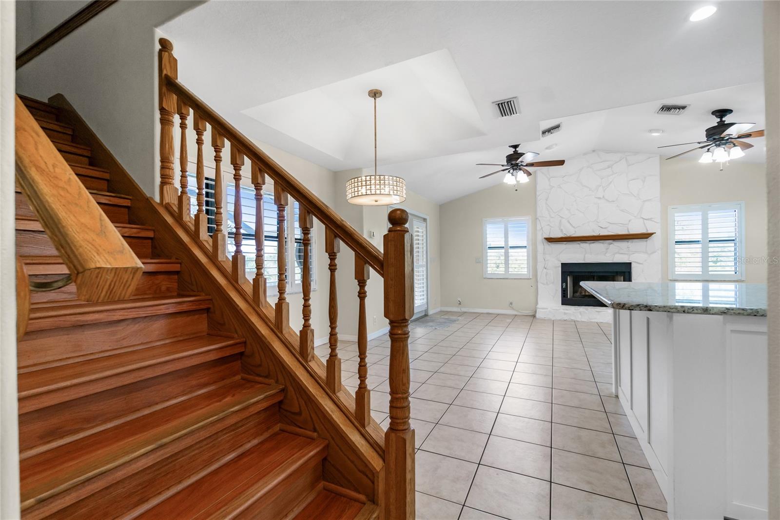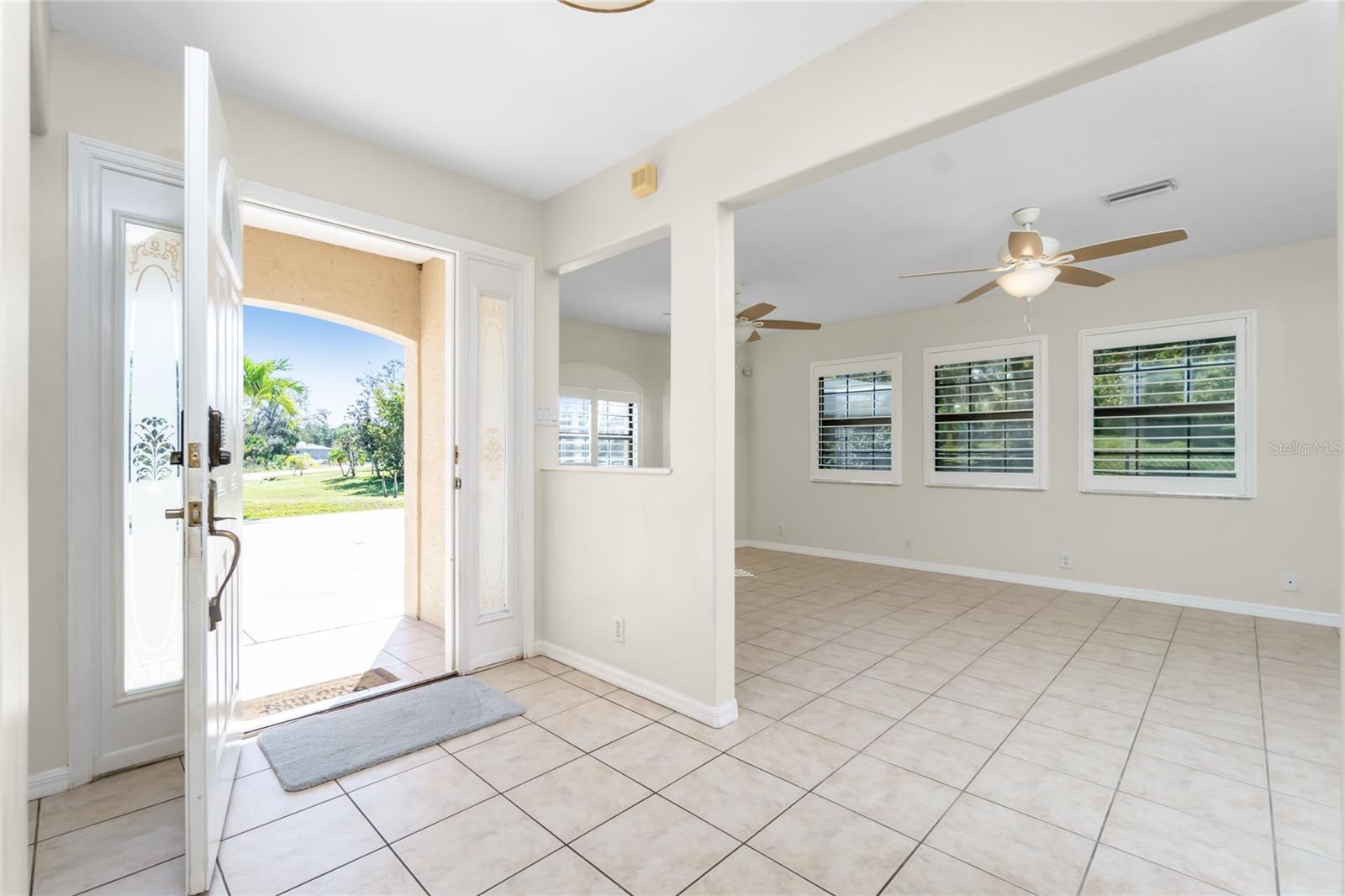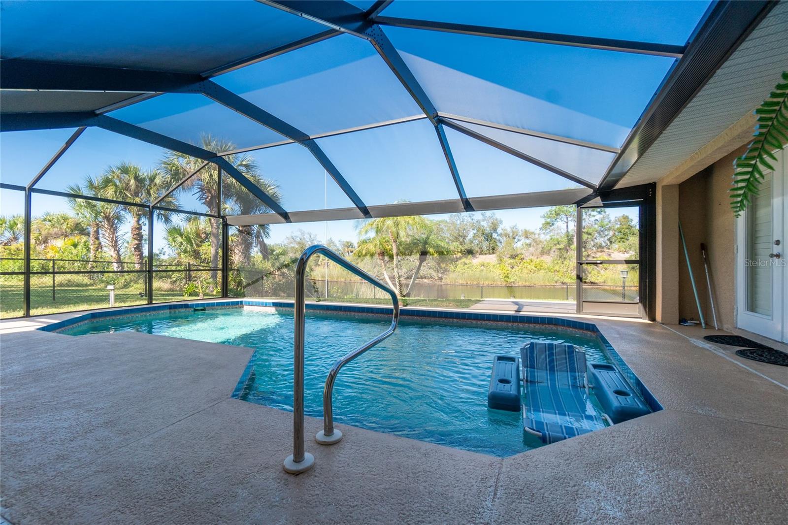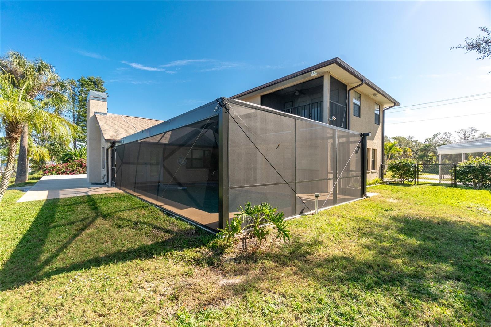 Impressive and spacious WATERFRONT two story home situated on an oversized lot (0.32 acres) on a quiet dead end street in Port Charlotte yet minutes from all amenities. This home offers 4 Bedrooms, 3 Bathrooms, attached 2 Car Garage and 22x18 two Car Carport with electricity. This light and bright home with numerous windows has a Great Room, Family Room with wood burning fireplace, separate Dining Room, well appointed Kitchen with Dining area, Inside Laundry and a separate 40x16 game room building with metal roof, insulation, electric overhead door and mini-split which provides both cool air and heat. The Kitchen features white cabinetry, beautiful granite counters, stainless appliances (refrigerator, oven/range, microwave, dishwasher), breakfast bar, dining area and opens to the Family Room with fireplace and vaulted ceiling. There is a guest Bedroom on the first floor with tile floor and a full bathroom with white wood vanity, granite counter and tub/shower combo. A wood staircase leads to the second floor with wood floors throughout, Master Bedroom, two additional guest bedrooms and full bathroom. The Master Bedroom features vaulted ceiling, custom walk in closet, additional built in closet and private bathroom with dual sinks, jetted tub and walk in shower. The Master also has private access via French doors to a screened porch overlooking the pool and canal. There are two generous sized guest bedrooms with walk in closets on the second floor and the guest bathroom has a walk in shower. Downstairs your living space extends to the screened lanai and pool area with 28x18 inground pool, covered lanai, half bath, outdoor shower with hot and cold water and open deck for sunbathing. Continue through the fenced yard to the waterfront with 90 foot concrete seawall and NEW 2021 66x12 wood dock. Boating access from the dock to Charlotte Harbor and on to the Gulf of Mexico. There is also a large concrete patio outside of the pool cage. Other features include: tile floors throughout the first floor and wood floors throughout the second floor, plantation shutters, shingle roof on the main house, circular driveway, two NEW A/C systems 2023, NEW ROOF 2018, NEW gutters 2022 NEW Pool Cage 2023. NO HOA. County water and septic. Per the seller, the land adjacent to this property on the west is a preserve and cannot be built on. This home is only 5 minutes from shopping, dining, entertainment. 10 minutes from the Charlotte Sports Park (spring training home of the Tampa Bay Rays). Easy drive to world class fishing on Boca Grande and gorgeous Gulf beaches in Englewood, Manasota Key and Venice. This unique home is perfect for entertaining, perfect for a family and for those expecting lots of winter visitors!