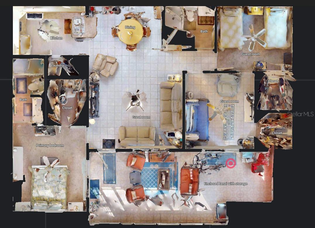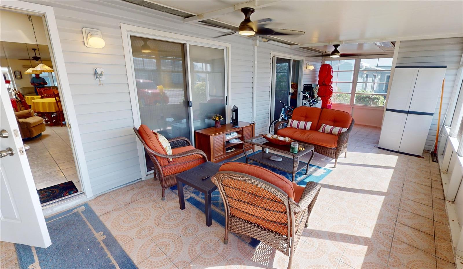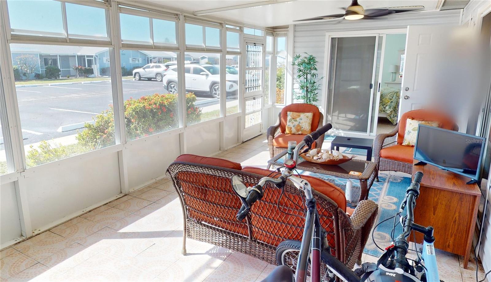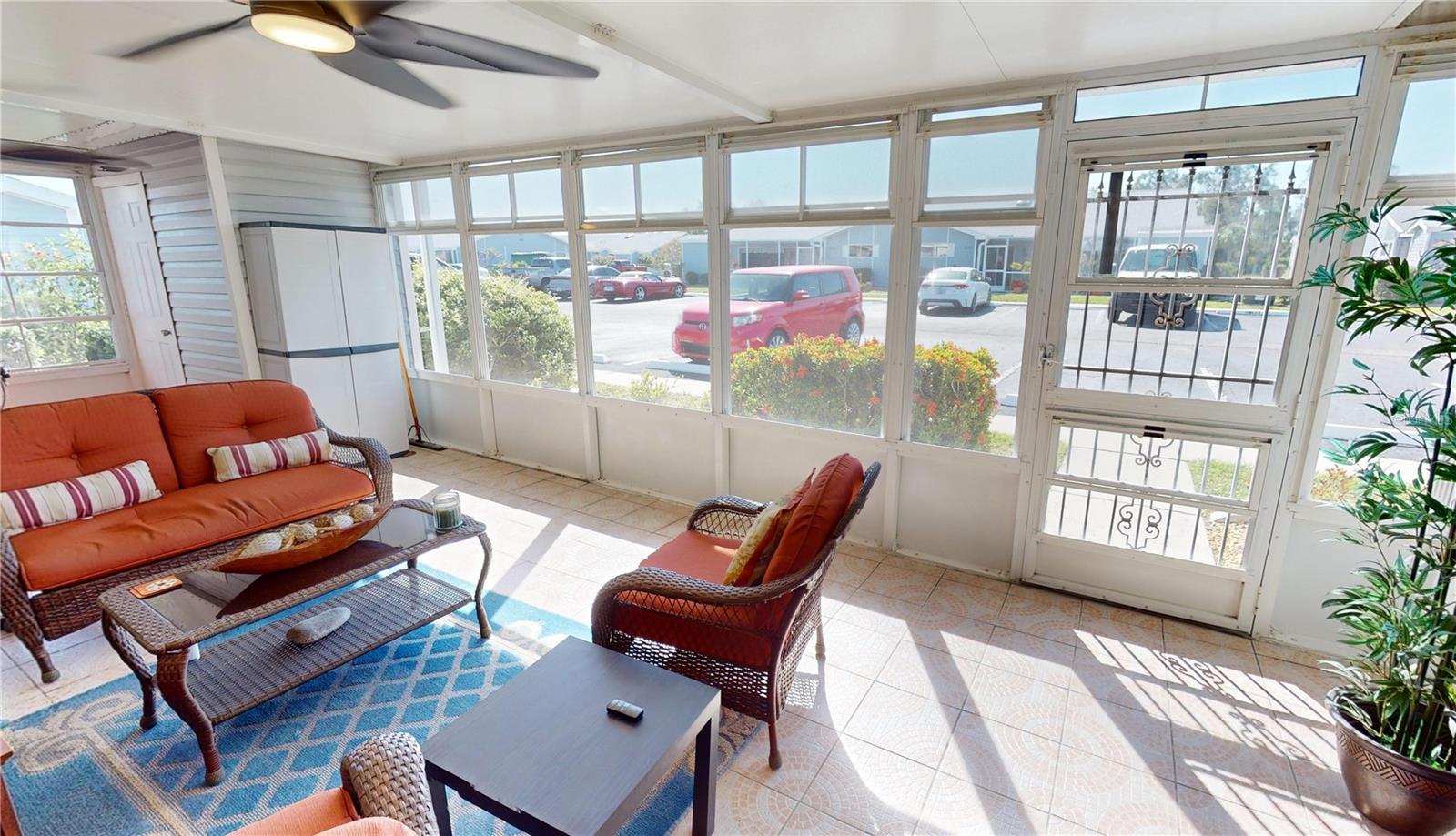 **PLEASE ENJOY THE 3D INTERACTIVE VIRTUAL TOUR ASSOCIATED WITH THIS LISTING – Rare 3 Bedroom with Unique Enclosed Lanai; Must see! Welcome home to Loveland Courtyards – Constructed in 1990, this unit sports an efficient, great room plan and has just shy of 1200 square feet of living space, three bedrooms and two full baths and a unique private 29’ x 12’ enclosed screened lanai. The outdoor space in this home has been roofed, making it ideal for all-weather enjoyment. This space is accessible from the primary bedroom, great room and one of the two guest bedrooms. Plus, this roofed lanai space has an integrated 8’ x 4’ storage shed. Other features include ceramic tile flooring in all but two carpeted bedrooms, a new roof (2023), a skylight, three spacious walk-in closets, indoor laundry facilities and close proximity to the community pool and picnic pavilion. As to location, you are but two miles from shopping and restaurants and just three miles from Interstate 75 at Kings Highway, exit 170. Bring your decorating ideas; there are lots of opportunities here to make this your own! Walk through now by clicking on the attached interactive 3D VIRTUAL TOUR!